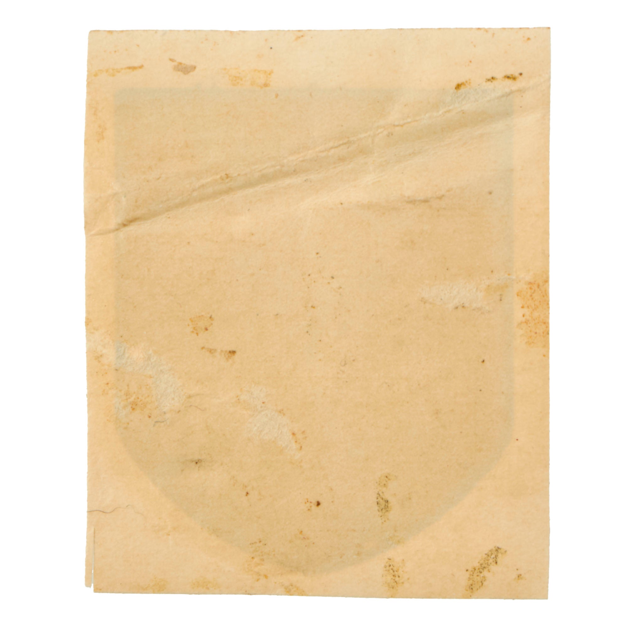 Both of these decals show a lovely patina of age, caused by the slow deterioration of the lacquer and other components used to make them. These are intended as display pieces only, and we have no way of knowing if they are still viable as decals. The national colors decal has yellowed quite a bit, with the white now almost beige, and the red almost orange. Both show some folding and flaking from long storage.