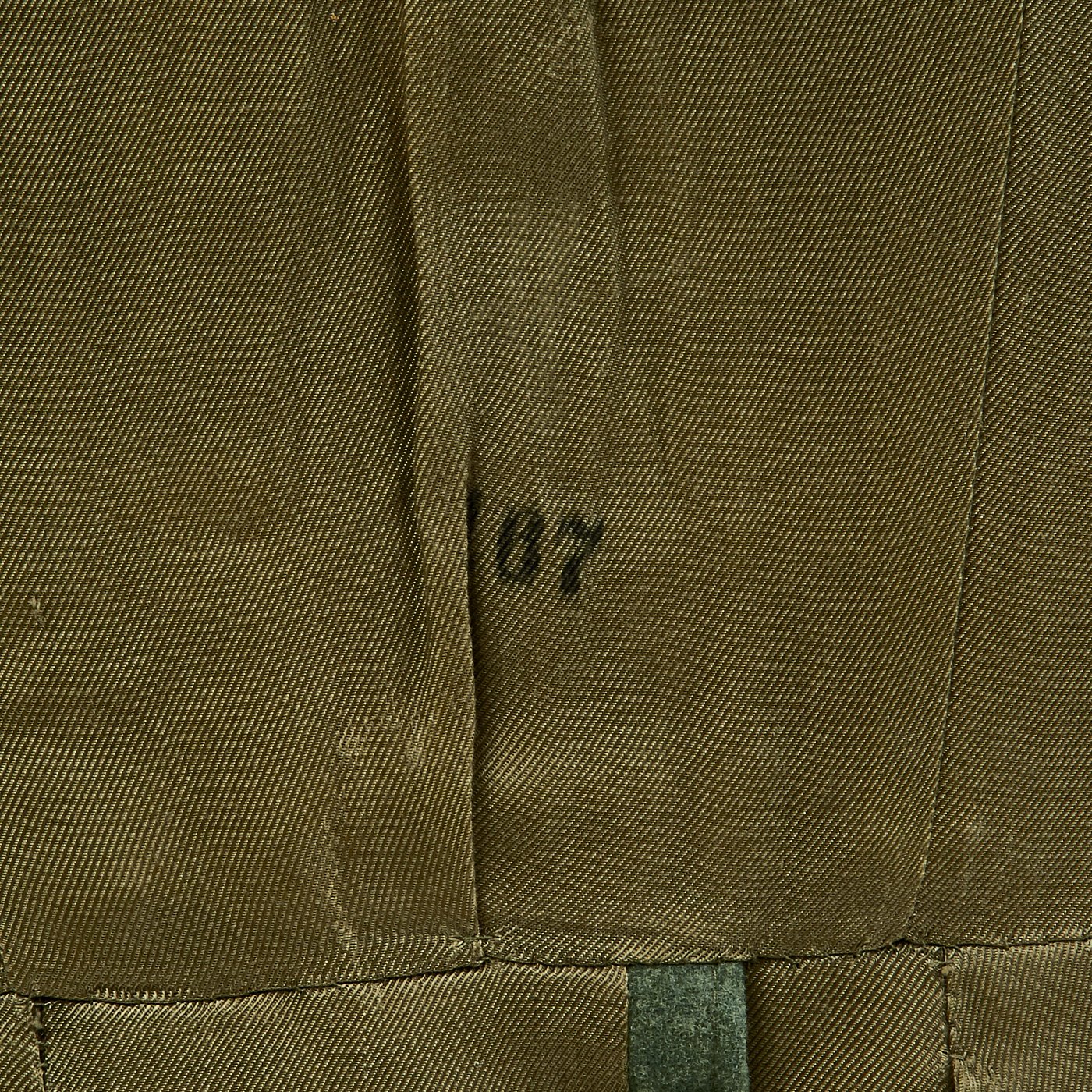 The lower french style cuffs of the sleeves have a dark-green based wool, and is adorned with red piping and silver litzen. The interior of the Artillery Waffenrock is lined with a fine rayon. The interior of the Waffenrock is marked with depot stamp and date M37 which stands for Munich 1937.