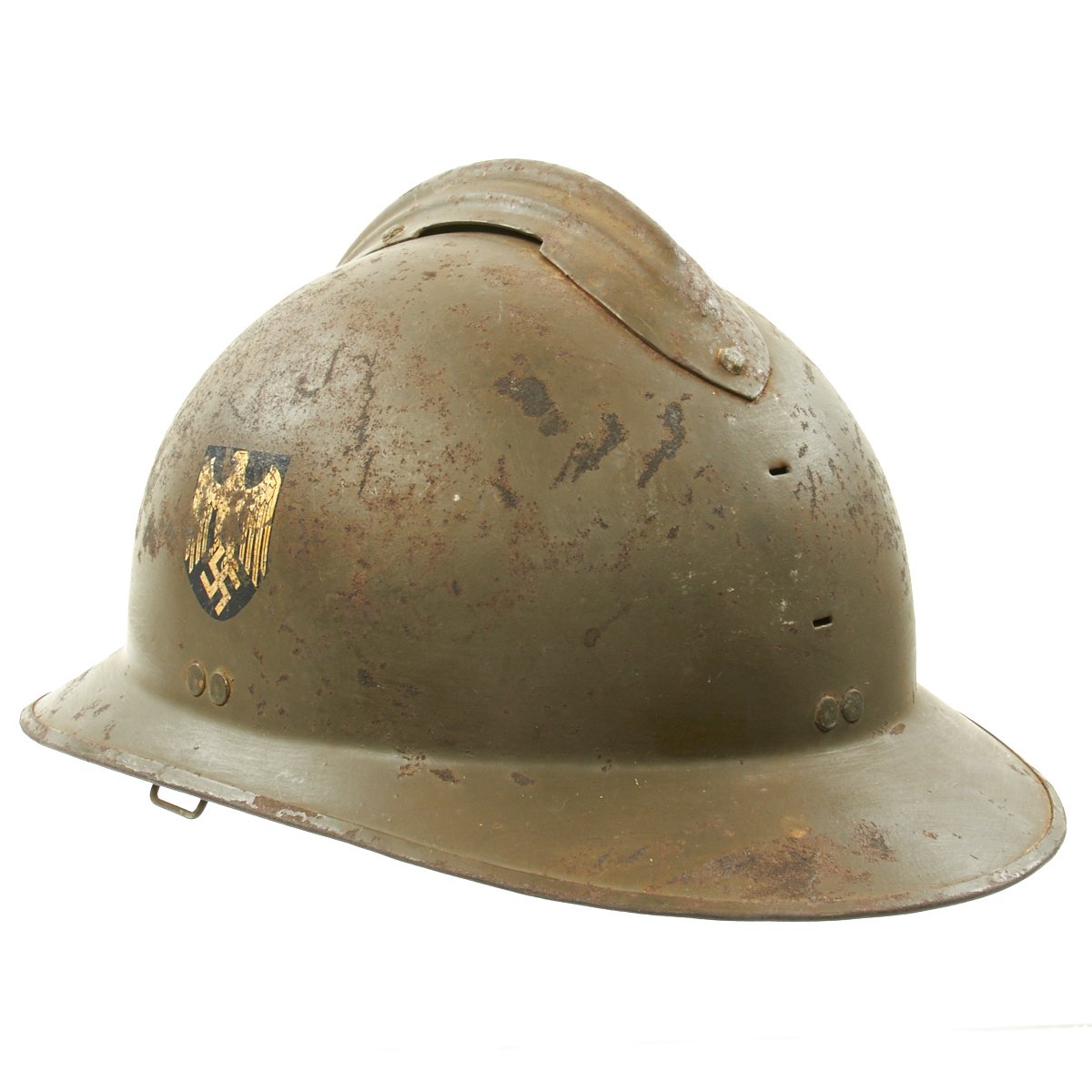 Original Item: Only One Available. Excellent genuine World War II model 1926 French Army Adrian helmet. This helmet was captured by German forces and reissued to sympathetic french forces.