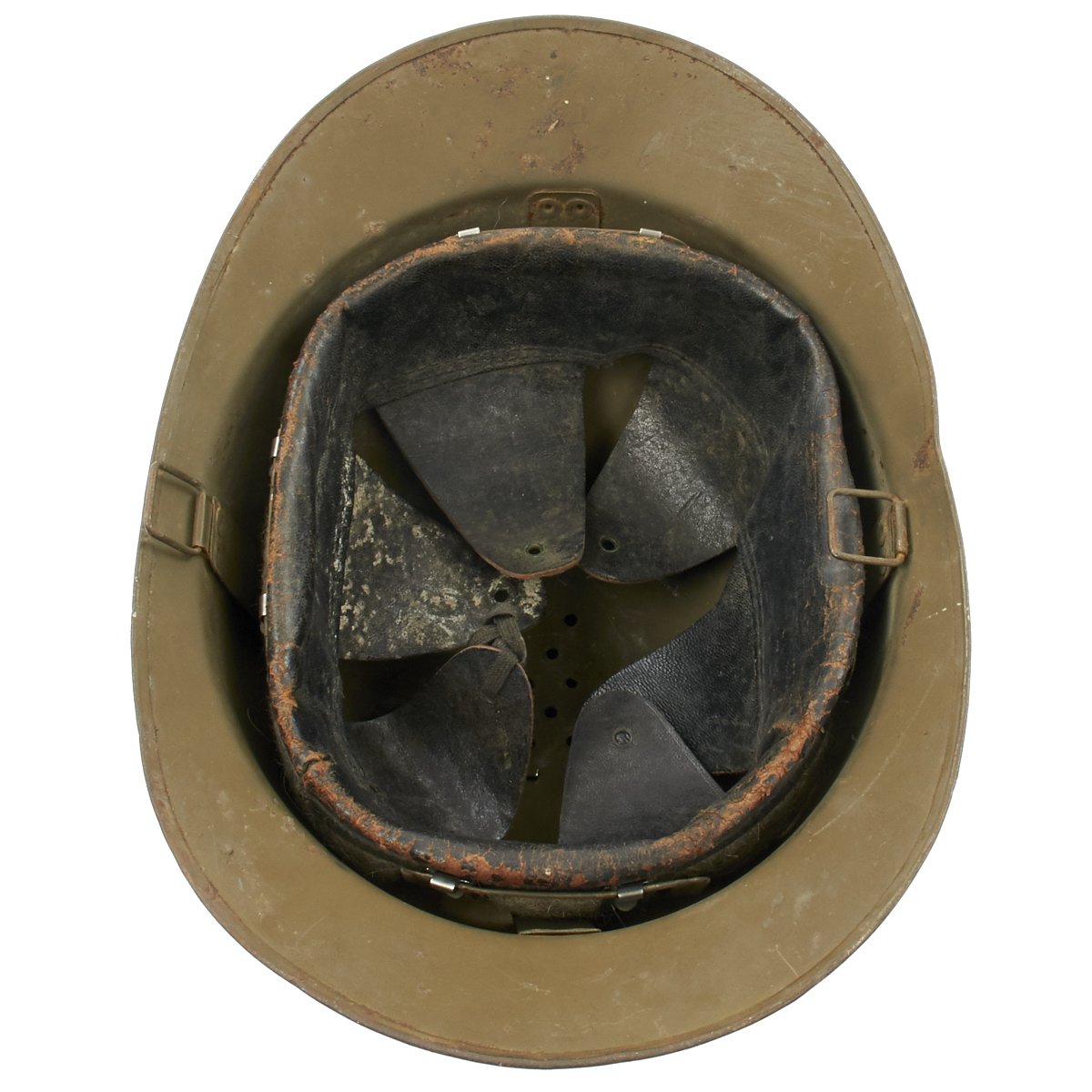 Size is approximately US 7 (56cm). Features a wonderful complete original leather liner in very good condition. Overall condition of the helmet is very good, shell shows some minor dings, scratches and paint chips consistent with age.