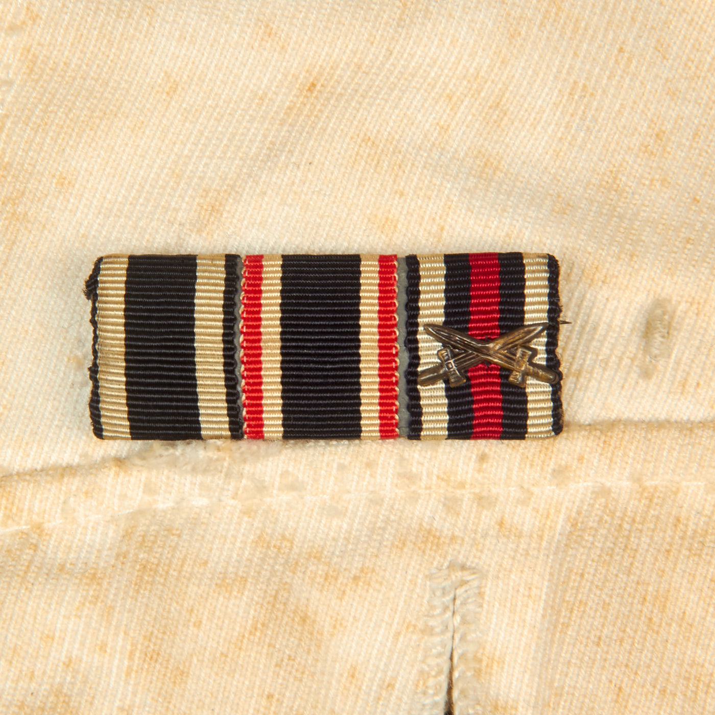 Above the left pocket is a small medal bar, indicating that the officer had received the Imperial German WWI Prussian 1914 Iron cross, the War Merit cross, and the Hindenberg Cross with Swords.