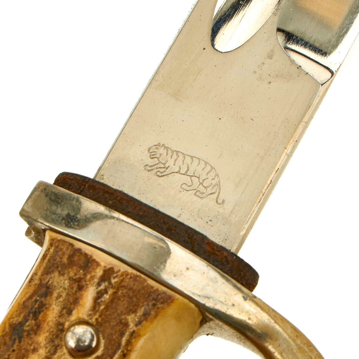 Lauterjung & Co., Tiger Stahlwaren- und Waffenfabrik is a famous manufacturer in Solingen, the legendary "City of Blades" in Western Germany. Their trademark was a Tiger, and their factory was thus often referred to as Tigerwerk (Tiger Works). The firm was founded in 1873 to make knives, scissors, and other steel ware, and survived until after the war. There were several different branches of the Lauterjung family involved in edged weapons, operating under different trade names to avoid confusion. For more information please see GERMAN KNIFE AND SWORD MAKERS by J. Anthony Carter.