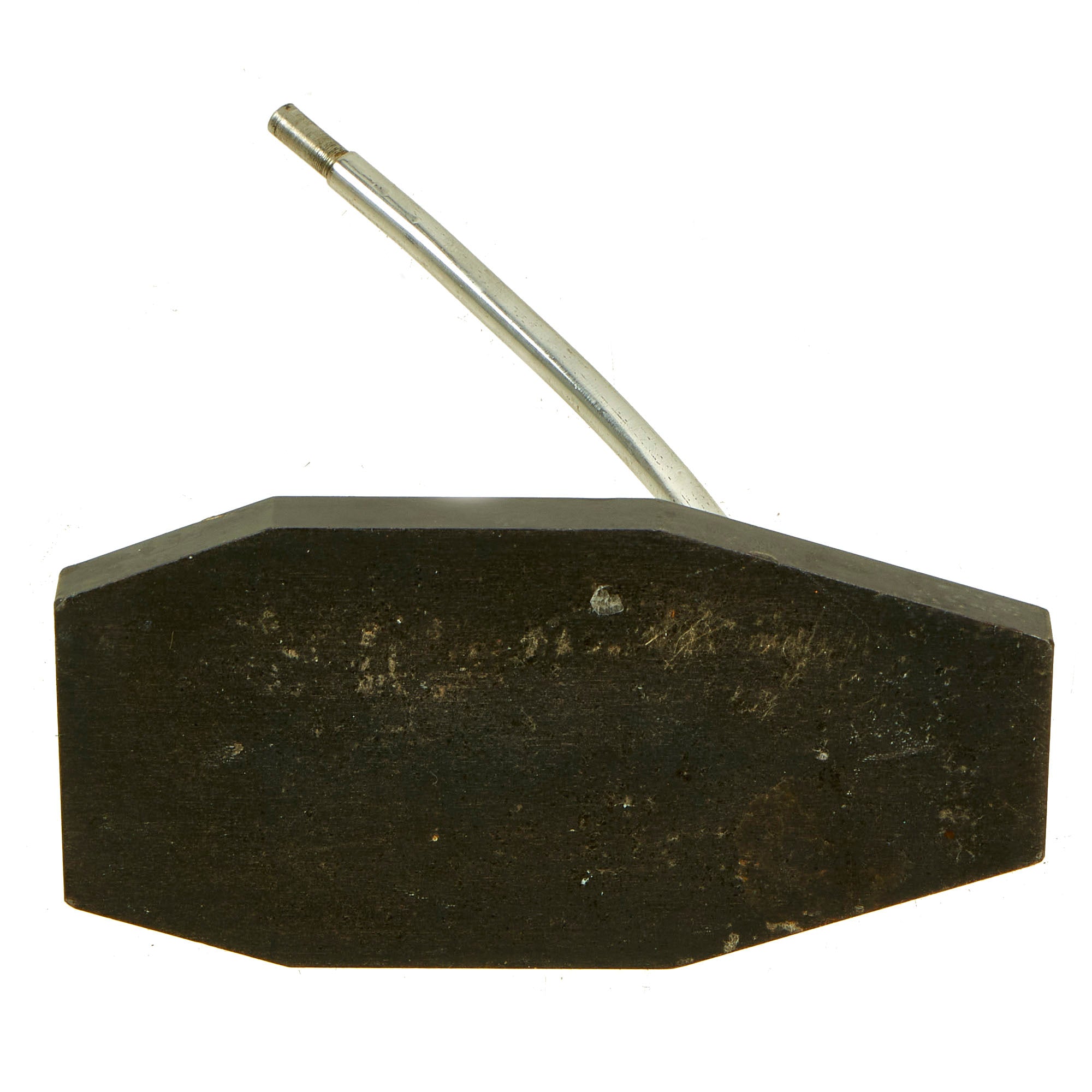 The model is held by what looks to be a stainless steel pole screwed into to the iron bass, and it can easily be disassembled for cleaning and storage. This would have been quite easy to transport home after the war.