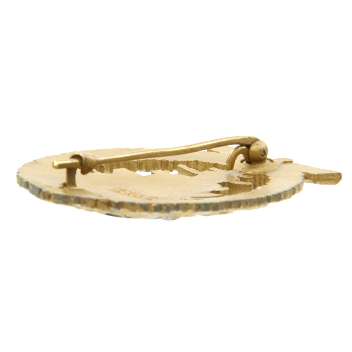 The High Seas Fleet War badge was initially made of brass and later of zinc. The award is easily recognizable by its dark silver German battleship coming head on at full steam, plowing through the sea at the center of the badge and producing a bow wave. The battleship is surrounded by a gold oak leaf wreath, with on the top an eagle with its wings spread, clutching a swas in its claws. The base of the wreath has a ribbon tied in the form of an X with an acorn in the lower and upper V formed by the knot. There are 8 bunches of two oak leaves on either side that make up the wreath. The tip of each leaf has a single acorn, alternatingly on the outside and inside of the wreath. The award is highly detailed, especially the ship's ports, guns and bow wave. From the eagle’s head, the height of the award measures 57 mm and the width is 44 mm. The width of the wreath is 7 mm and the wingspan of the eagle measures 31 mm. The reverse of the award is concave and coloured black, as are the hingepin and hook assemblies. Some know makers of this award are: Adolf Bock from Berlin, (FEC. ADOLF BOCK AUSF. SCHWERIN BERLIN) Schwerin from Berlin, (SCHWERIN BERLIN 68) Friedrich Orth from Vienna, (f.o.) Rudolf Souval from Vienna, (R.S.) Richard Simm & Sohn from Gablonz ad N. (R.S.&S.) and B. H. Mayer Pforzheim. (L/18) There’s also a second version of the award, made by Mourgeon from Paris. This one is identical to the former award. The High Seas Fleet War Badge was presented in a dark blue box with blue flock base and white silk lining, or it was presented in a grey paper packet with the award name stenciled on the front. It was presented with a standard award-document. The award was worn on the lower left breast pocket, underneath the Iron Cross First Class if awarded, or equivalent grade award.
