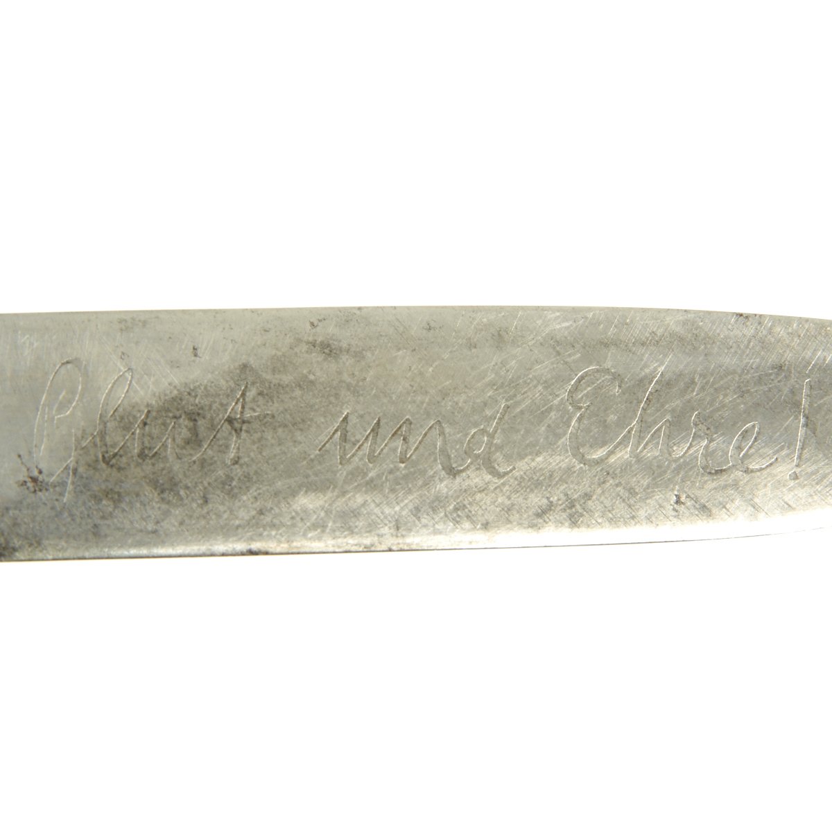 The blade of this example is solid, and is typical of the early period up until 1936. It has a thinner blade with no raised ricasso, though it does have RZM code designation. The motto is only seen in the earlier portion of this period. This blade from the transitional period when the RZM was still being instituted.