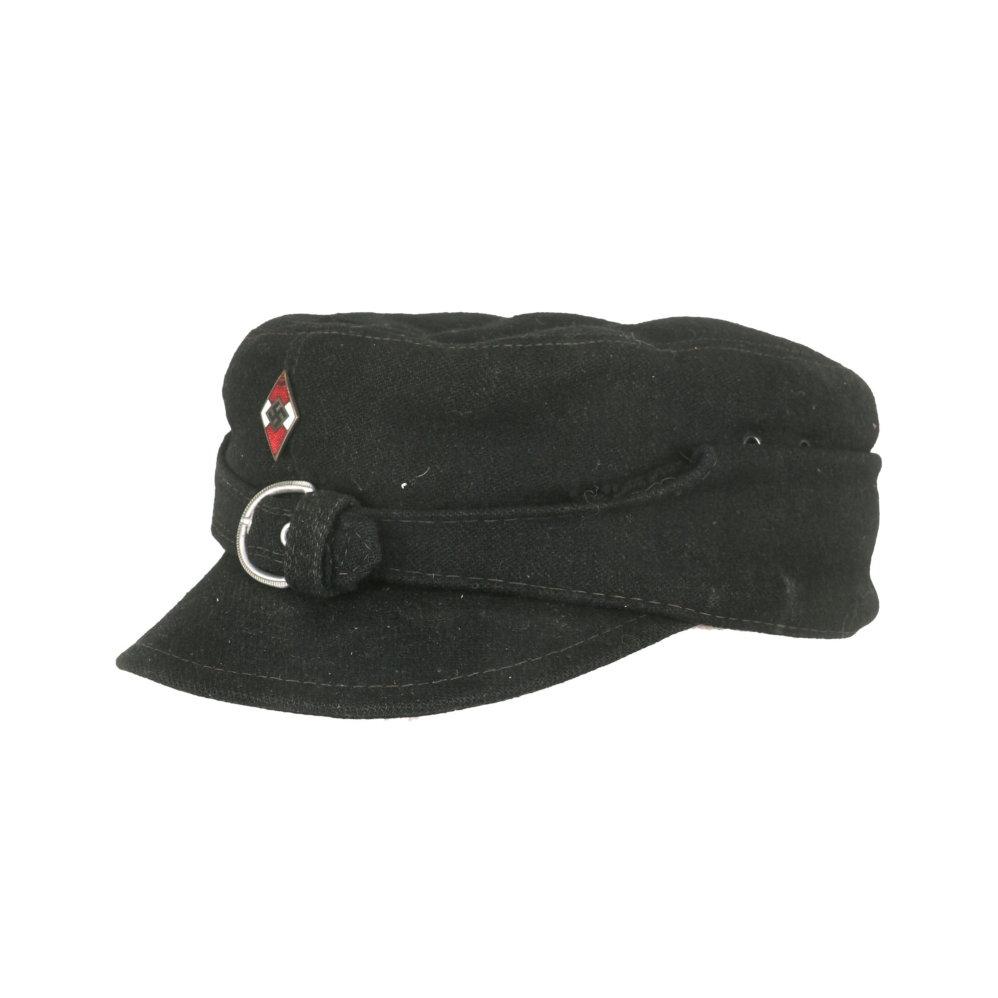 The HJ Skimütze Ski Cap was based on the Bergmütze (Mountain Hat) used by Austrian and German Gebirgsjäger (Mountain Troops) during WWI. Germany had adopted it in 1915, and after the war it spread throughout the military. It has the same fold down flaps, which can be placed over the ears during cold weather, and is secured with a buckle.