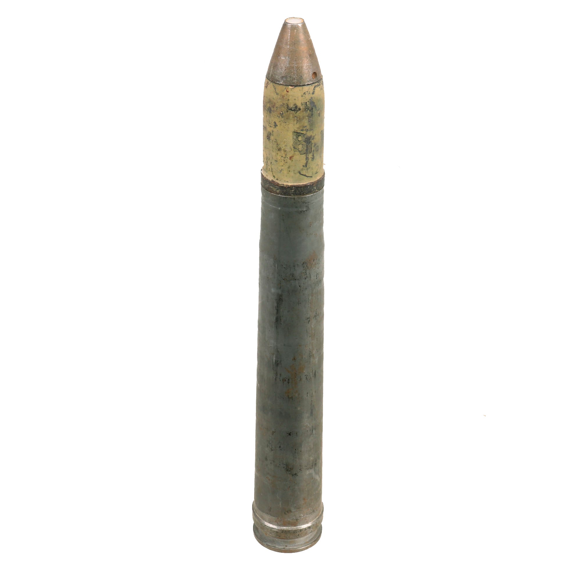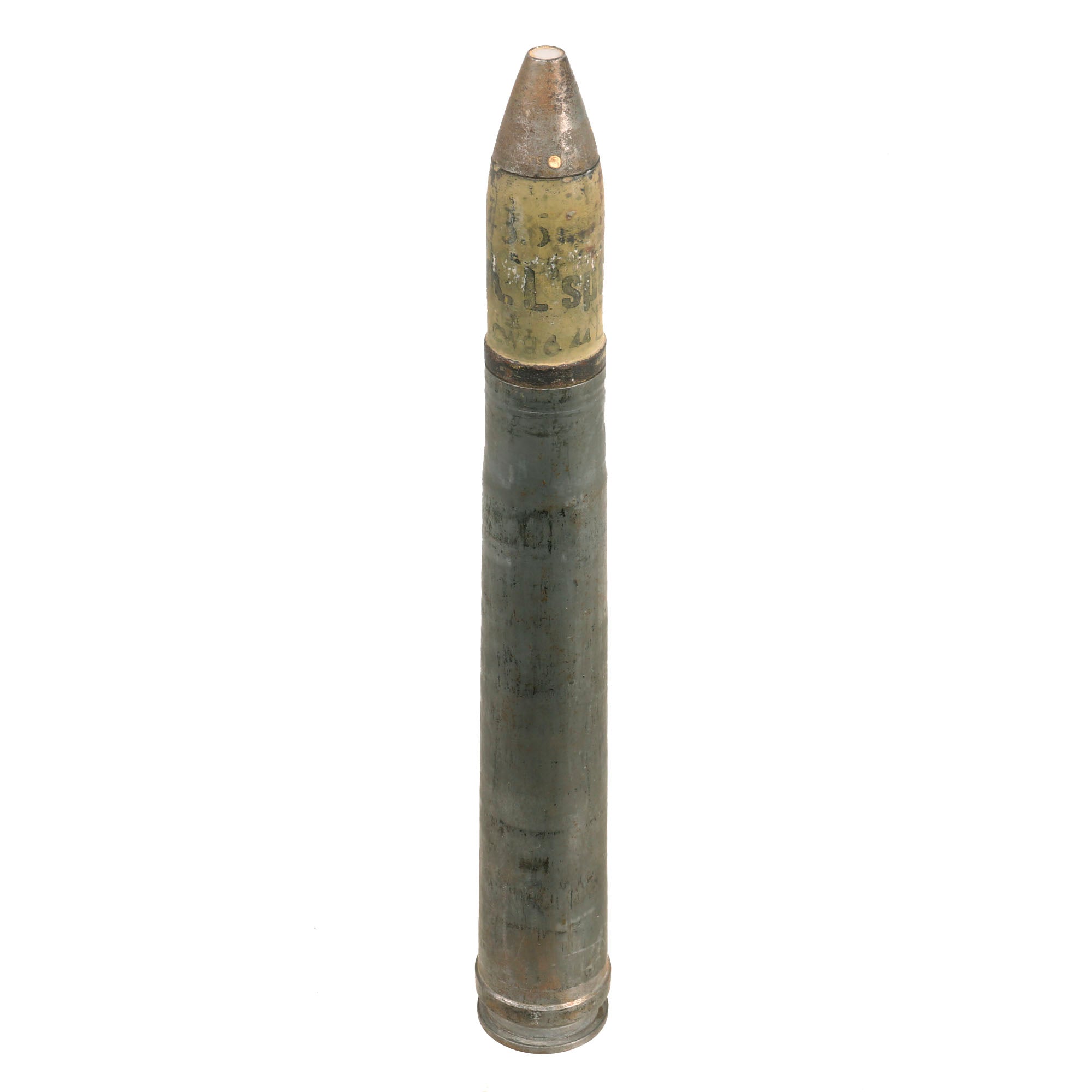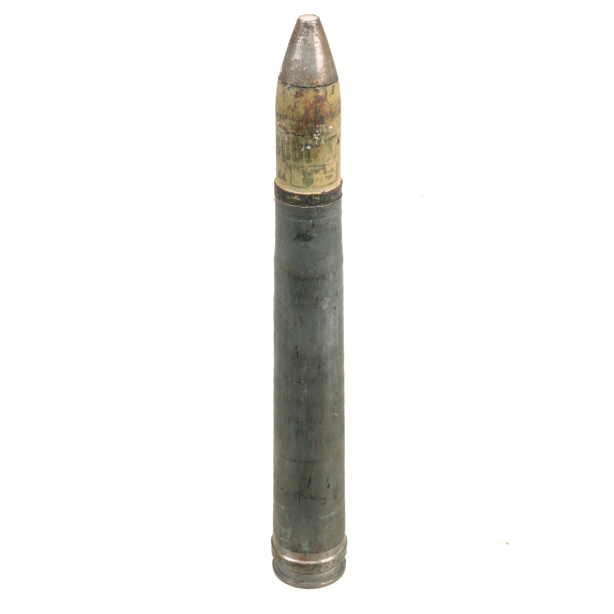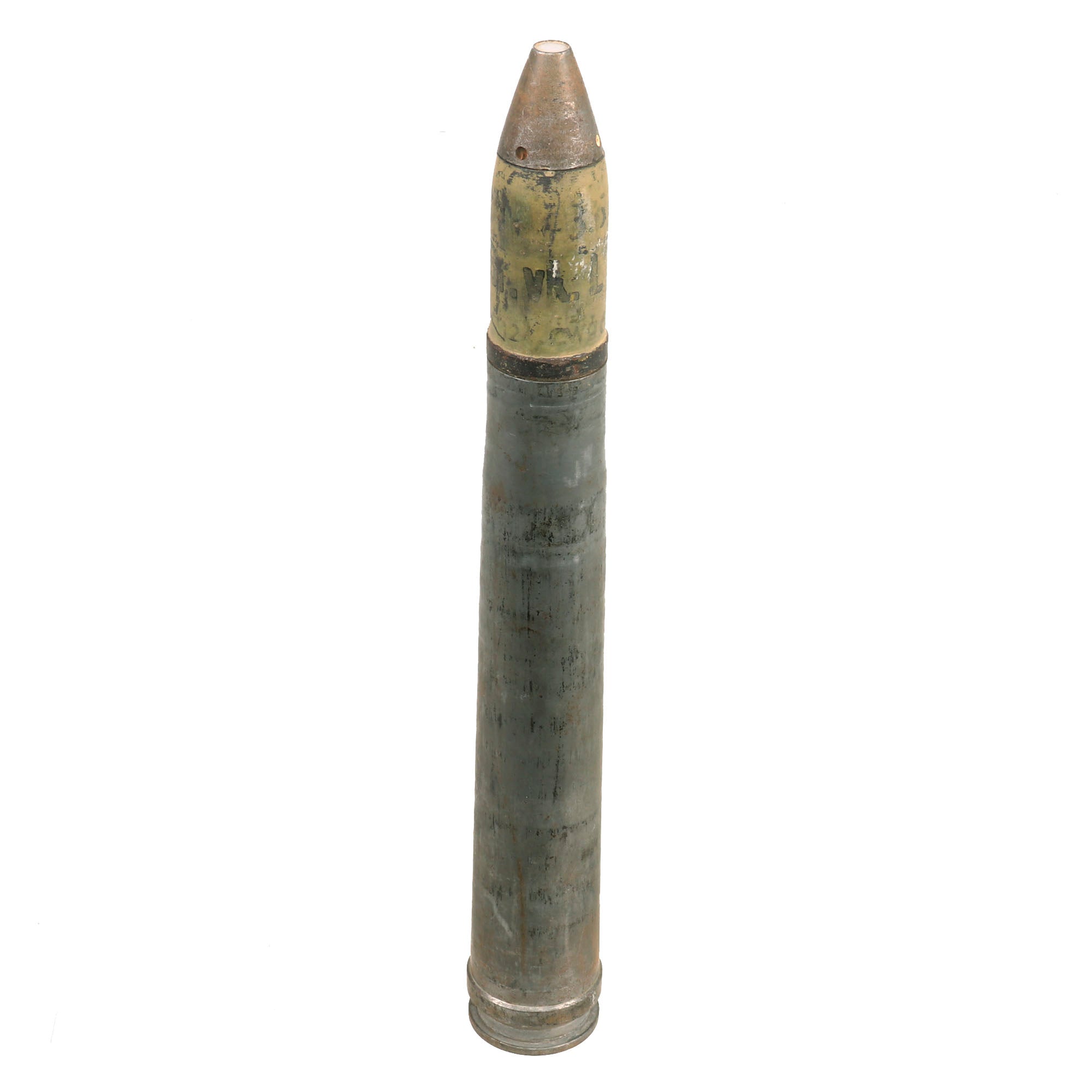 The overall condition on the round is really good. The projectile retains much of the original paint but does appear to be dated 1938 with a 1941 dated fuse. The shell casing itself still retains a complete headstamp with Waffenamt on the bottom.