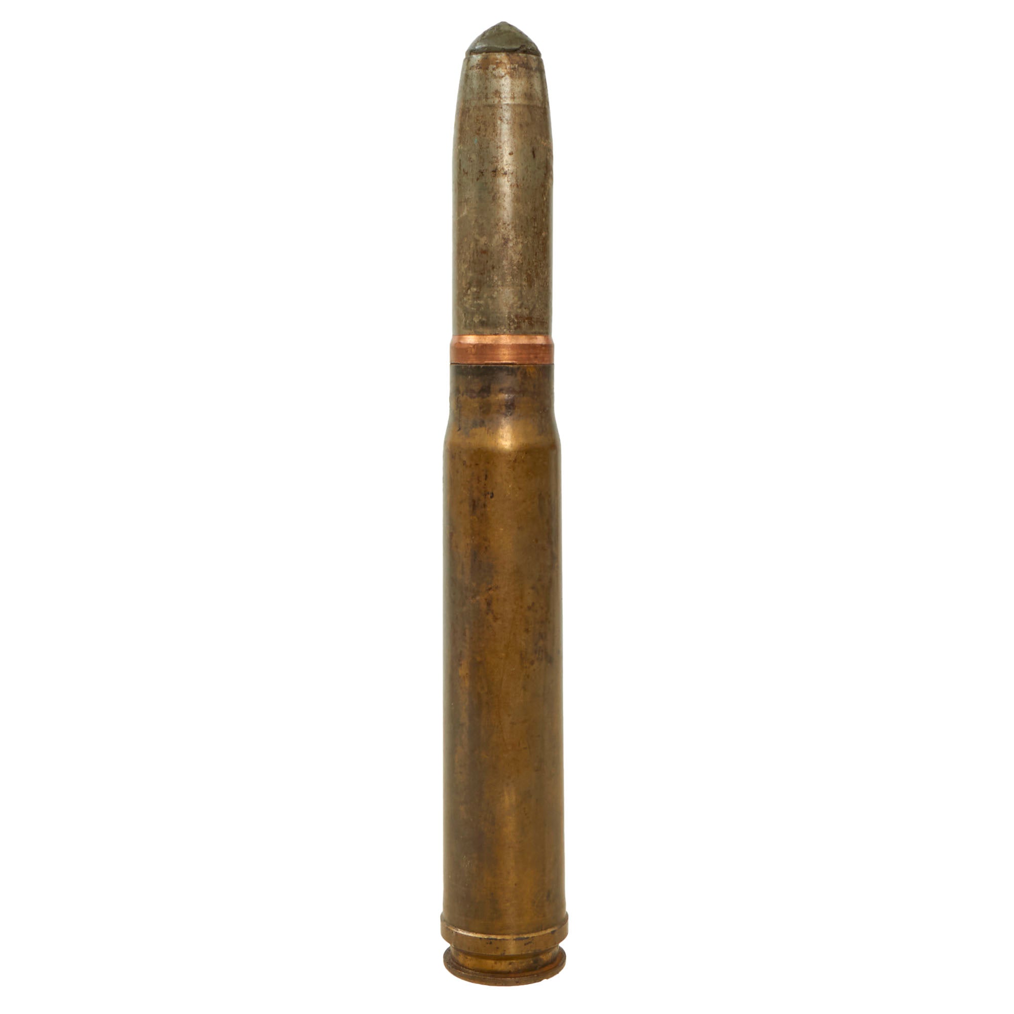 Original Item: Only One Available. This is a lovely inert example of a German 30mm High Explosive round, made up of an original projectile with fuze and steel shell casing. This example is completely void of any explosive content nor is it able to be used as an explosive device. The round is in compliance with the current BATF standards on inert ordnance. Like all deactivated ordnance, this round is Not Available for Export.The fuze of this example is unmarked. The bottom of the shell is marked awt 44 69. This dates the round to 1944. The round measures 11⅛” tall.A great example ready for further research and display.