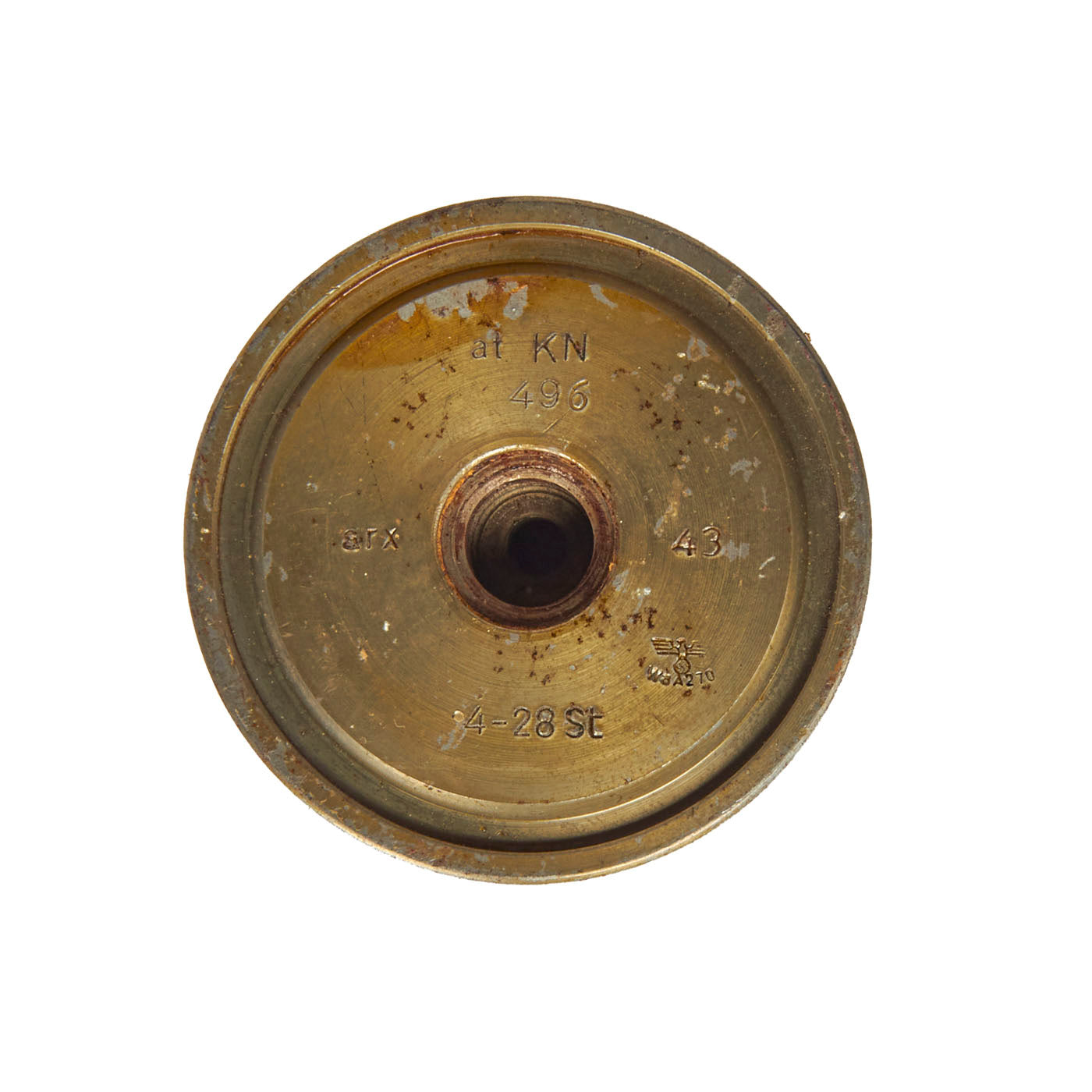 The overall condition of the round is very good but the actual warhead suffered pitting and appears to have been ground dug. The total length is 17 ½” from base to tip. The bottom still retains full arsenal markings and stamps with a prominent WaA270 Waffenamt. Waffenamt codes were the inspection marks used on military equipment by the German Third Reich.