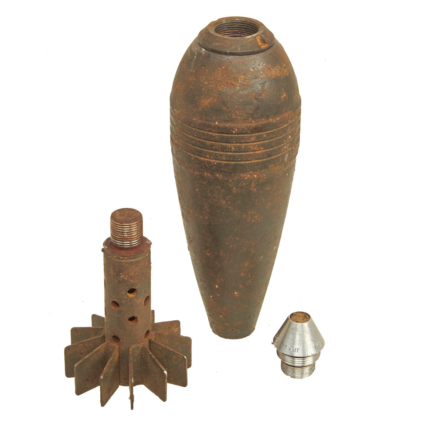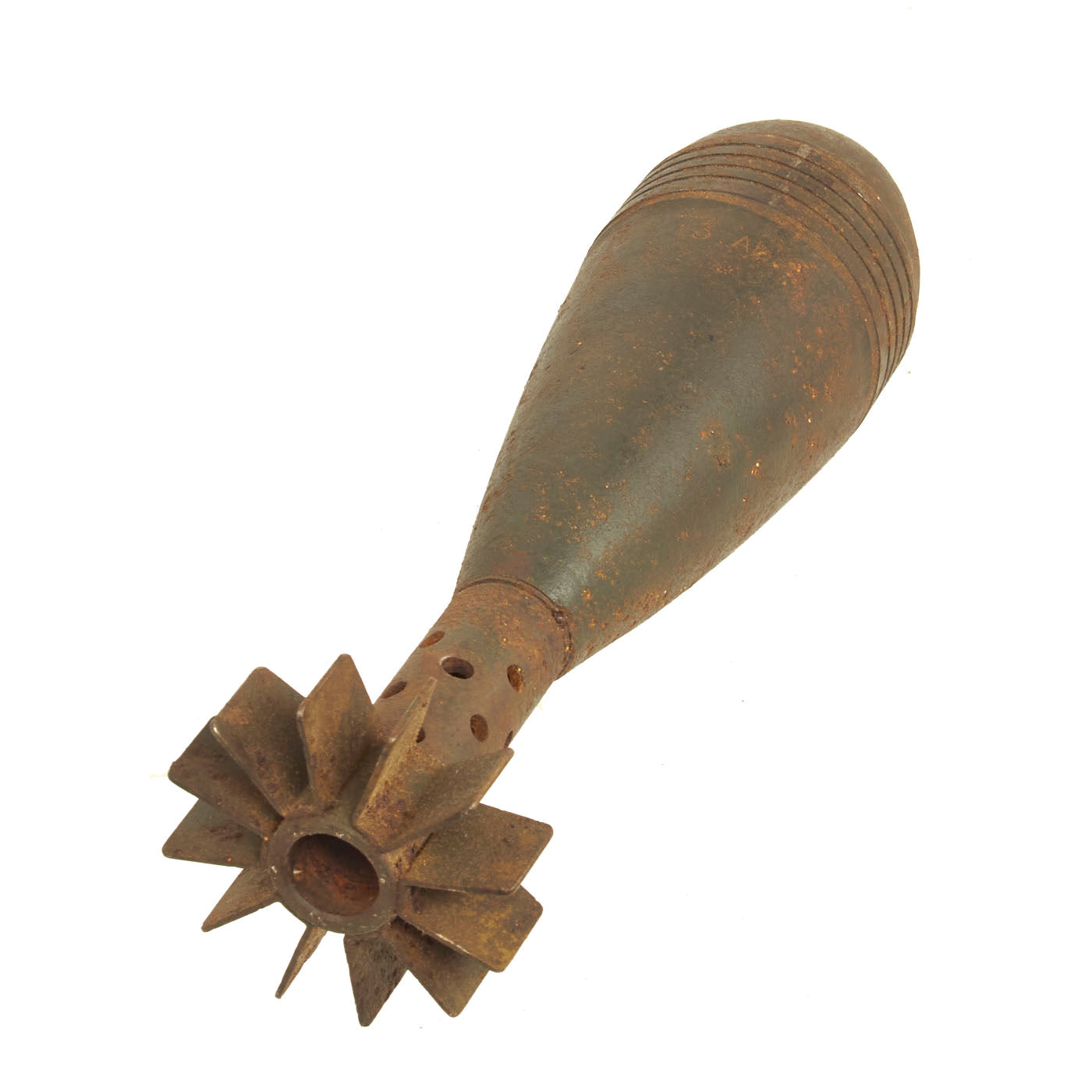 Original Item: Only One Available. This is a fantastic totally genuine 8mm mortar round. The round it completely void of any explosive content and cannot be rendered live again. This is in compliance with the current BATF standards on inert ordnance.