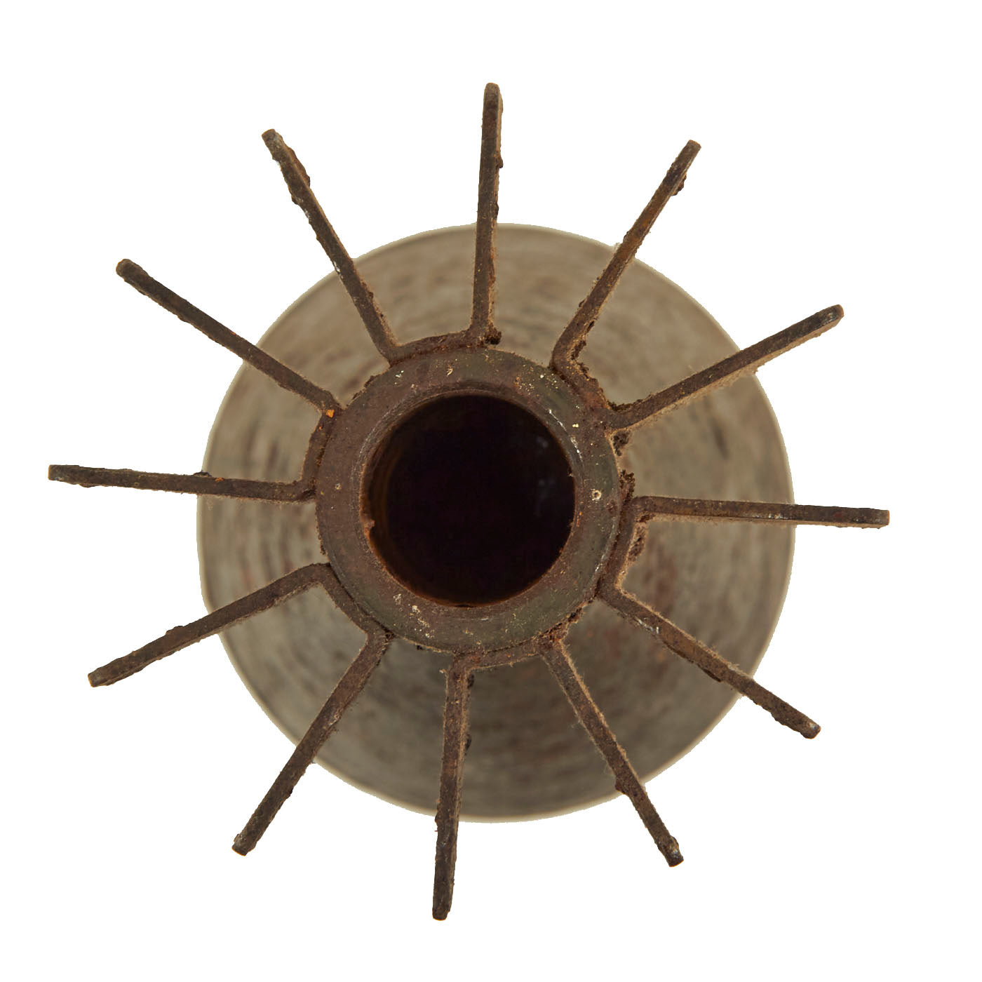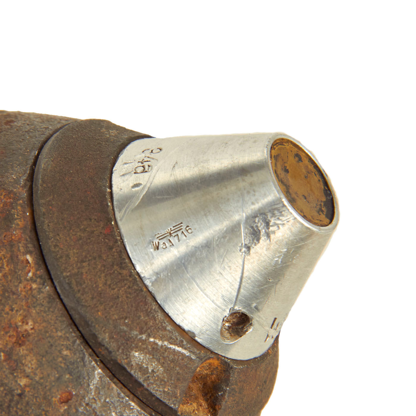 The mortar round is offered in very good condition and totally inert. It retains little of the original paint.