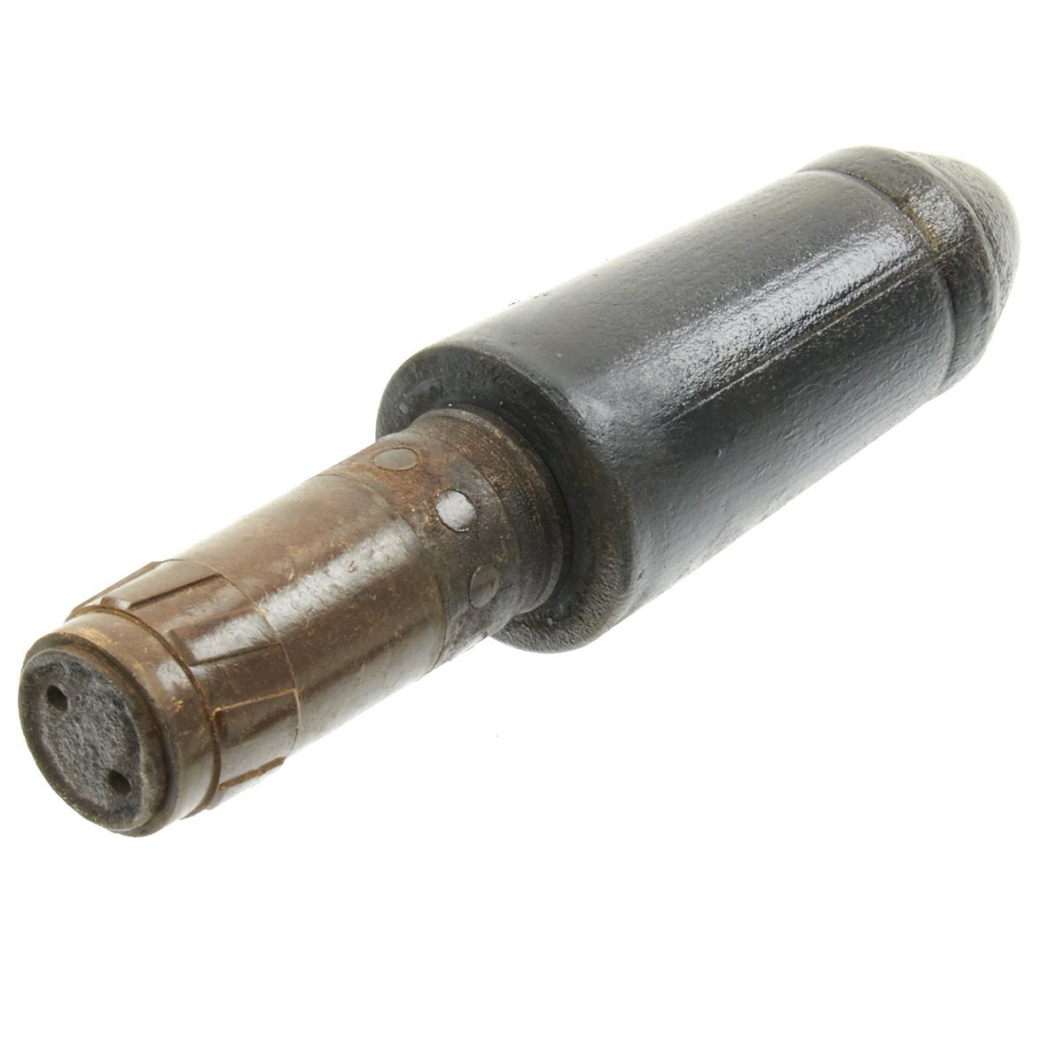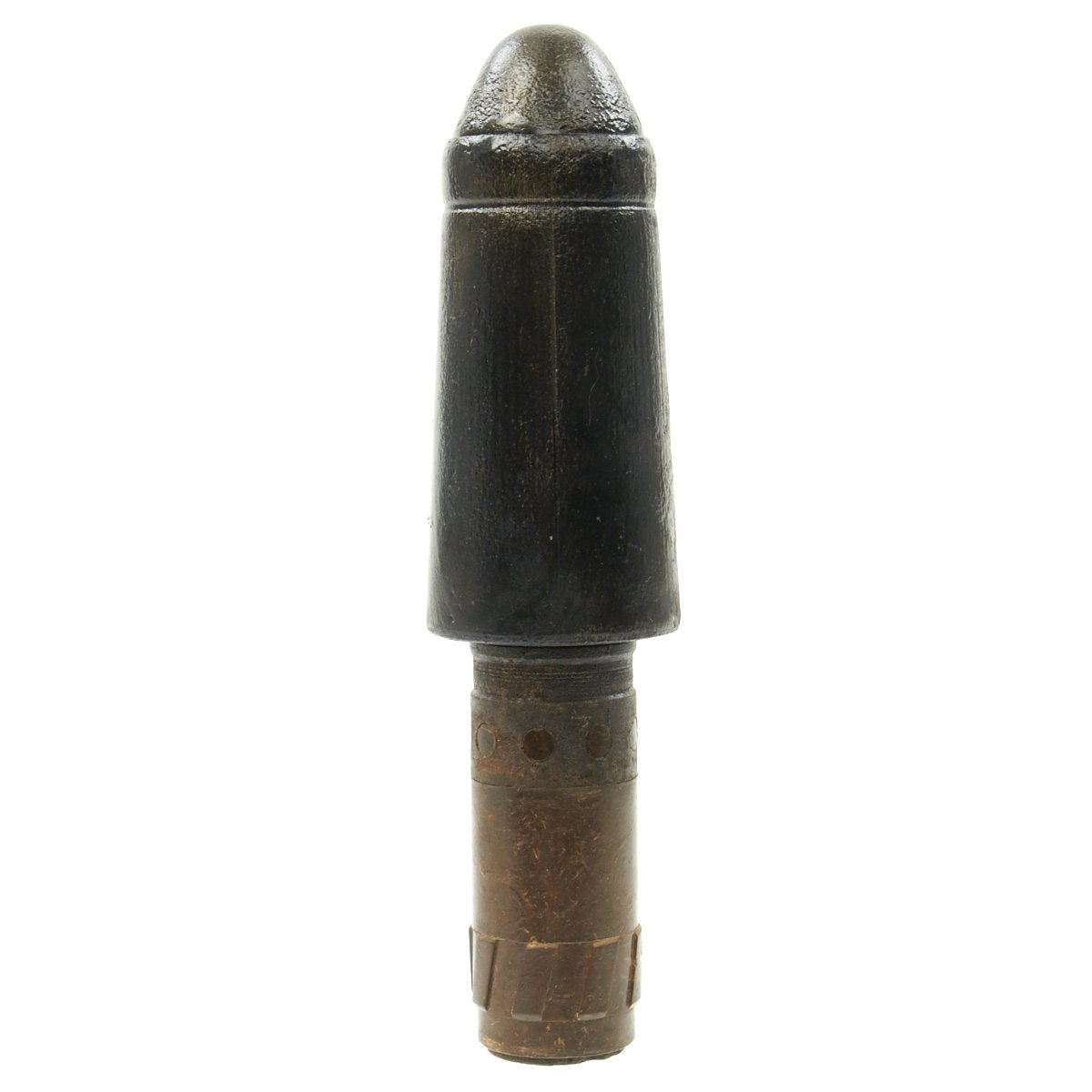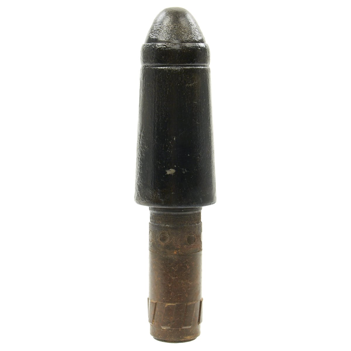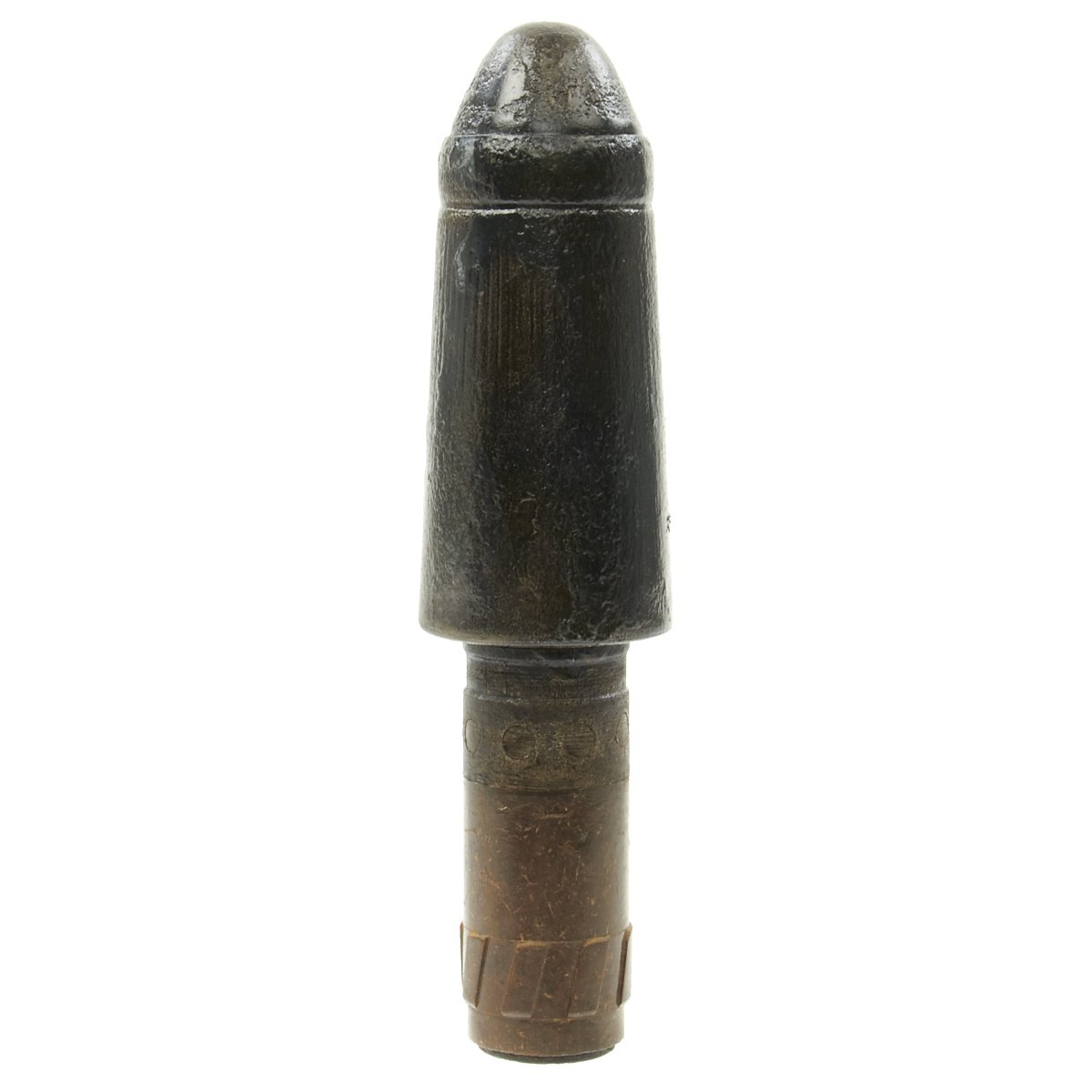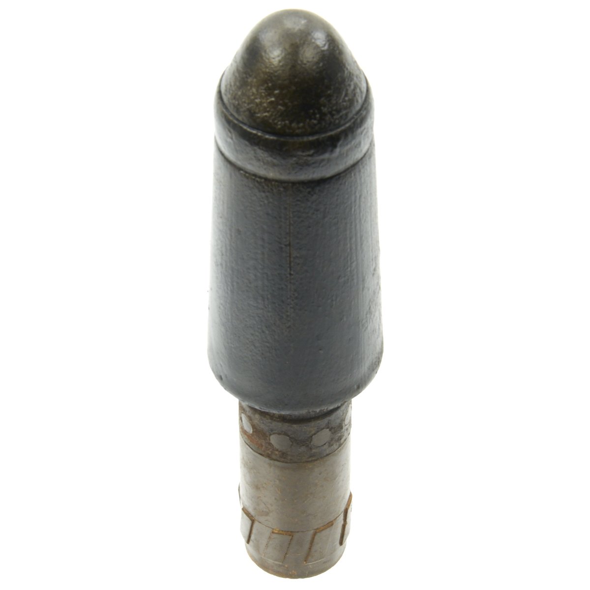 Known in German as the Große Gewehrpanzergranate (Large armored rifle grenade) - a.k.a the Model 40) HEAT rifle grenade developed by the German Wehrmacht. It has a 45-39mm tapered shape charge warhead and was the preferred Anti-Tank rifle grenade. It could penetrate 70mm of armor (regardless of range, as it was a shaped charge). It has a sheet metal warhead body with a mounted nose cap. The base fuze is inside a Bakelite shaft.