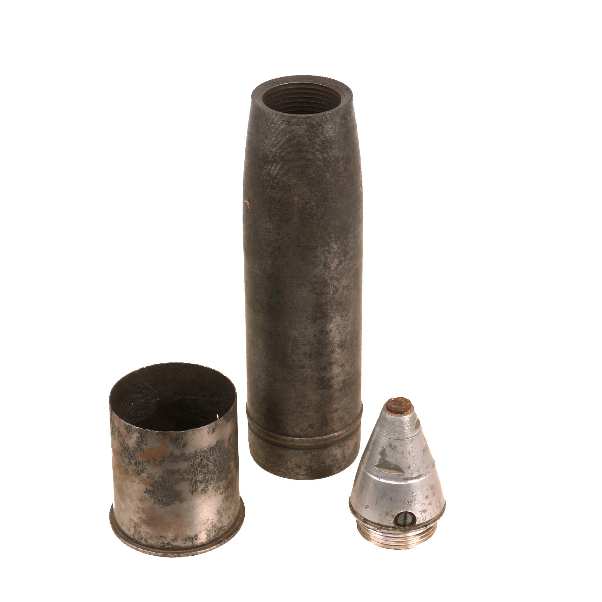 Original Items: Only One Set Available. The 7.5 cm leichtes Infanteriegeschütz 18 (7,5 cm le.IG 18) was an infantry support gun of the German Wehrmacht used during World War II. Development of the gun began in 1927, by Rheinmetall. The crew was protected by an armoured shield. There was a mountain gun variant, the 7.5 cm le.GebIG 18. For transport, the mountain variant could be broken down into six to ten packs, the heaviest weighing 74.9 kg. These were typically assigned at two to each mountain battalion. Six 7.5 cm le.IG 18F were manufactured in 1939. These were airborne guns, capable of being broken down into four 140 kg loads.The airborne variant had smaller wheels and no shield. There was also an infantry support gun, known as the 7.5 cm Infanteriegeschütz L/13 and designed as a replacement for the le.IG 18, which could be broken into four to six loads. However, though prototypes were tested, the German army felt that it did not improve on the existing design sufficiently to merit introduction and the army stayed with the earlier gun.This is a lovely example of a 7.5cm round & casing which shows a good bit of oxidation. It is marked on the fuze:LelgrZ23nAfcv 44This indicates 1944 manufacture by Schmidt, Kranz & Co. of Nordhausen, a known maker of AZ.23 fuzes. The bottom of the casing is marked:agw-B11auy 446341St.le.I.G.18This indicates 1944 manufacture by Polte-Werke, Werk Grüneberg of Nordbahn. The projectile has lost much of its original paint and has heavy oxidation. The shell has very heavy oxidation damage with some material loss along the top rim, but the shell still sits inside well.A very nice example, ready for further research and display.