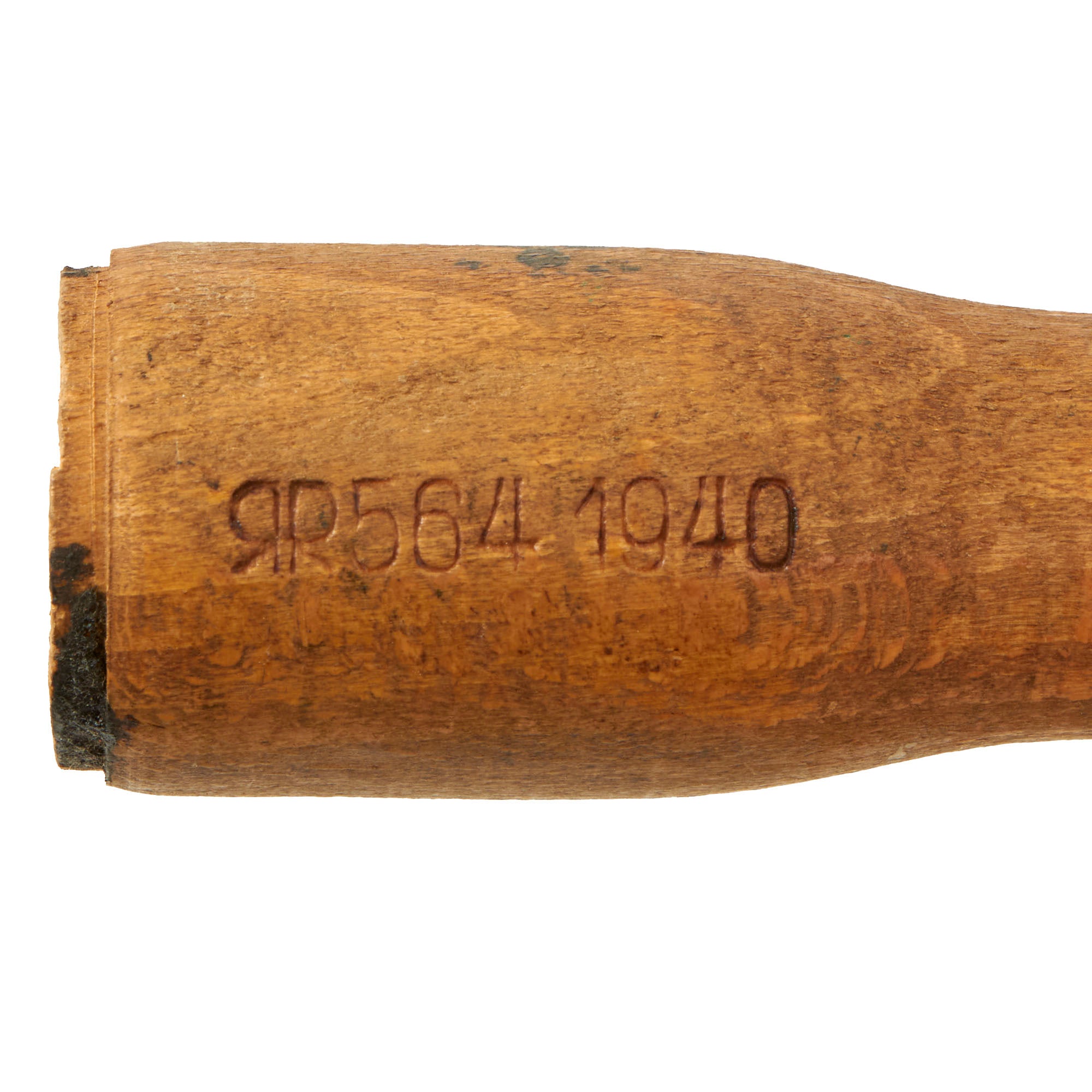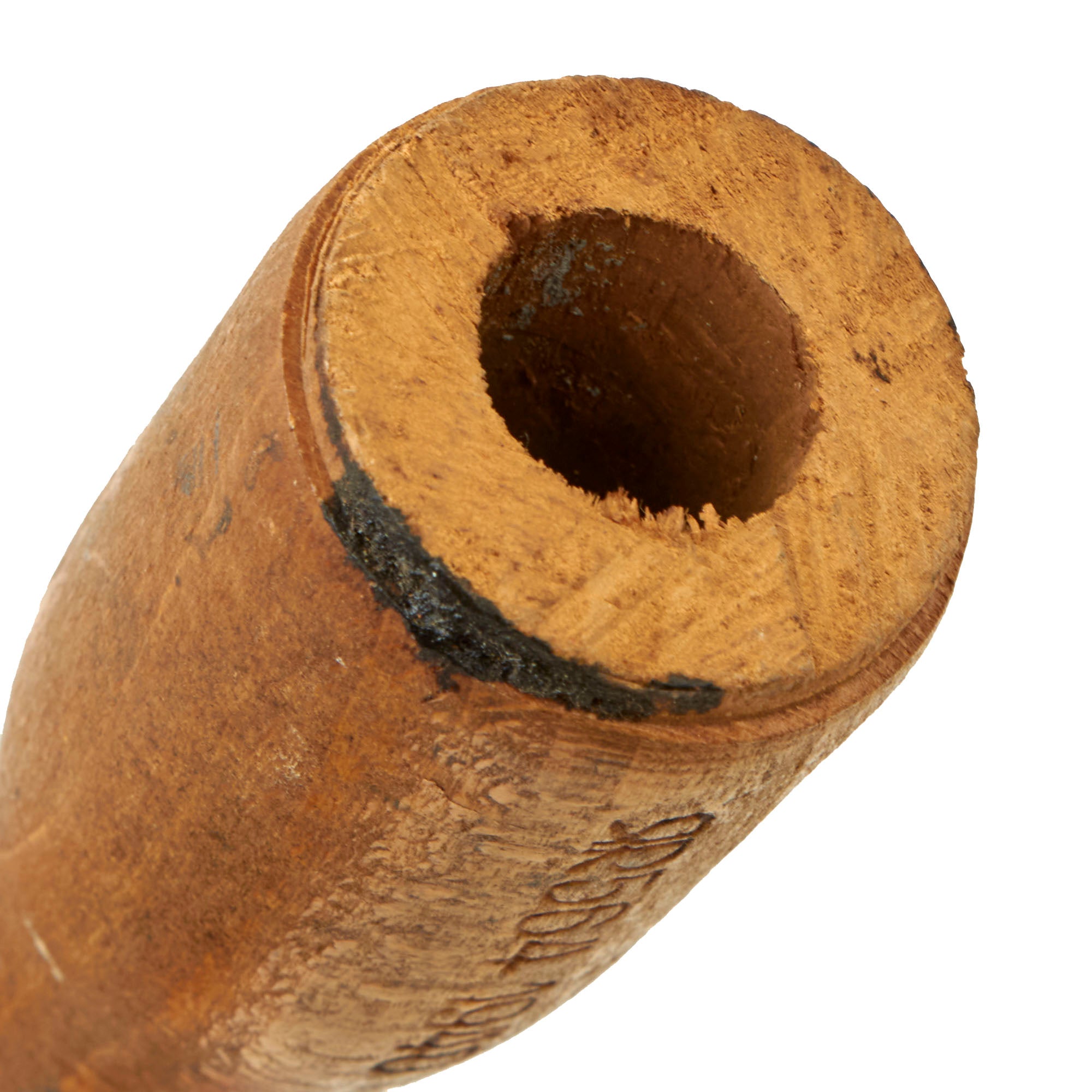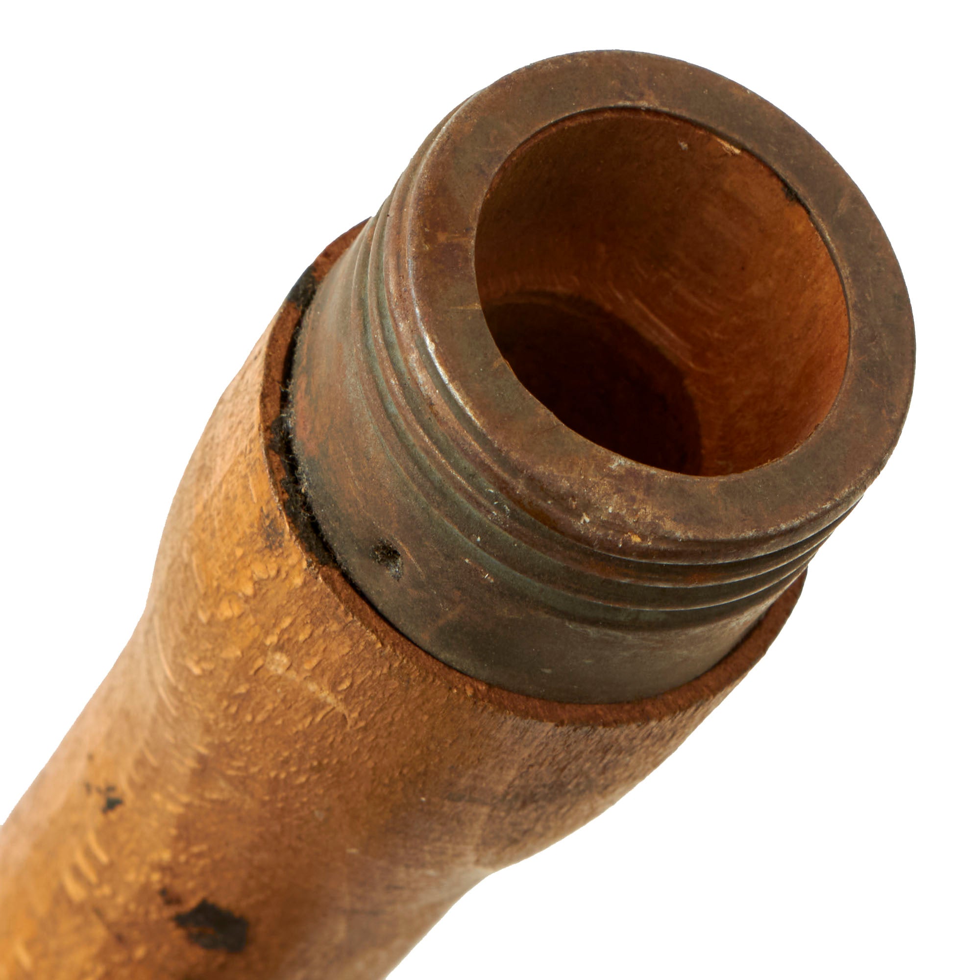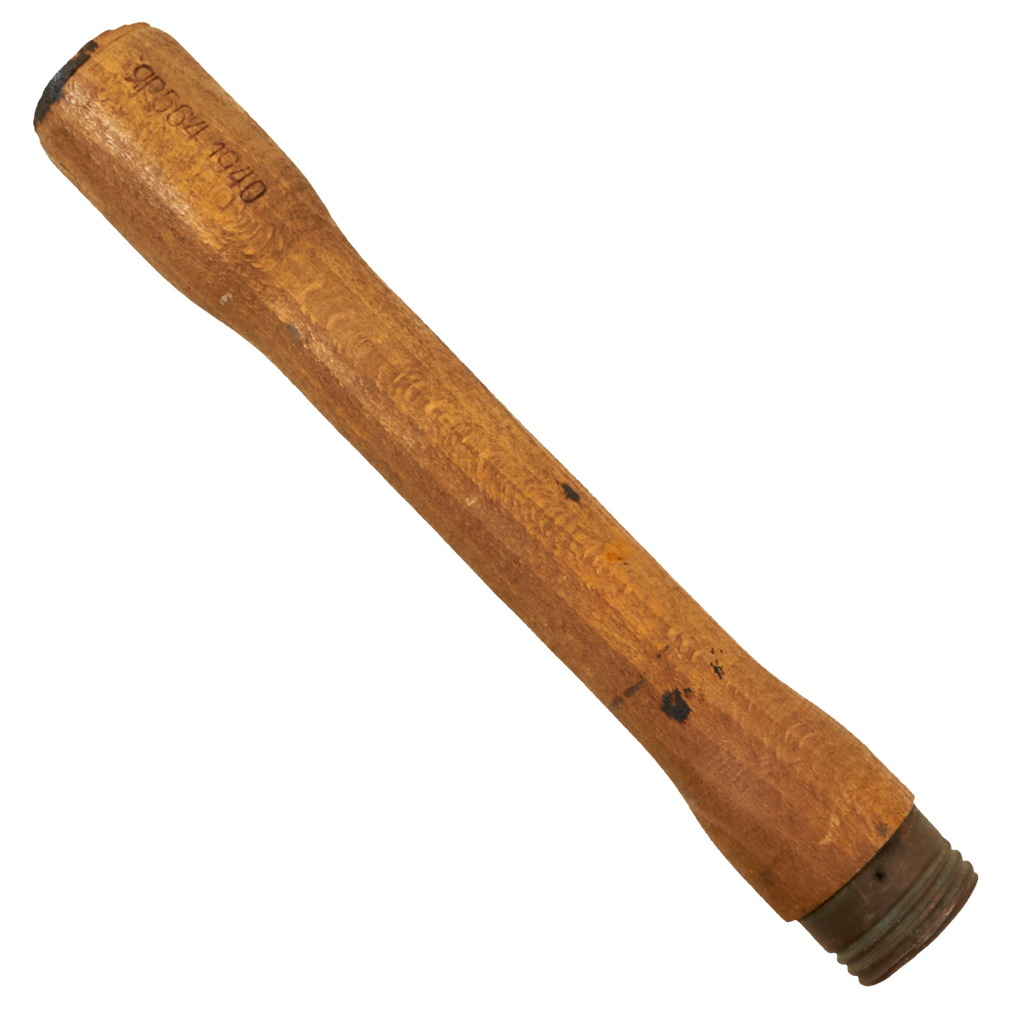 Original Item. Only One Available. This is a great 1940-manufactured M24 Stick grenade handle in good shape, perfect for a restoration project. The handle has clear markings and retains the bottom cap, but requires a new front end piece, head, and cap. The end of the top has been sawed off, but something could definitely be jury-rigged for it. The handle measures 9⅞” long. Like all deactivated ordnance, this is Not Available For Export.