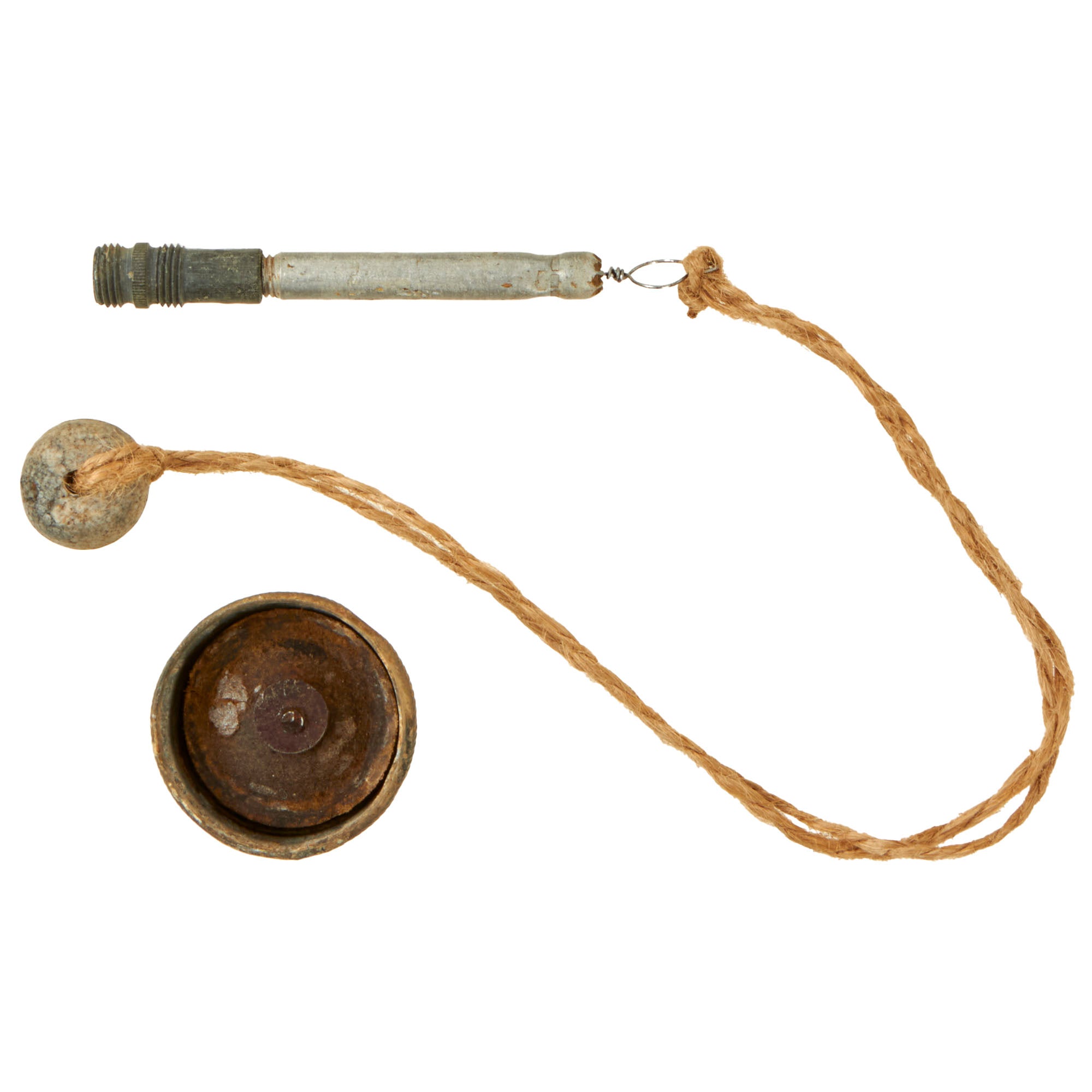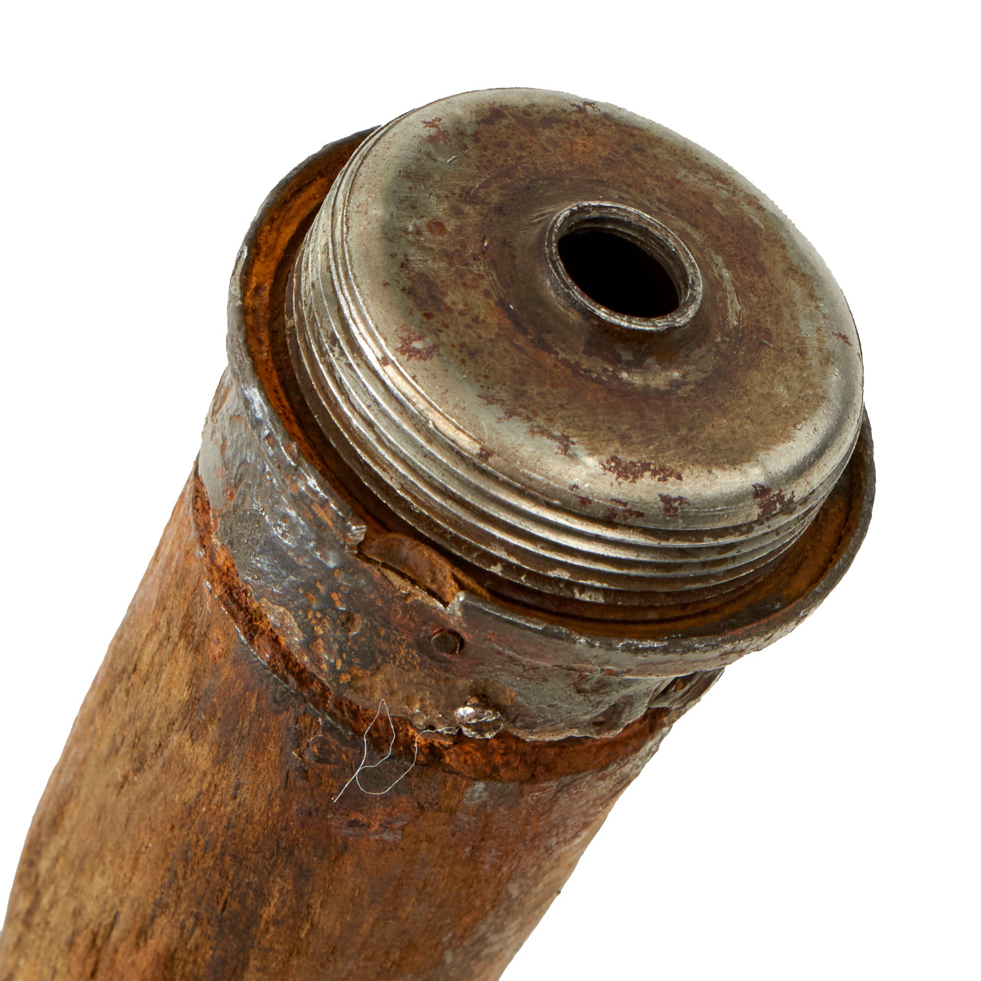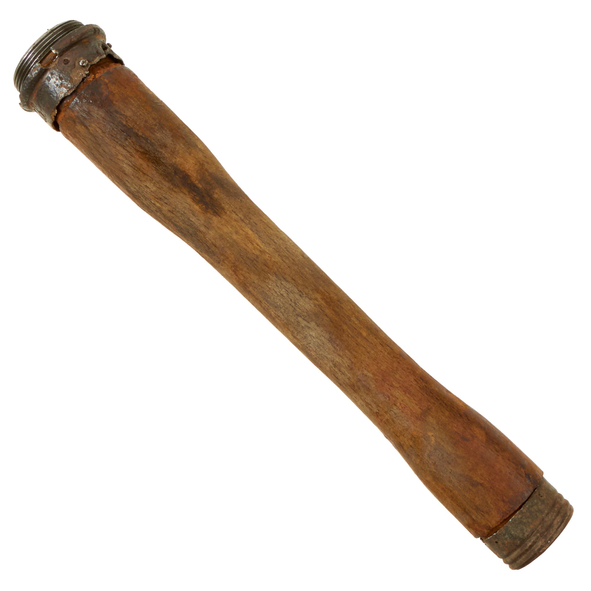 Original Item. Only One Available. This is a good example of an M-24 stick grenade disassembled and displayed, with the different pieces visible. As with all deactivated ordnance, this grenade is Not Available for Display.