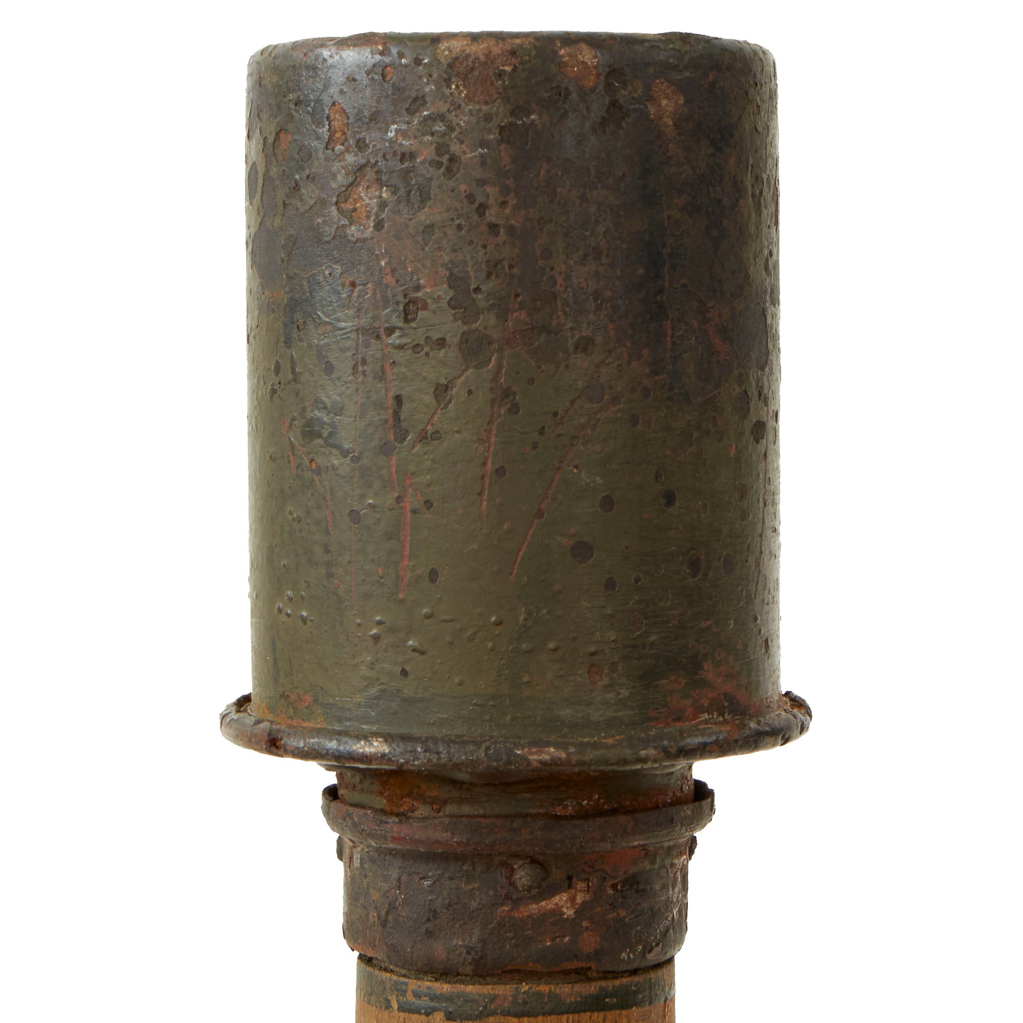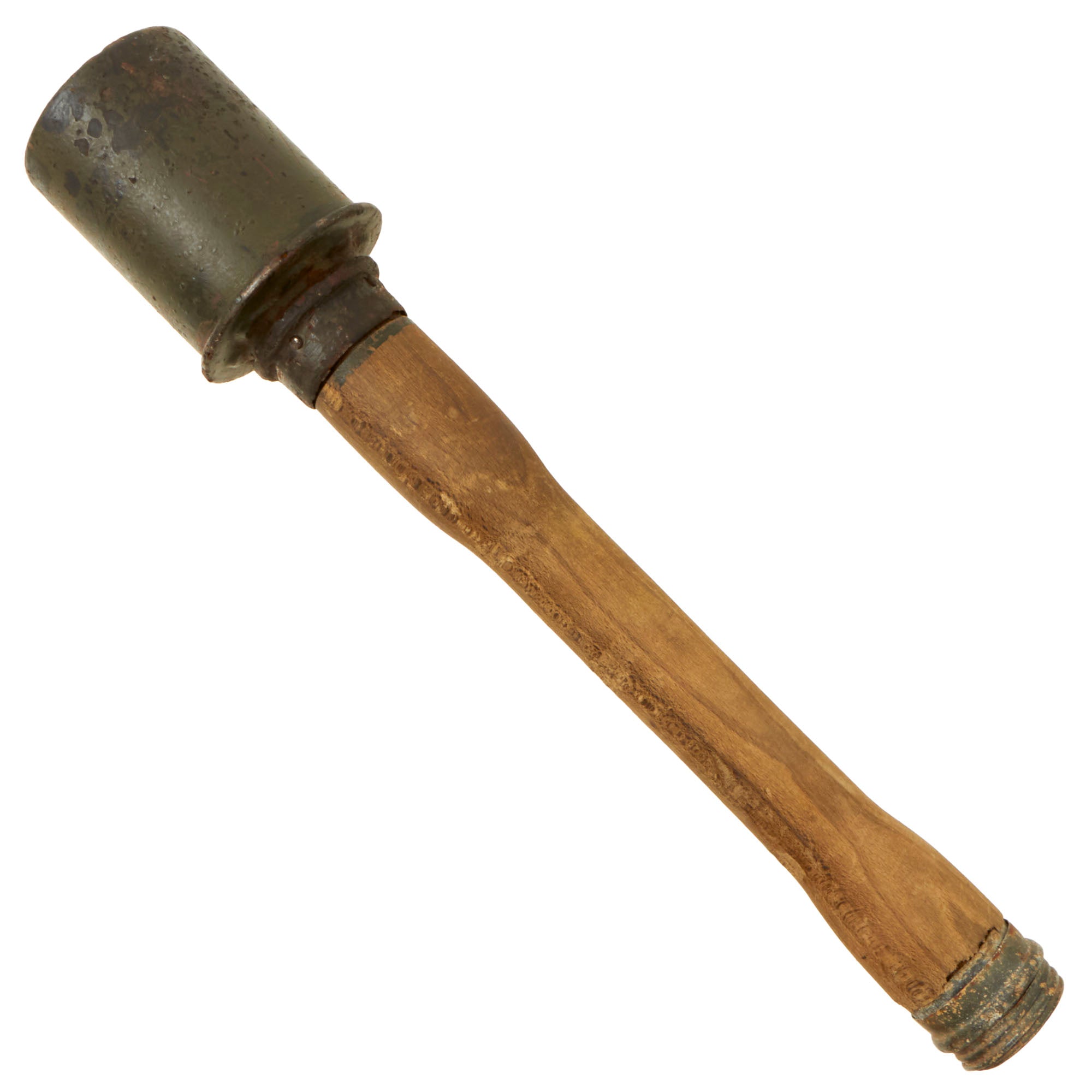 Original Item. Only One Available. This is a very nice example of a WWII German M-1924 German Stick Grenade. It still retains some of its original paint and the original markings can be seen on both the shaft and the head of the grenade. Like all deactivated ordnance, this grenade is Not Available for Export.