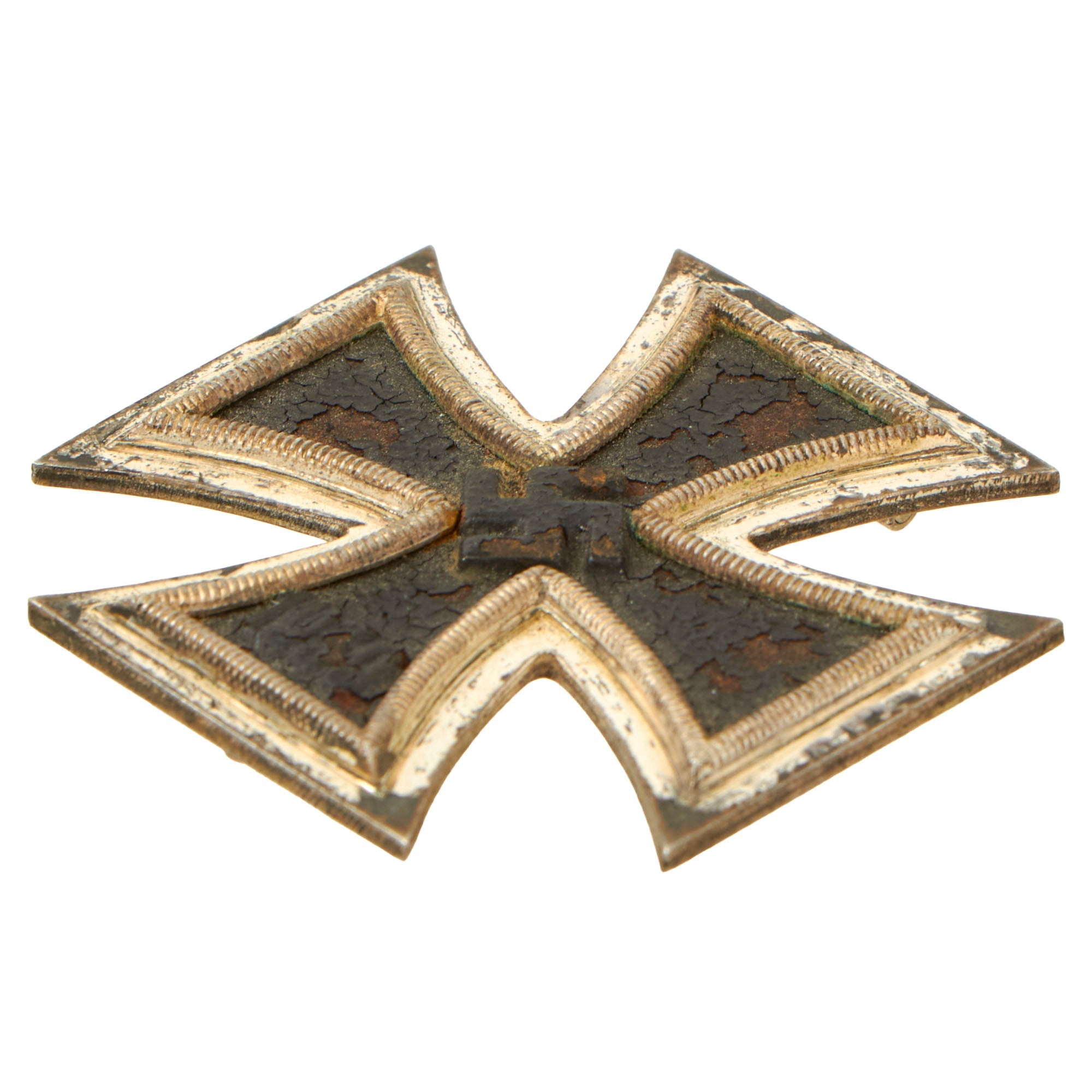 Original Items: Only One Available. This a very nice patinated example of a WWII Iron Cross First Class 1939, with a Magnetic core, flat design, and tapered brass pin attachment. It is not maker marked, but that was not uncommon for these awards. Close examination may be able to determine the maker, as the major makers had their own distinctive styles.