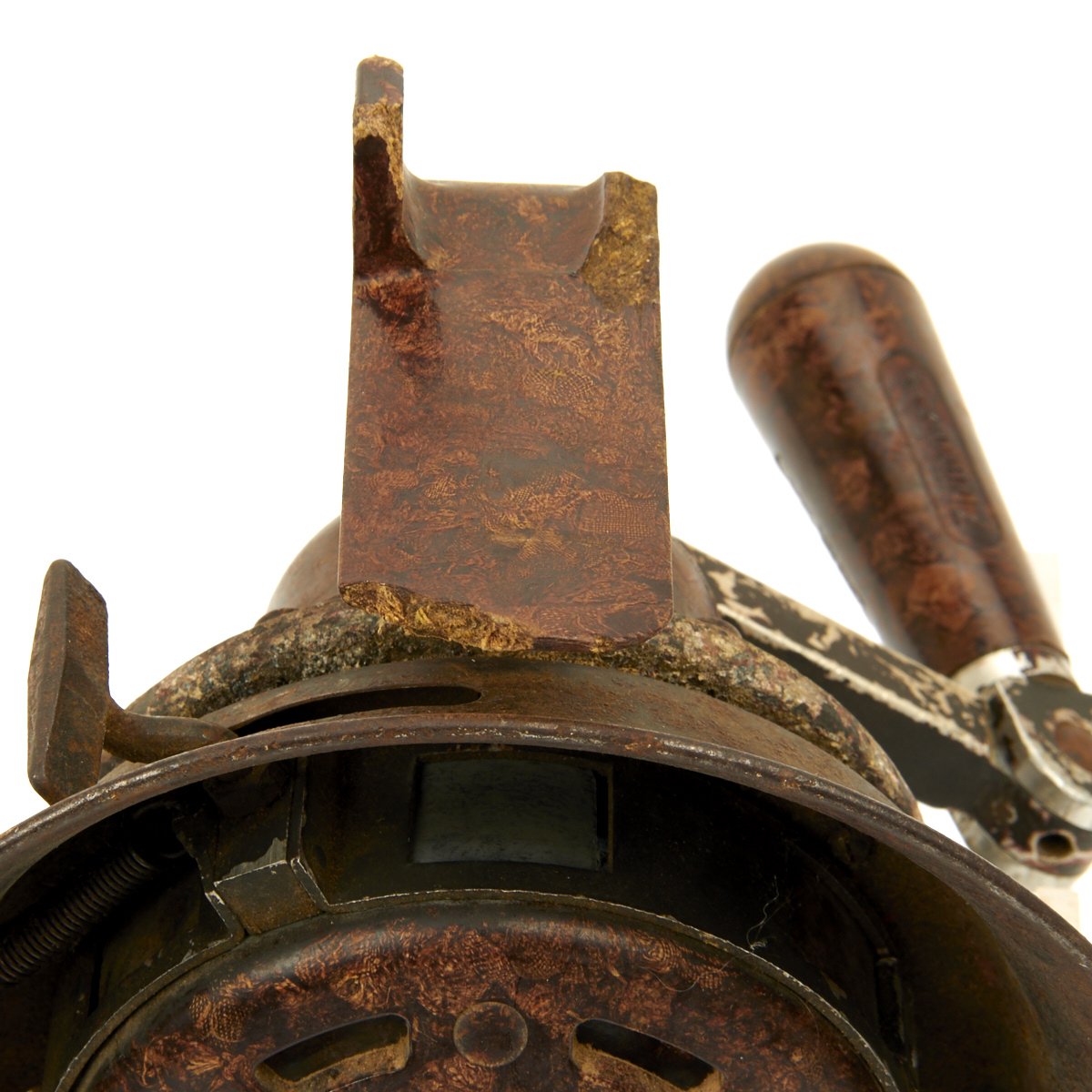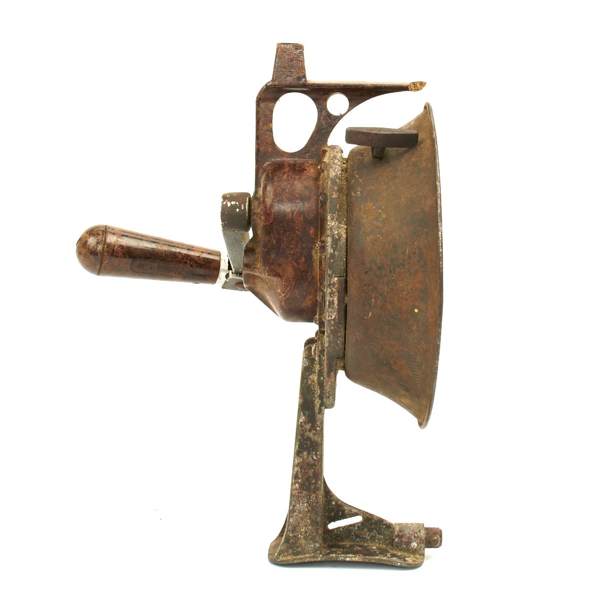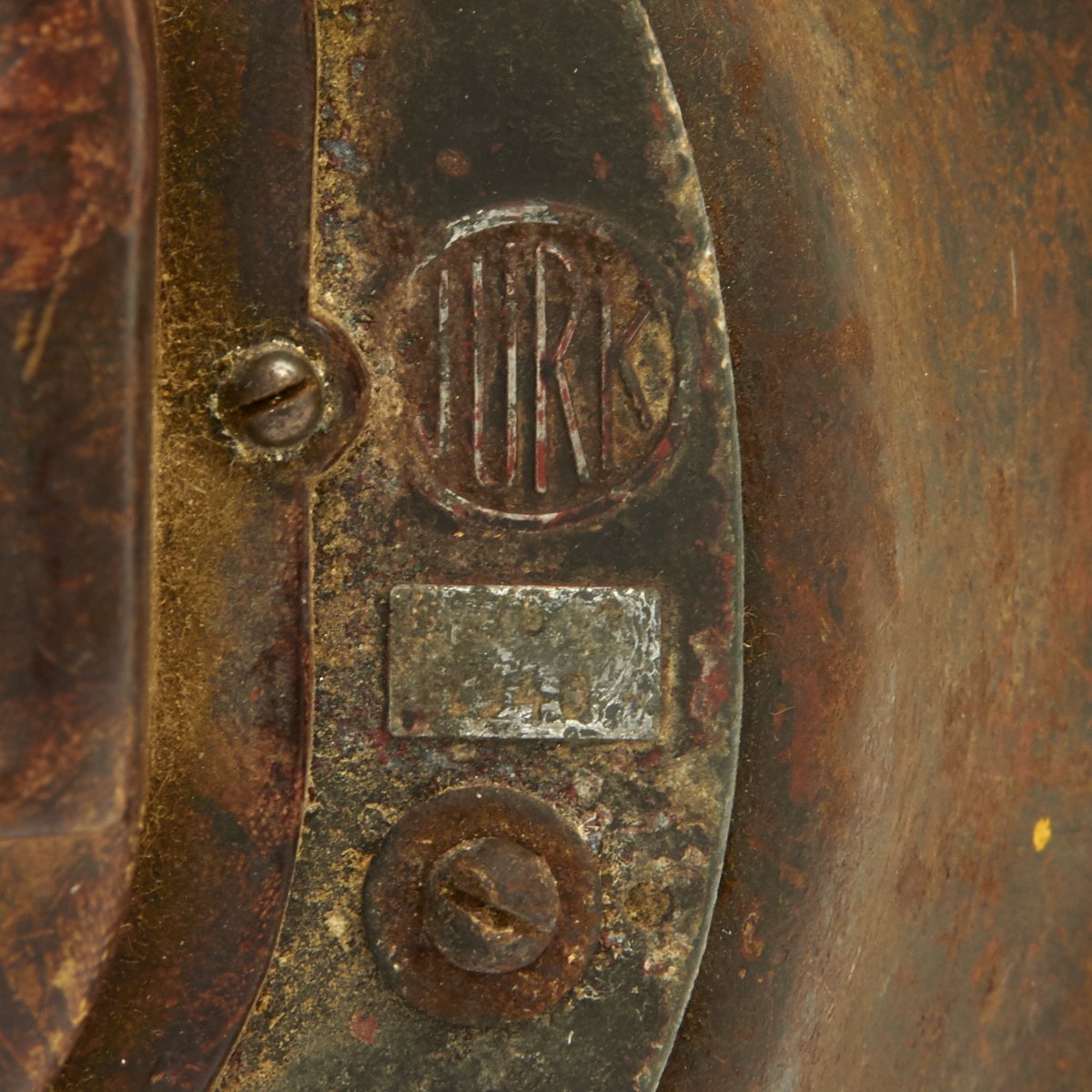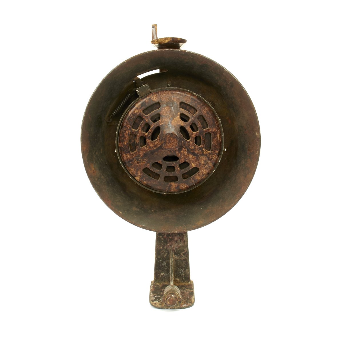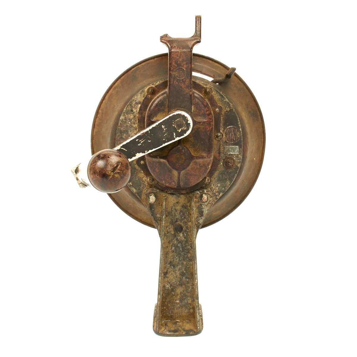 Original Item: Only One Available. Made in approximately 1940, this is a World War 2 German hand-crank siren. It has a sound damper and the chopper, stator and handle are made of Bakelite. It constructed from a wonderful red bakelite and still functions by emitting a classic air raid siren screech when cranked. The reverse is maker marked JURK, the folding bakelite handle is marked Ziehen (Pull). The bakelite parts are of the most desirable red/brown variety. This is a very rare hard to find piece offered in fully operational condition.