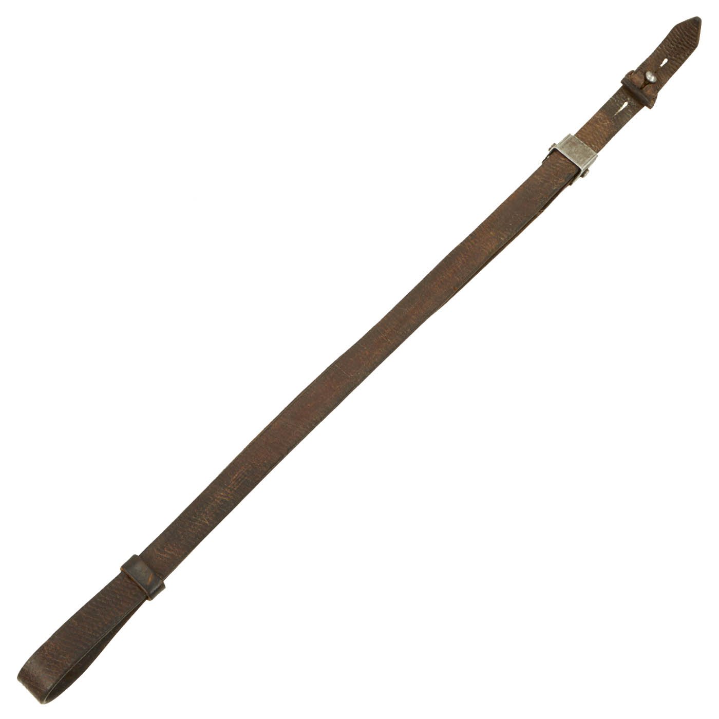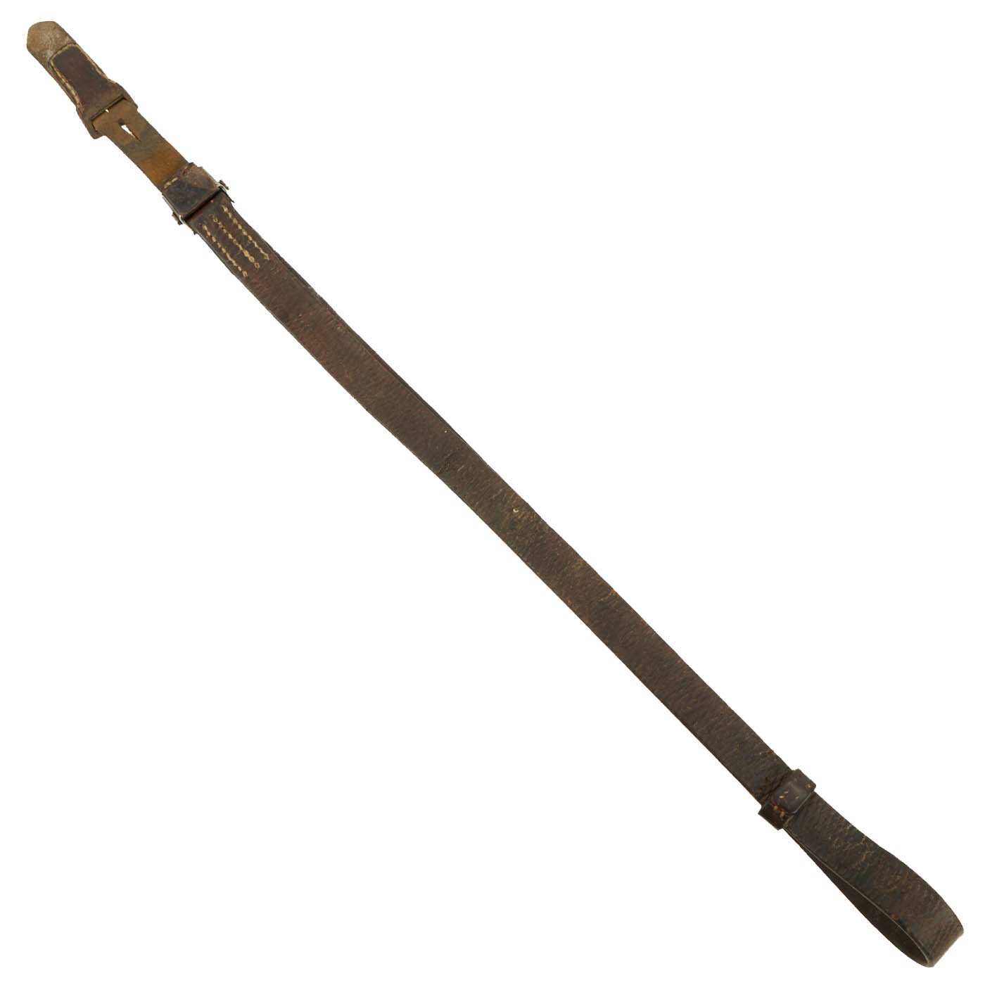 Original Item: Only One Available. This is a very good condition, totally genuine World War Two German issue leather sling for the Mauser Karabiner 98 Kurz (k98k). It is hand sewn, with steel hardware, and made of quality leather which is fully crosshatched with a border. The sling will also work for G/K43 and MP43/44.