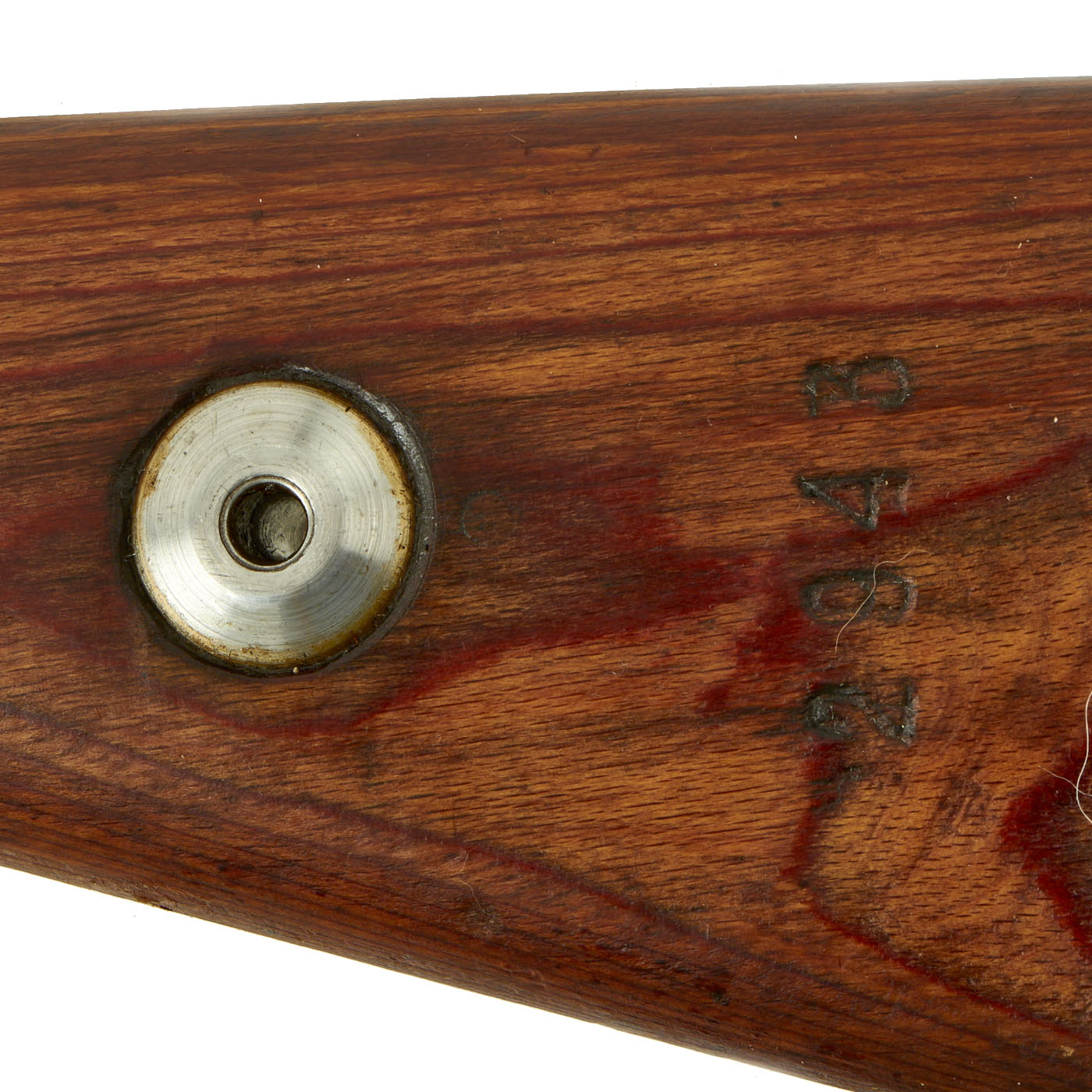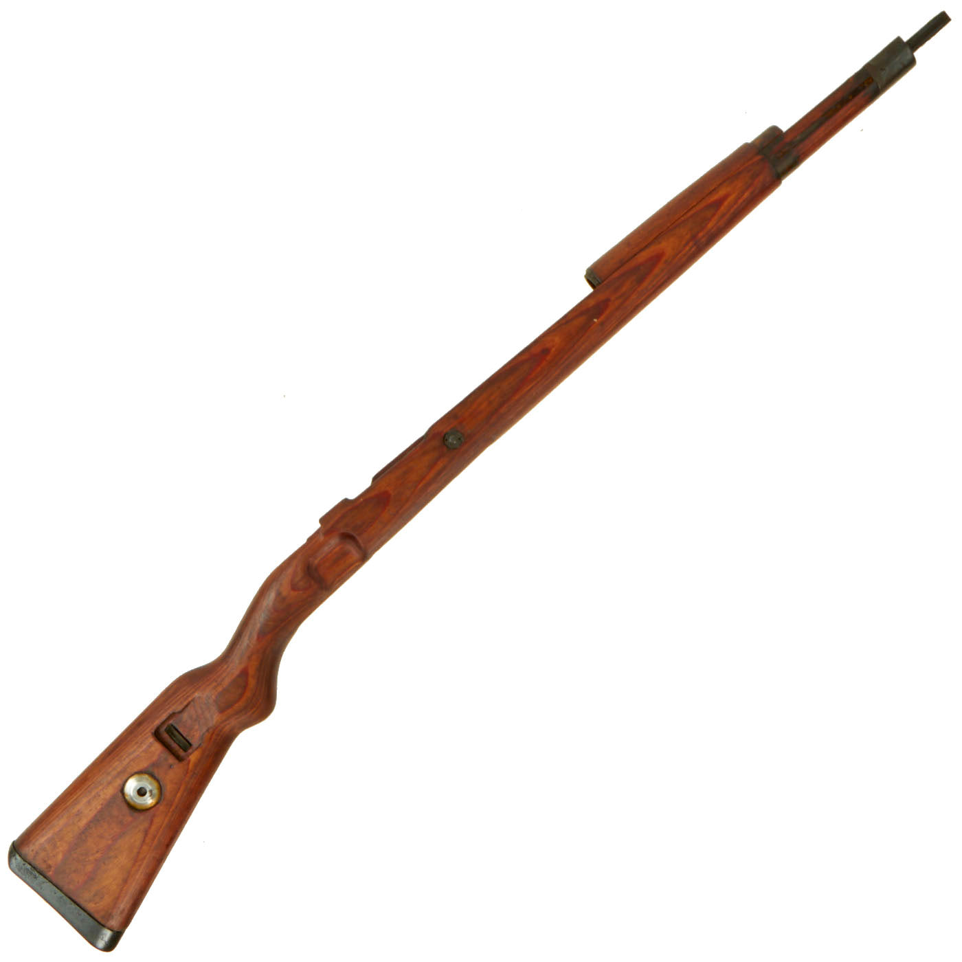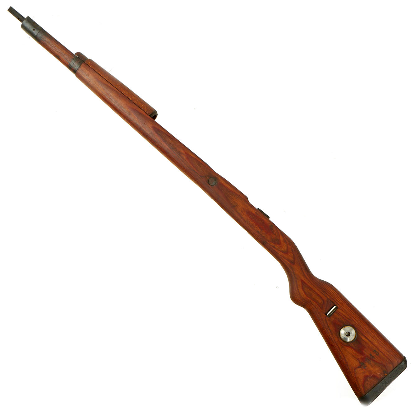 These stock sets are the type produced from 1940 onwards during the war, with laminated wood and cup butt plates. Each has a complete lower stock and handguard, as well as a nose cap / bayonet fitting, receiver strengthening bolt, and butt plate. They also feature the 30mm metal fitting through the butt stock that aided in bolt disassembly in the field during cleaning.
