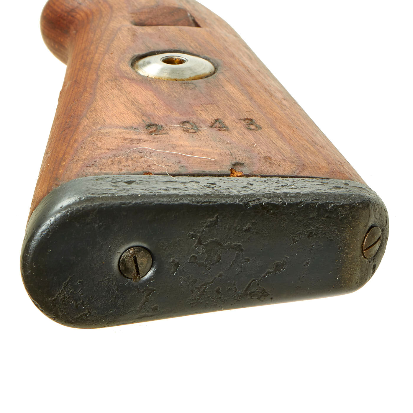 These generally will have serial number and other markings, but due to wear and cleaning their German Waffenamt and maker markings have been worn away. Please note that they may have cracks and other period wear, as well as some period repairs due to splits in the laminate.