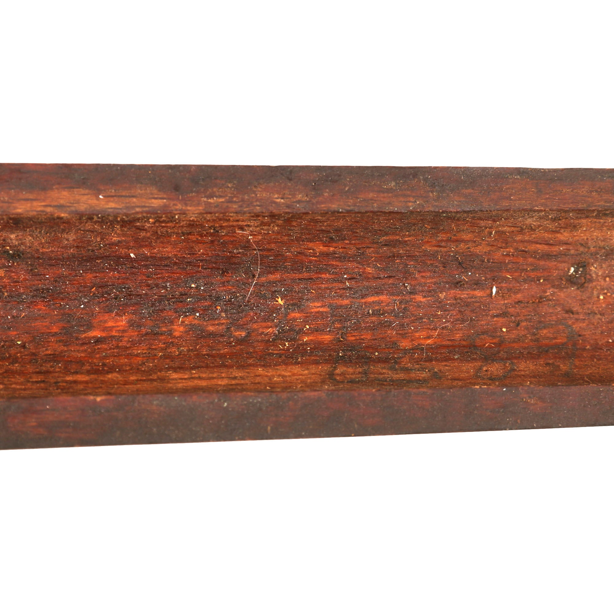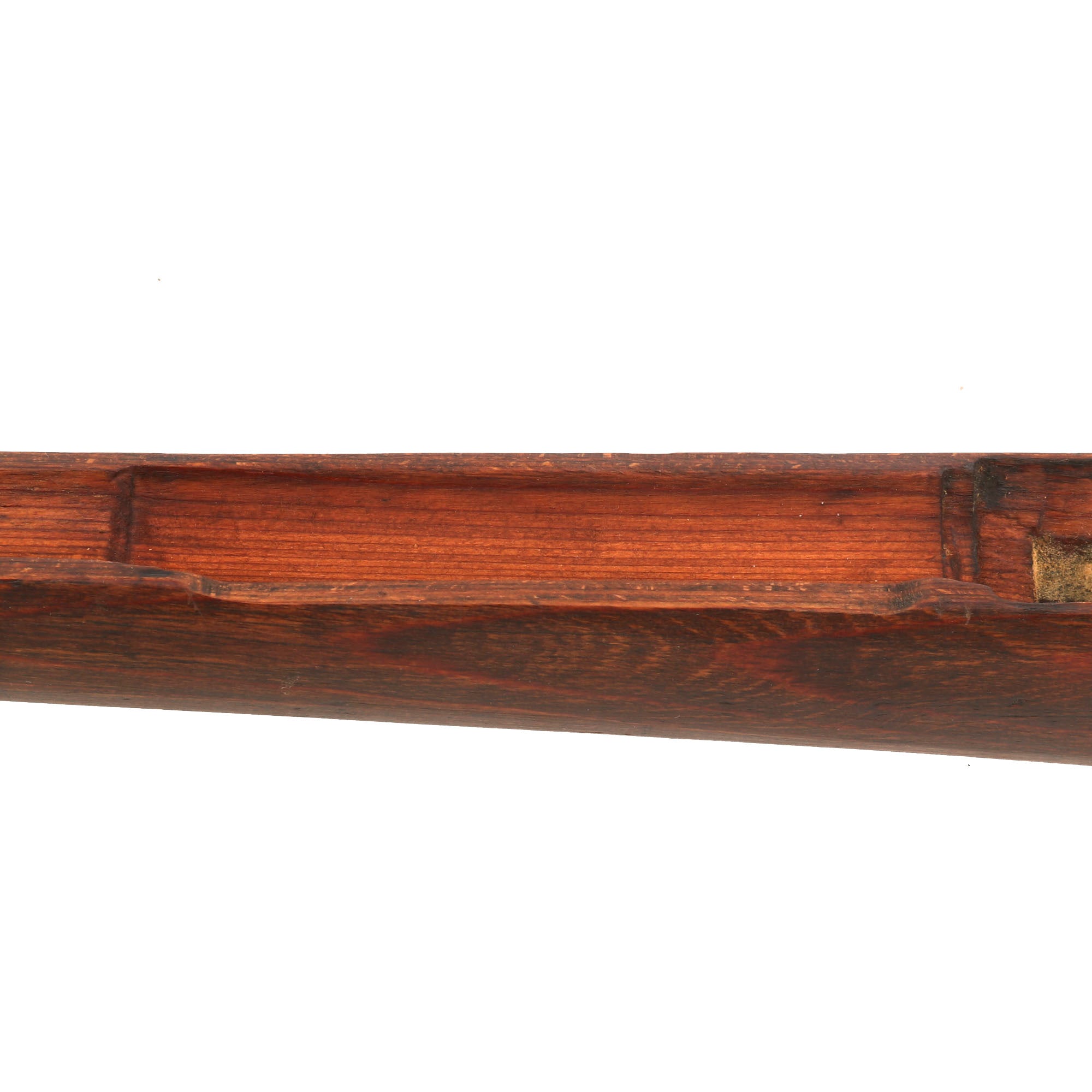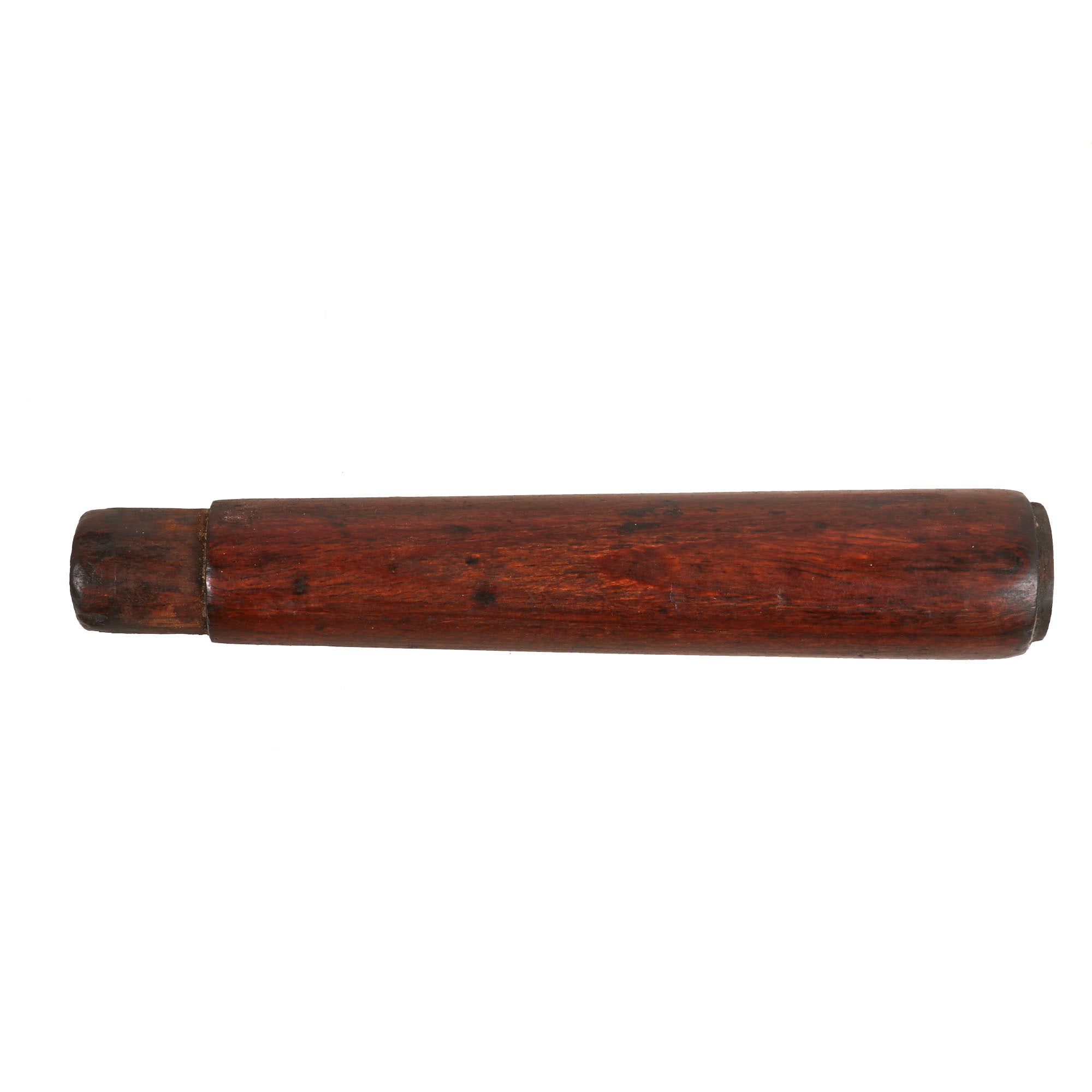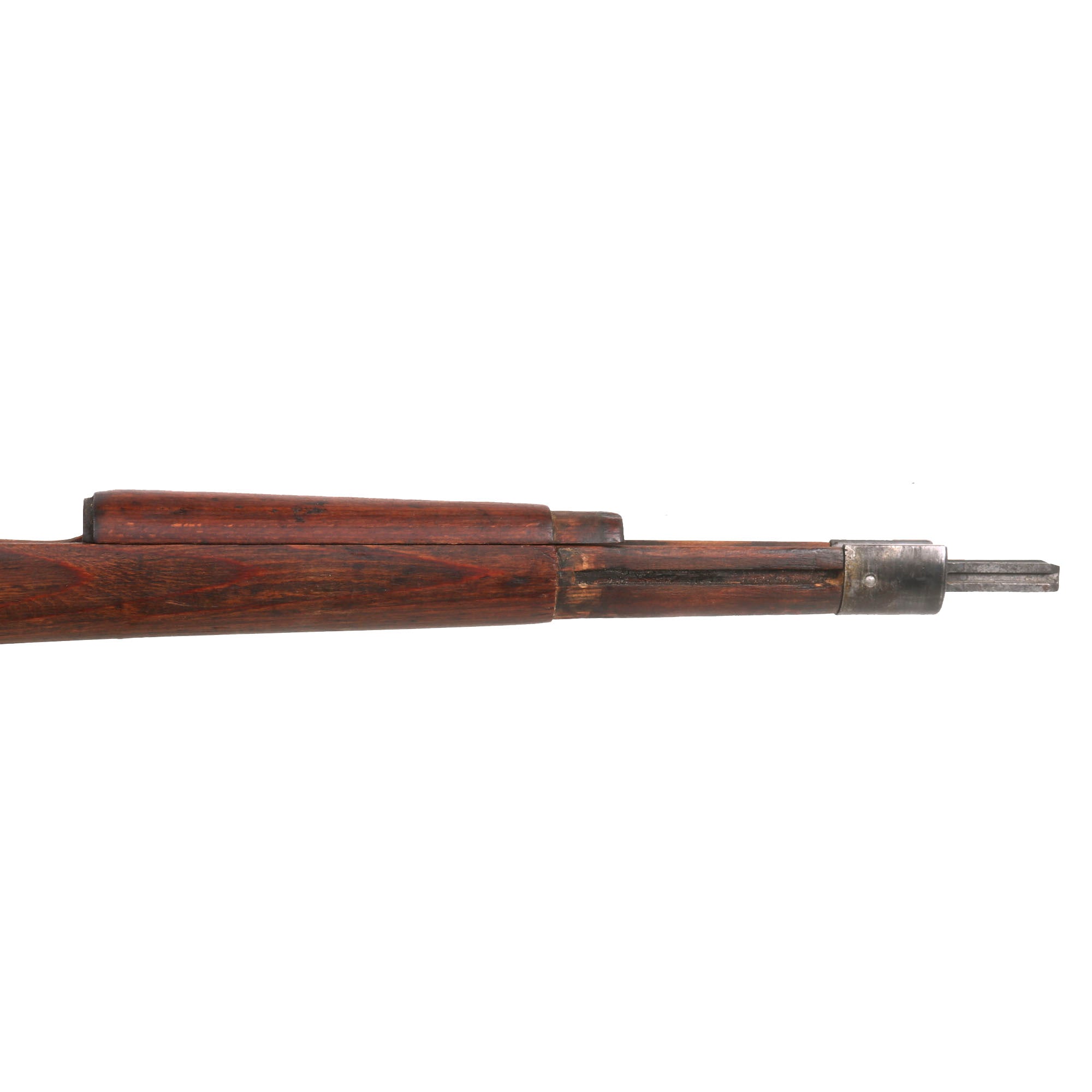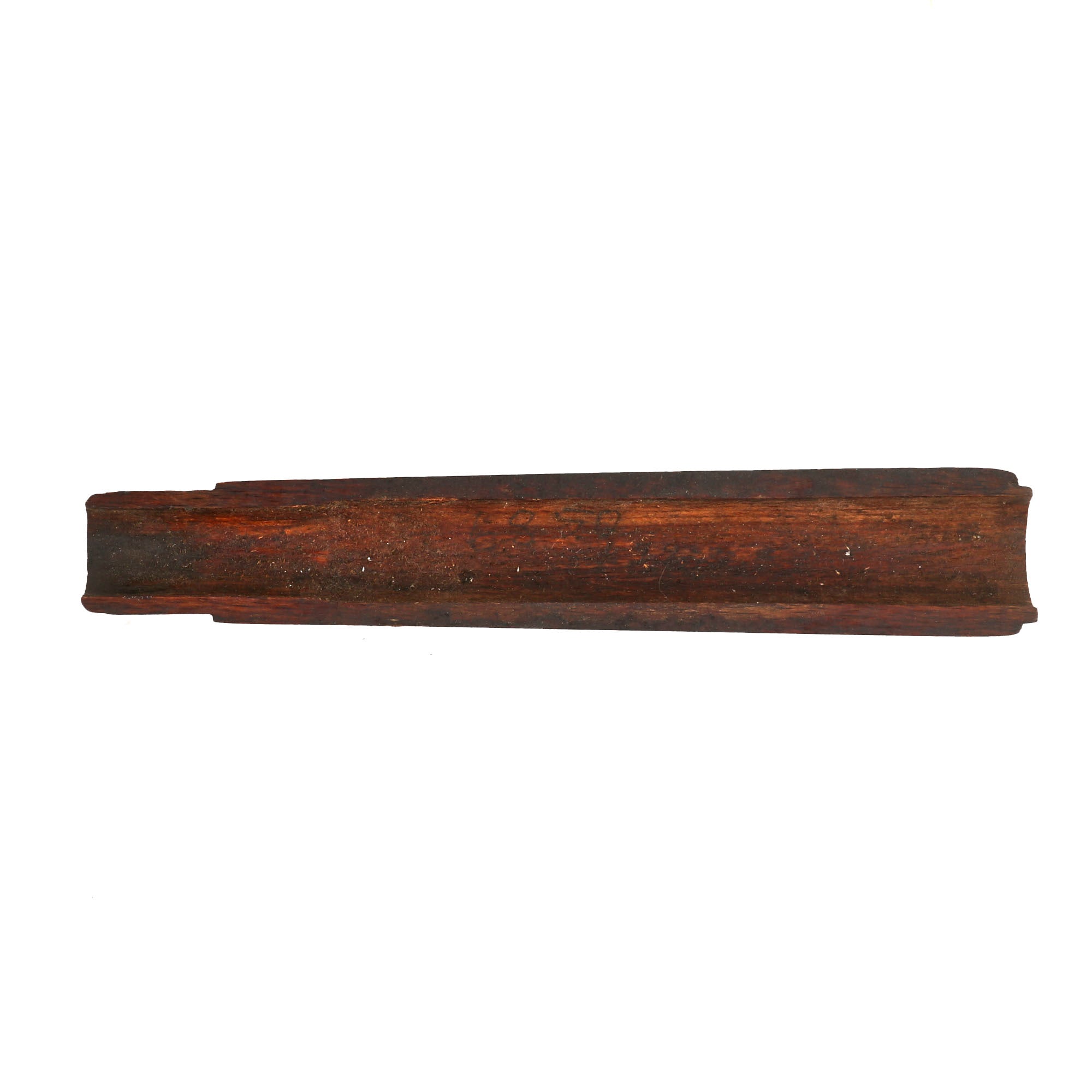 The lower stock of this set was "duffle cut" when it was brought back home from Germany, which was then later repaired. The original markings on the wood are definitely worn, however we can still see a faint Waffenamt Eagle / WaA135 on the right side of the stock, seen on other k98K stocks from the period. This was an inspector code associated with Mauserwerke in Oberndorf am Neckar, the creator of the design.