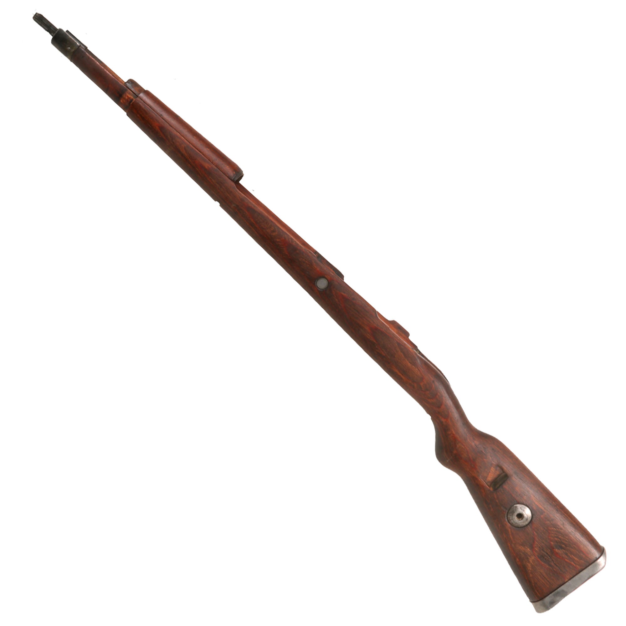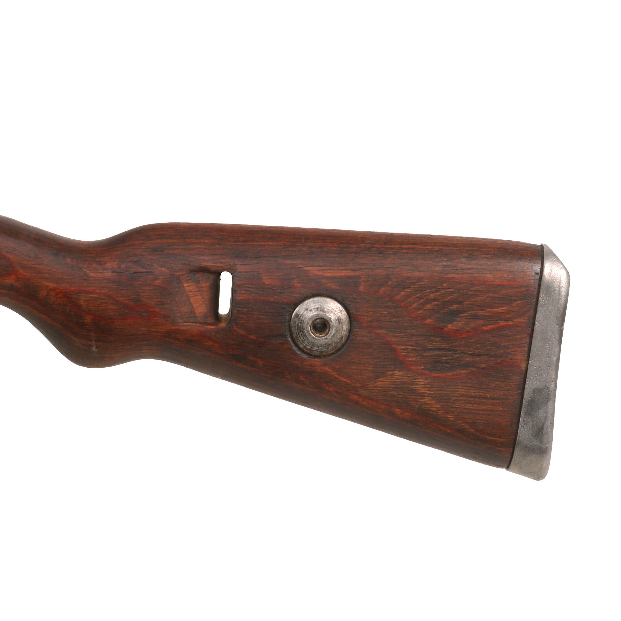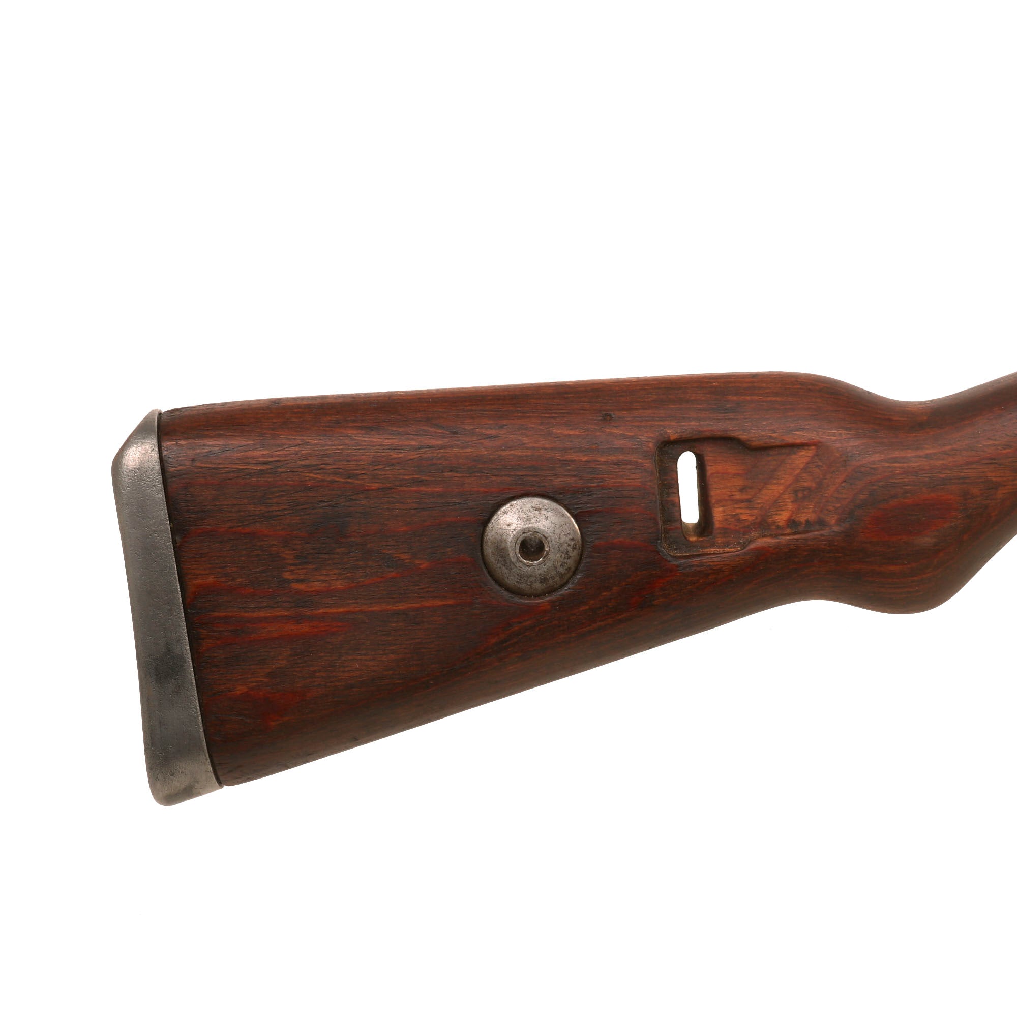 Original Item: Only One Available. In 1935 the German military introduced the K98k bolt action rifle or Karabiner 98 Kurz, as a replacement for the older GEW98 or Gewehr 98. The first examples had more in common with their predecessor than later examples, such as the rear sling attachment, which started out the same as the GEW98 fitting, but then was switched to a slot in the butt stock. The very first examples also had a cup butt plate, which had a storage compartment inside, which was replaced with a flat type.