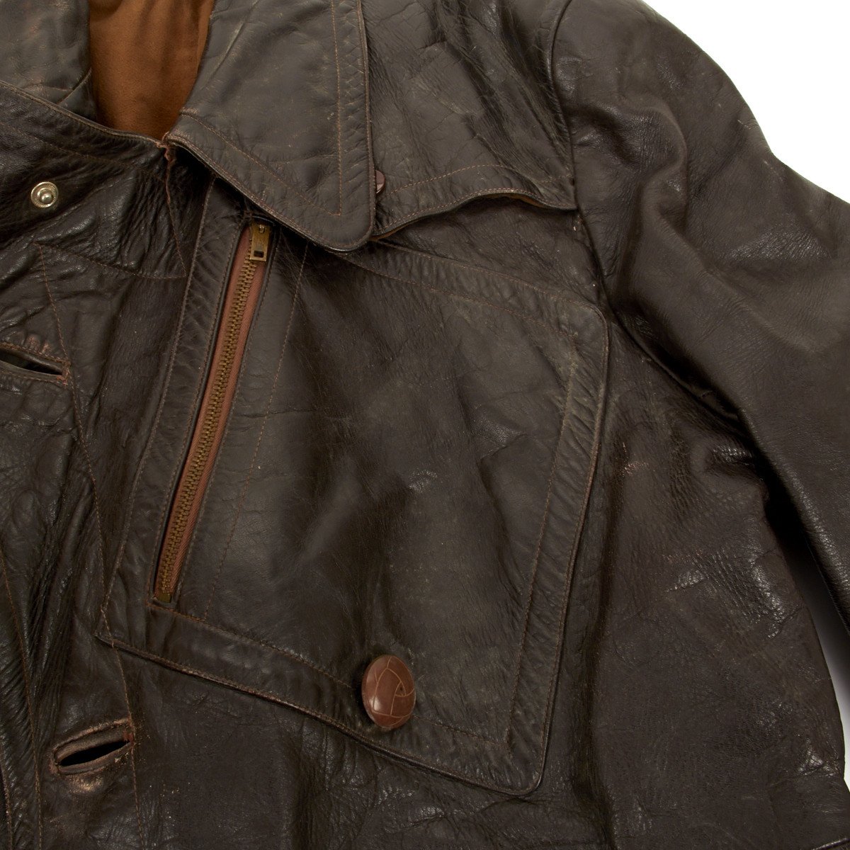 Original Item: Only one available. Genuine private purchase pre-war circa 1936 this is a wonderful very good condition supple chocolate brown leather Kradmantel motorcycle greatcoat.