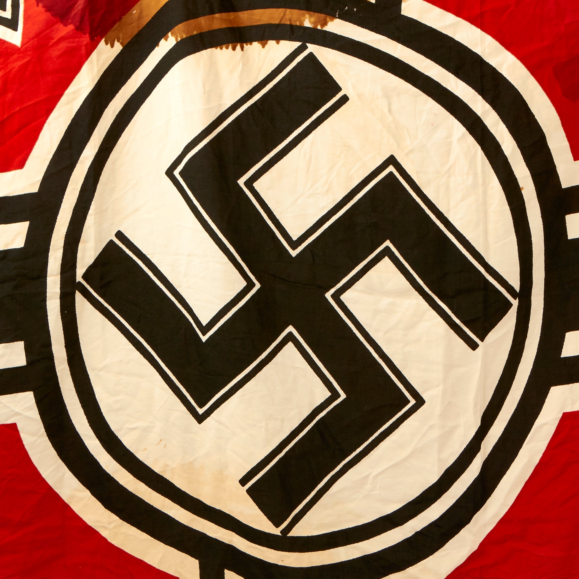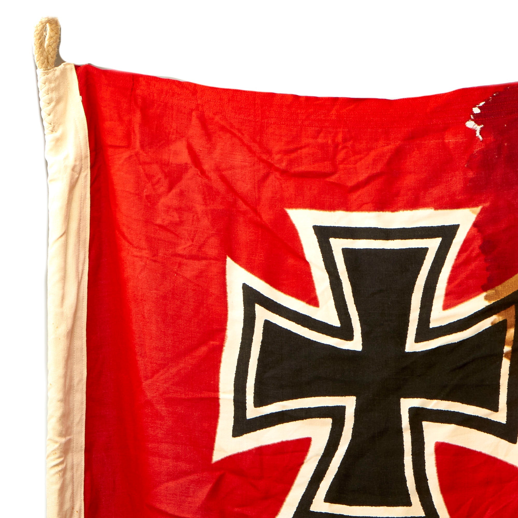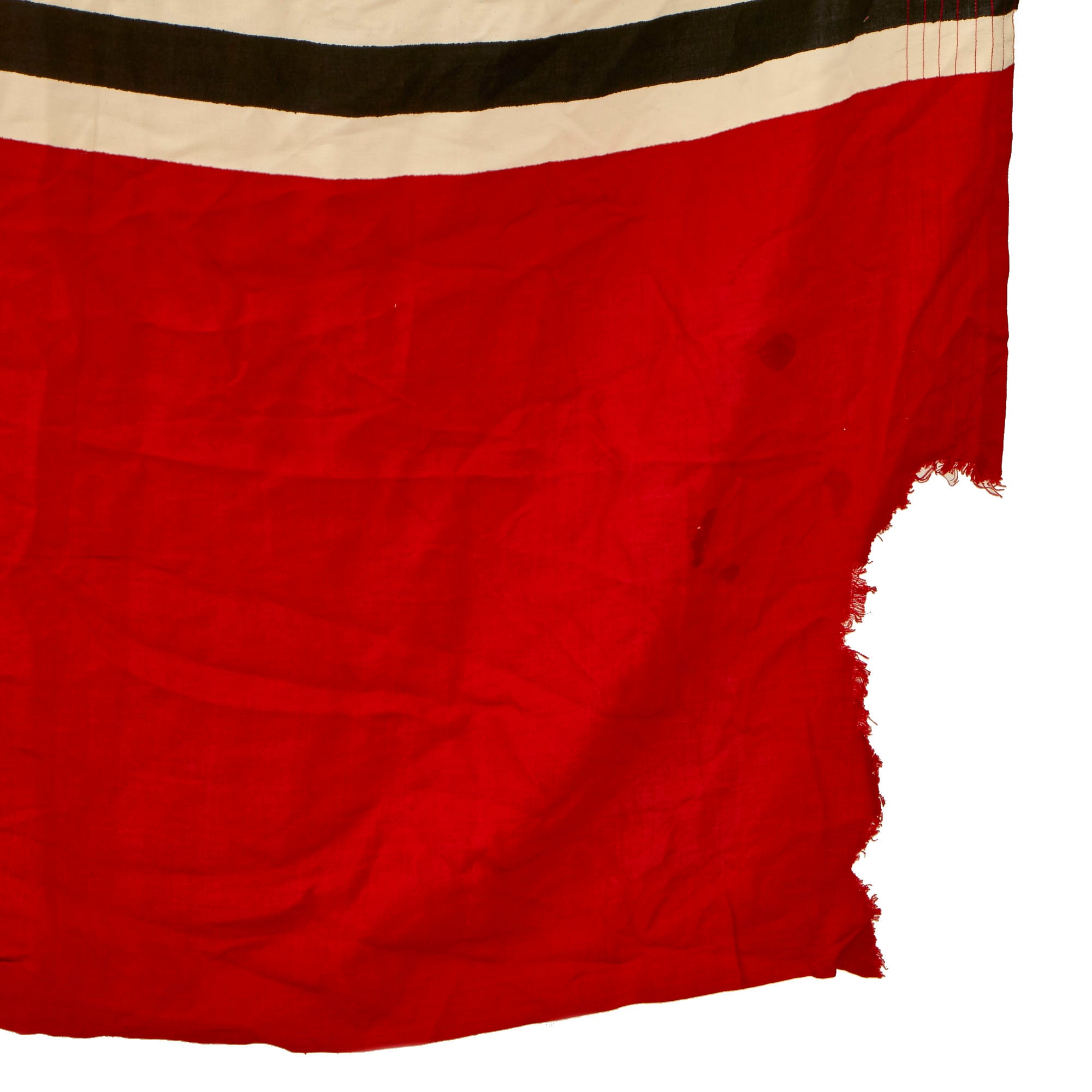 Original Item: Only One Available. The Reichskriegsflagge (Imperial War Flag) was the official name of the war flag and war ensign used by the German armed forces from 1933 to 1945. Recently acquired from a private collector, this is without a doubt the most impressive battle flag design of the German WWII era, in a nice medium large size. it measures 59.1" x 98.4", or 150cm x 250cm. This larger size indicates it would have been used on a sizable ship.