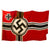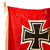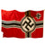 The proportions of the flag are 3:5. Fusing elements of the NSDAP German Flag (swas and red background) with that of the old Imperial Reich War Flag (four arms emanating from off-center circle and Iron Cross in the canton), these flags were uniformly produced as a printed design on bunting.