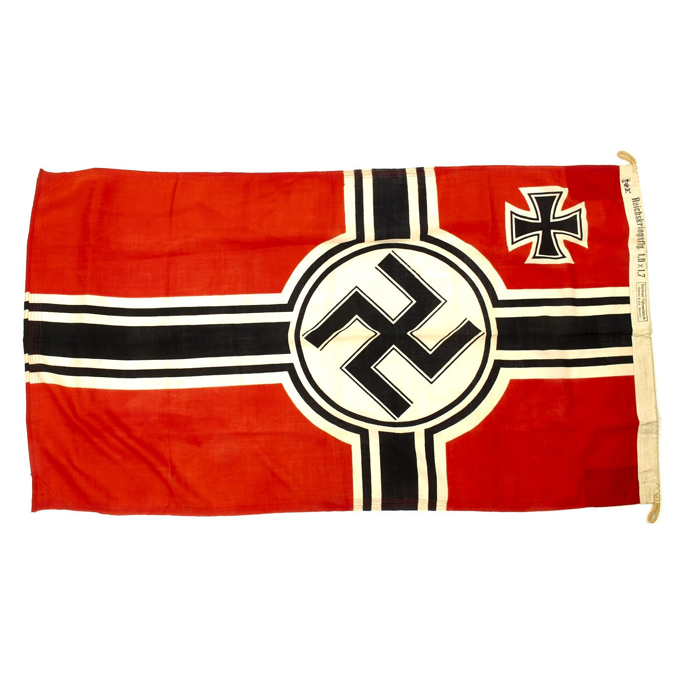Original Item: Only One Available. The Reichskriegsflagge (Imperial War Flag) was the official name of the war flag and war ensign used by the German armed forces from 1933 to 1945. Recently acquired from a private collector, this is without a doubt the most impressive battle flag design of the German WWII era, even with a smaller version such as this. it measures 66.9" x 39.4", or 170cm x 100cm.