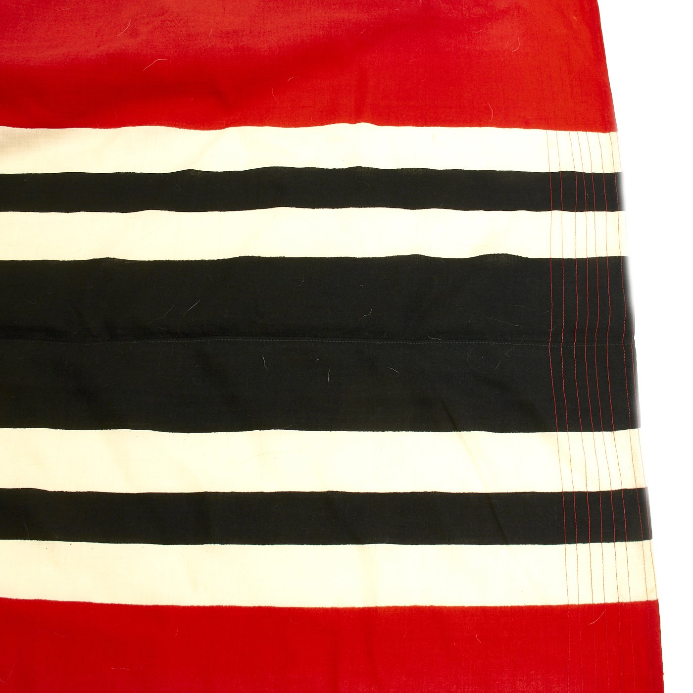 This size flag is an "8", as noted in the Kriegsmarine Flaggenbuch (Navy Flag Book), which would be for a ship 1500 to 10K tons, such as a destroyer or light cruiser. Due to the size, we were unfortunately not able to get an accurate full size shot with our photo facilities.