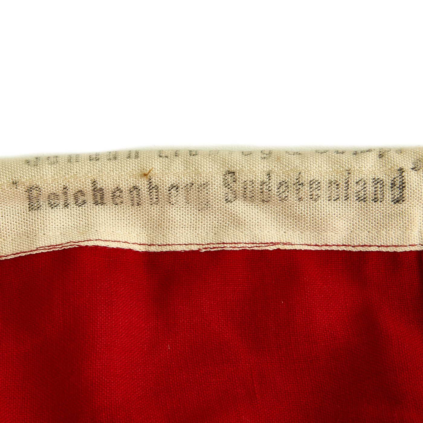 The proportions of the flag are 3:5. Fusing elements of the NSDAP German Flag (swas and red background) with that of the old Imperial Reich War Flag (four arms emanating from off-center circle and Iron Cross in the canton), these flags were uniformly produced as a printed design on bunting.