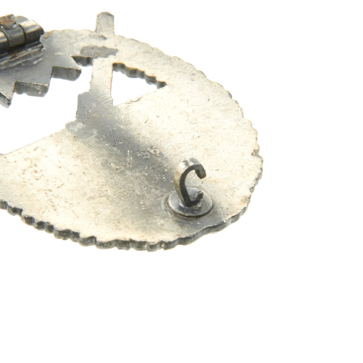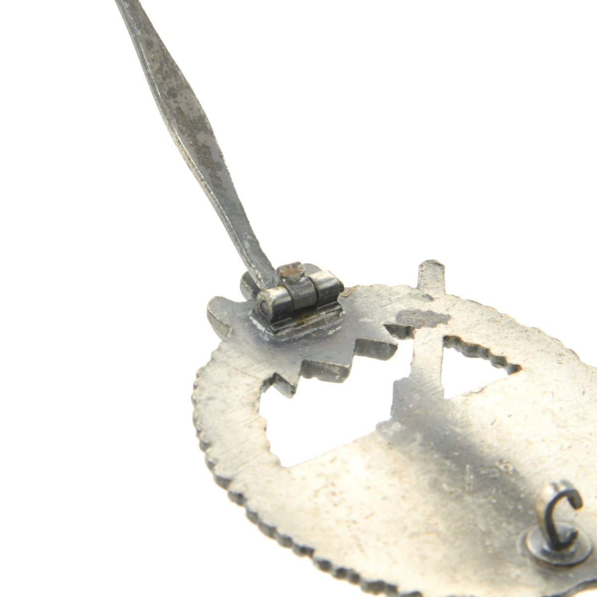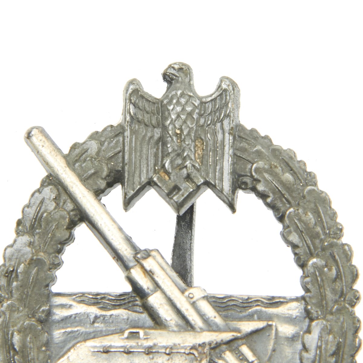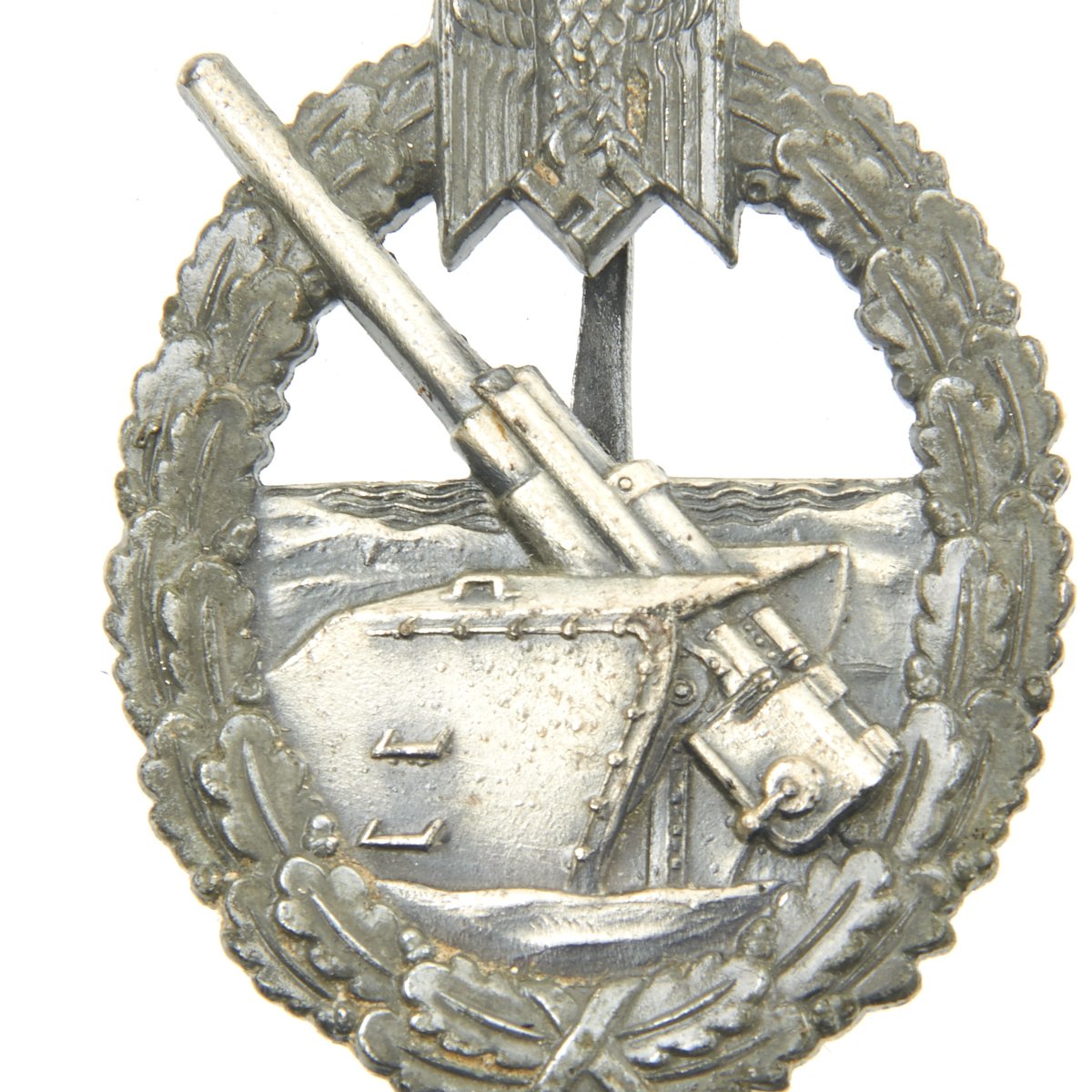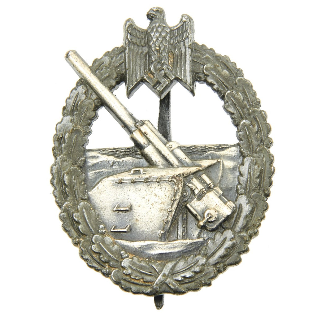 Original Item: Only One Available. The Naval Artillery War Badge or War Badge for the Coastal Artillery (German: Kriegsabzeichen für die Marineartillerie) was a World War II German military decoration awarded to the crews of Kriegsmarine land-based marine artillery and anti-aircraft units. It was presented to personnel of coastal defense (Küstenartillerie) units, and anti-aircraft units. The award was instituted on 24 June 1941 by Grand Admiral Erich Raeder to reward the actions of both individuals and crew members. It was also awarded to those killed in action in said units.