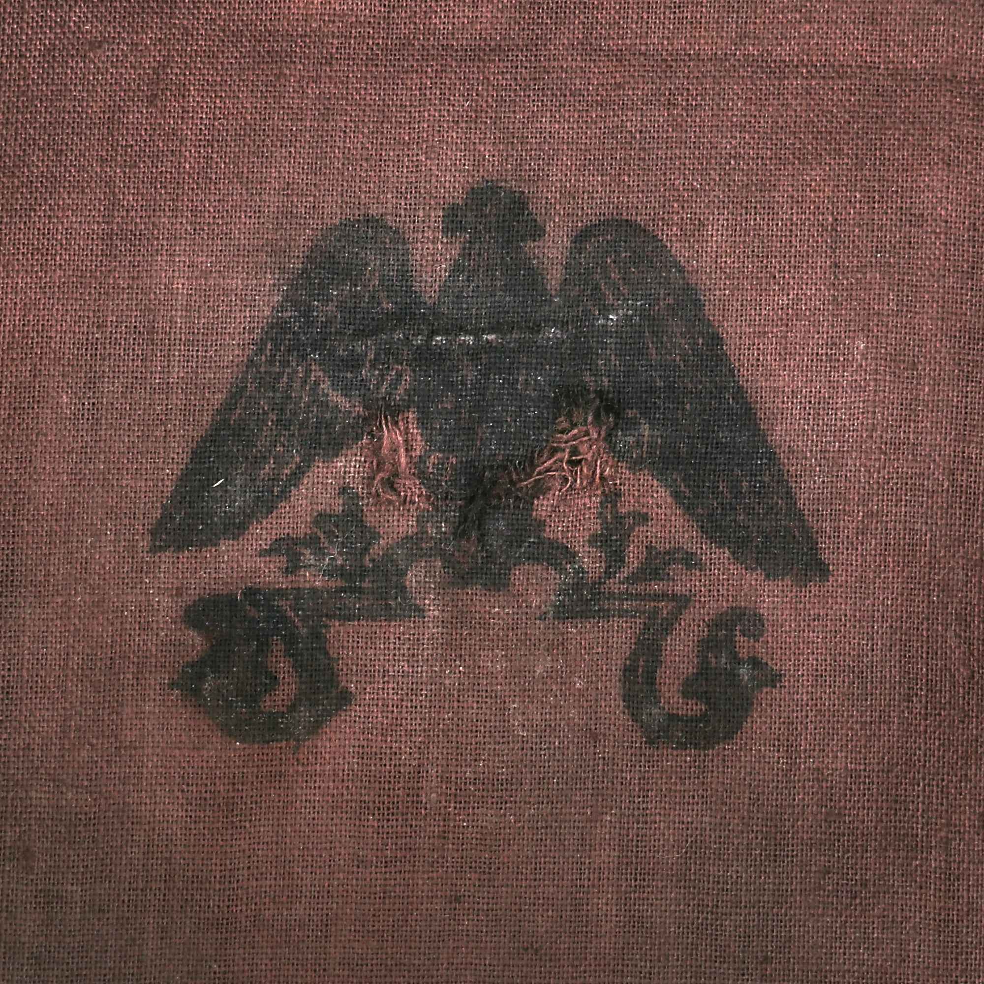 The cap is lined with brown rayon, which shows a good amount of staining from use. We do not see any evidence that it ever had any type of sweat shield on the inner crown, and there are no maker markings we can see, outside of a Eagle logo that may have had maker information under it at one point. The sweatband is made from oilcloth, and is now in delicate condition. It is cracking a bit, and there are numerous smaller tears and wrinkles in the material. The cap is roughly a Size 6¾.