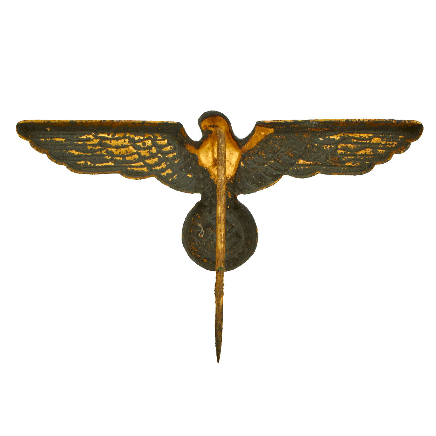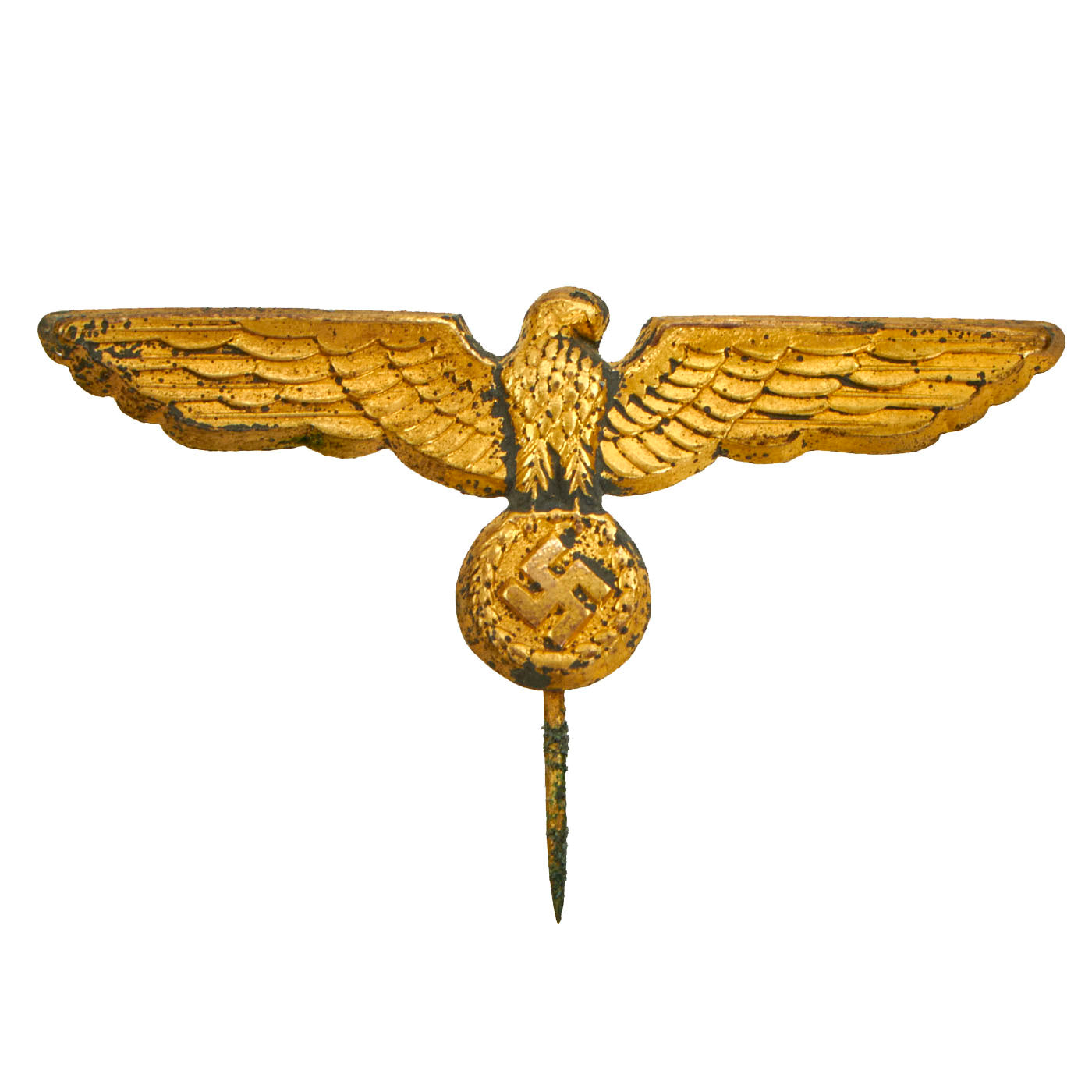 - Kriegsmarine Officer’s Cap Pin Insignia: It appears to have once been painted a field gray but is in lovely condition with a straight pin.