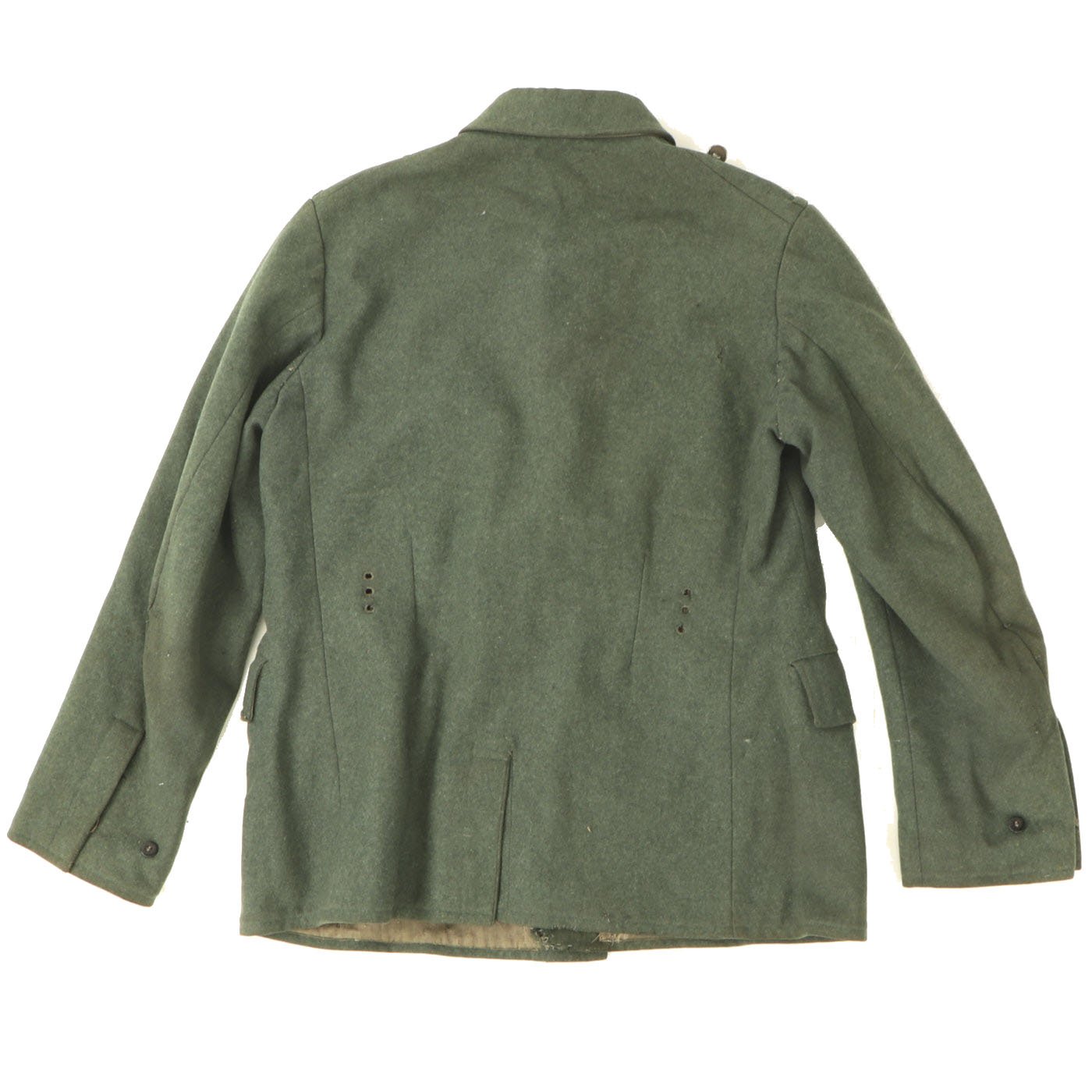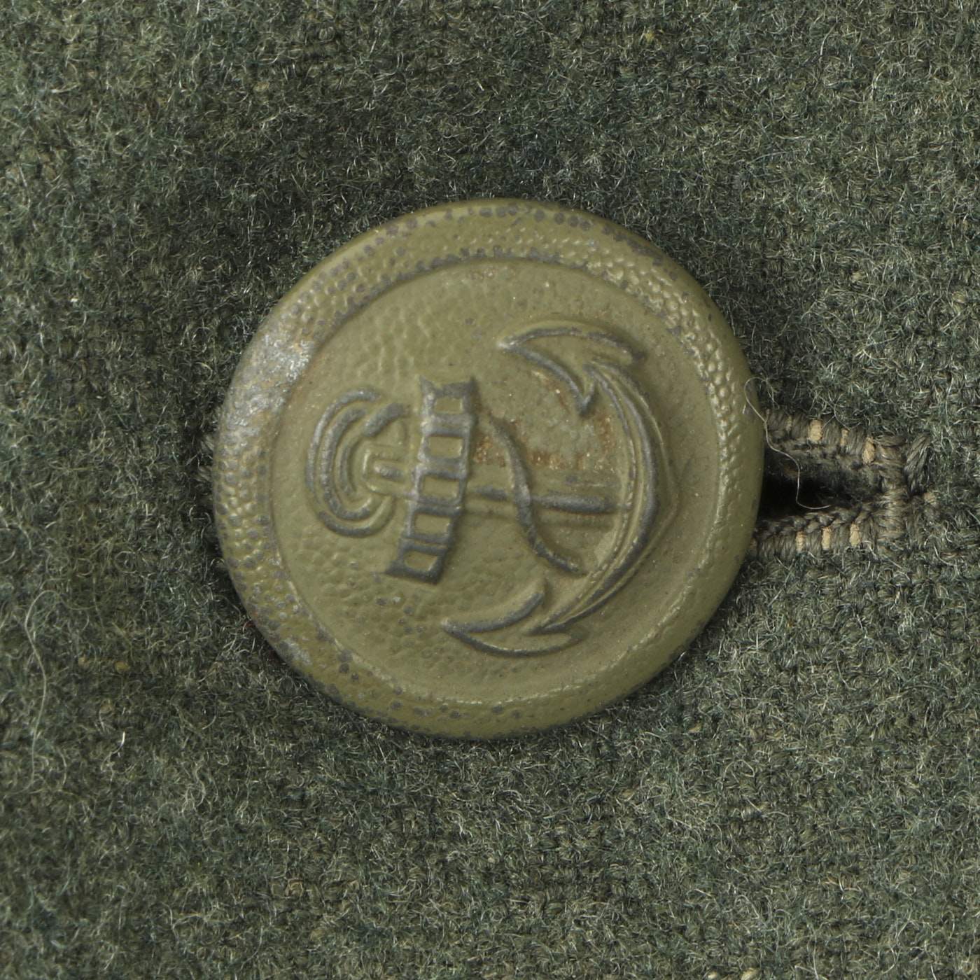 Original Item: Only One Available. This is an nice war used example of a WW2 German Army Kriegsmarine Küstenartillerie (Coastal Artillery) Enlisted (Seaman) tunic. This tunic is nearly untouched. The tunic itself is made of a medium weight field gray/green wool. The front closes with five green painted Kriegsmarine Navy Anchor painted buttons. The attractive Naval breast eagle stitched to the chest in a fashion typical of wartime German tailor work. The collar tabs are correct for the rank and machine applied.