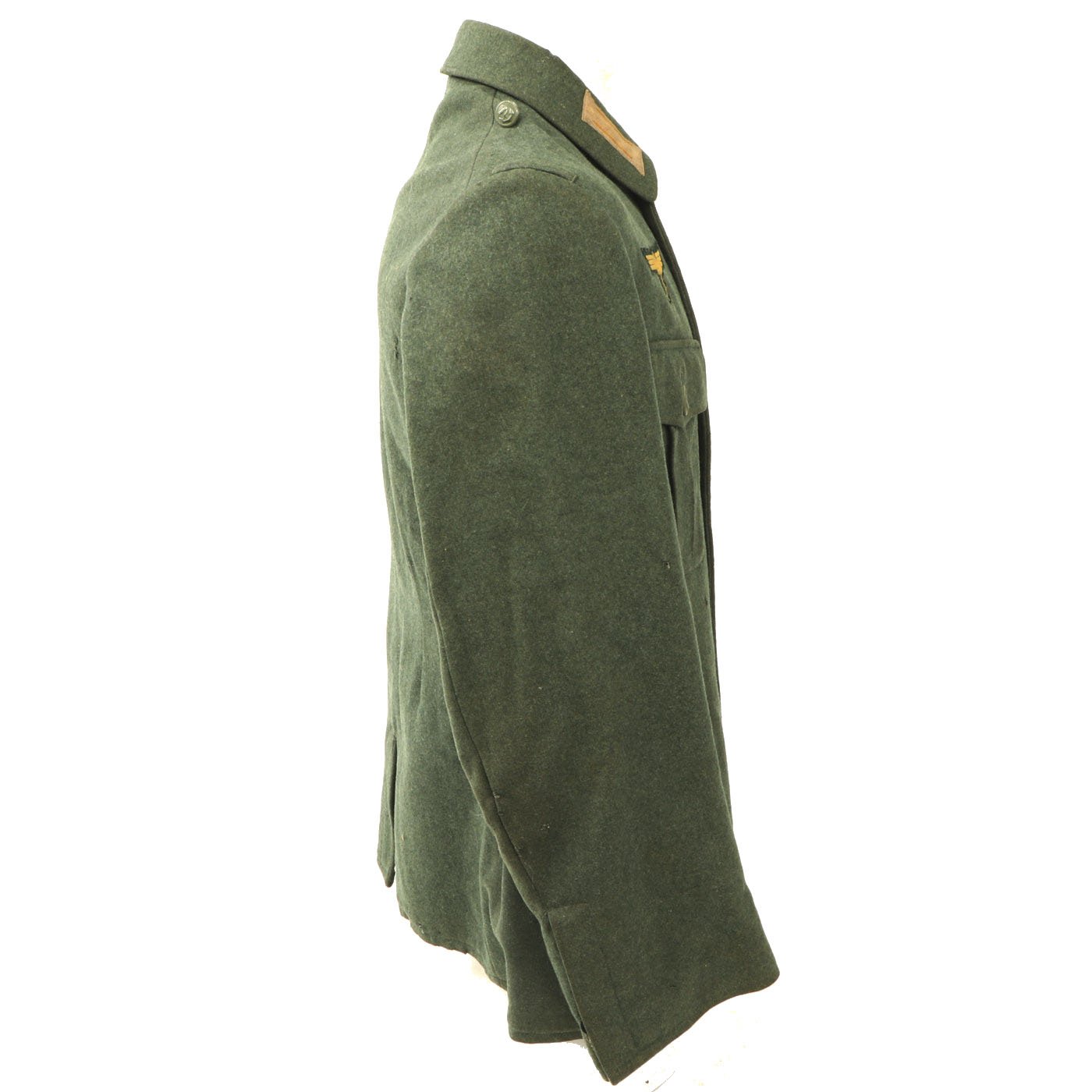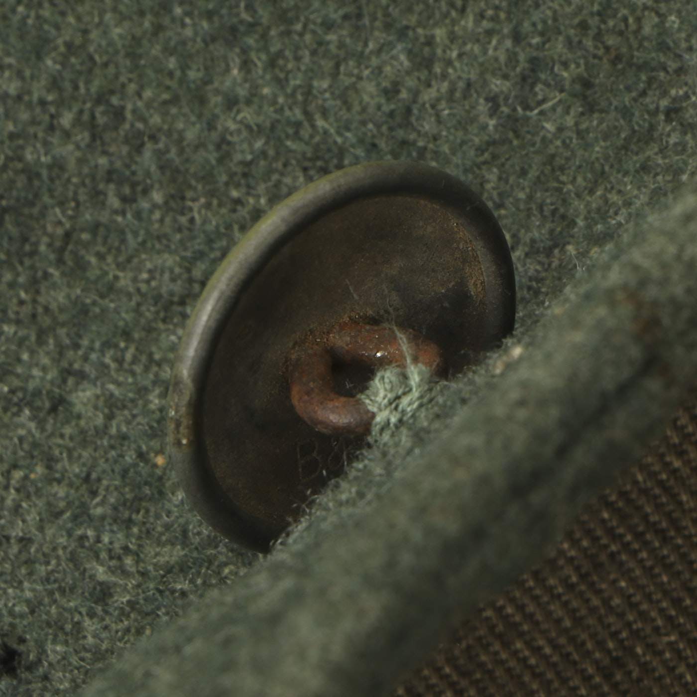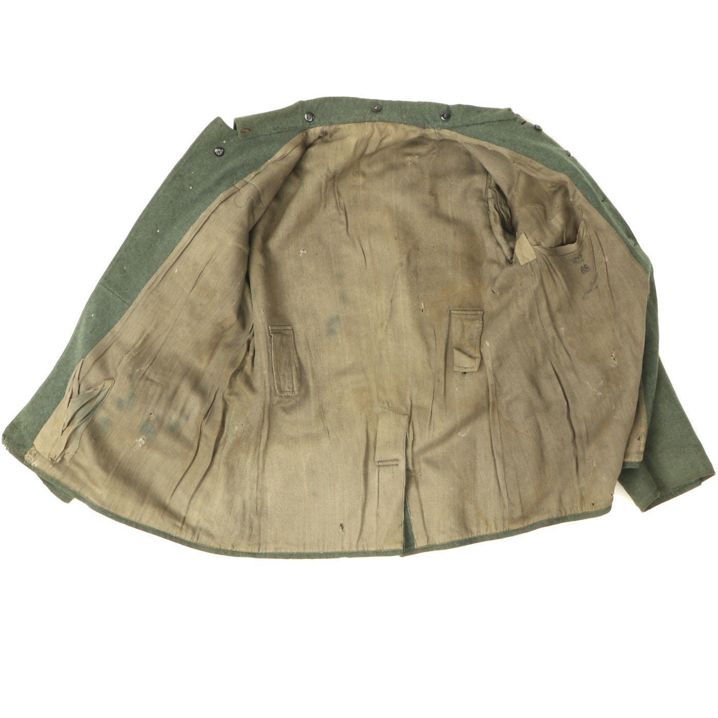 The inside of this Navy tunic is fully lined with cotton, as is typical. The interior of the M36 style dark green badge cloth collar has button for affixing a collar bind which is also included. There are ink maker stamps on the interior.
