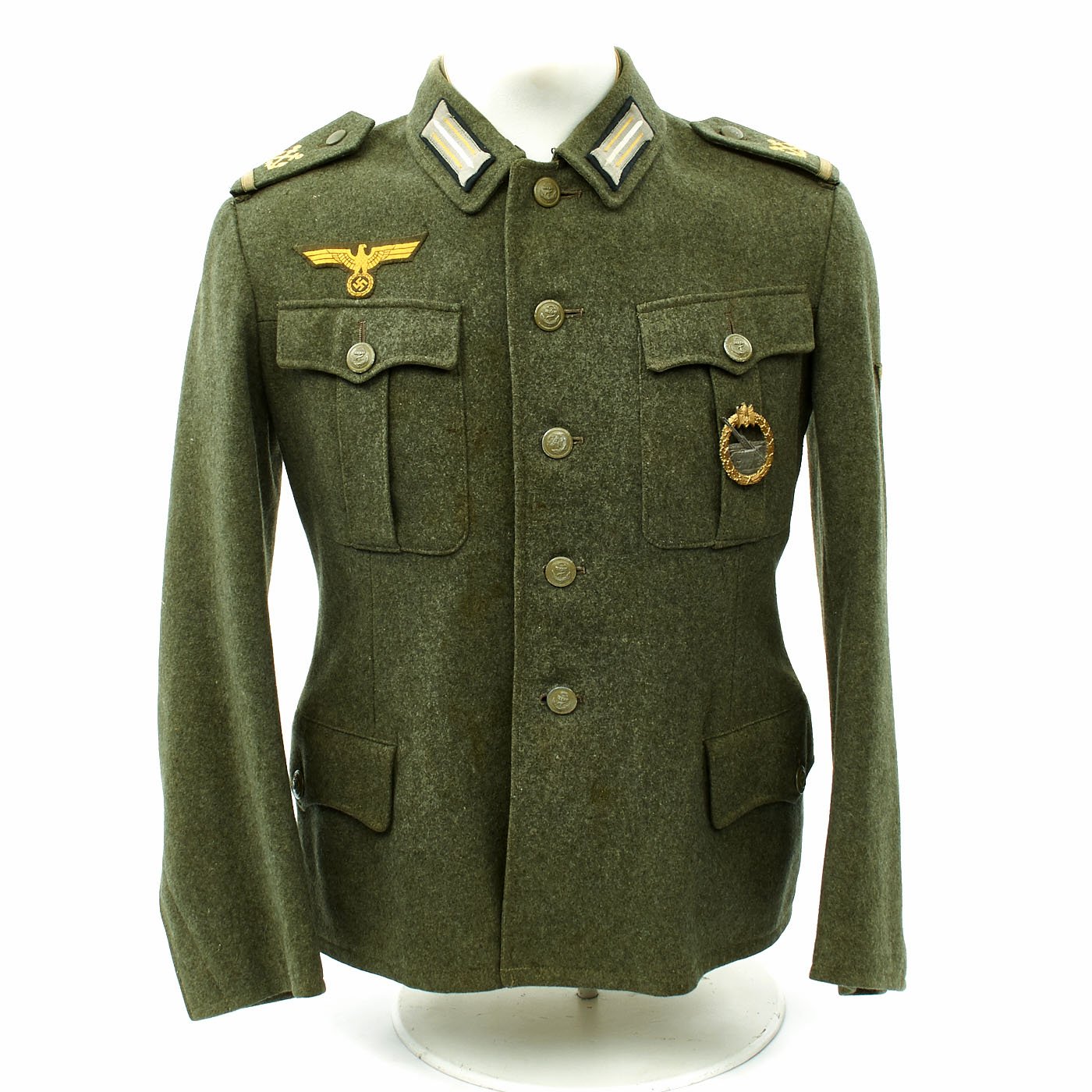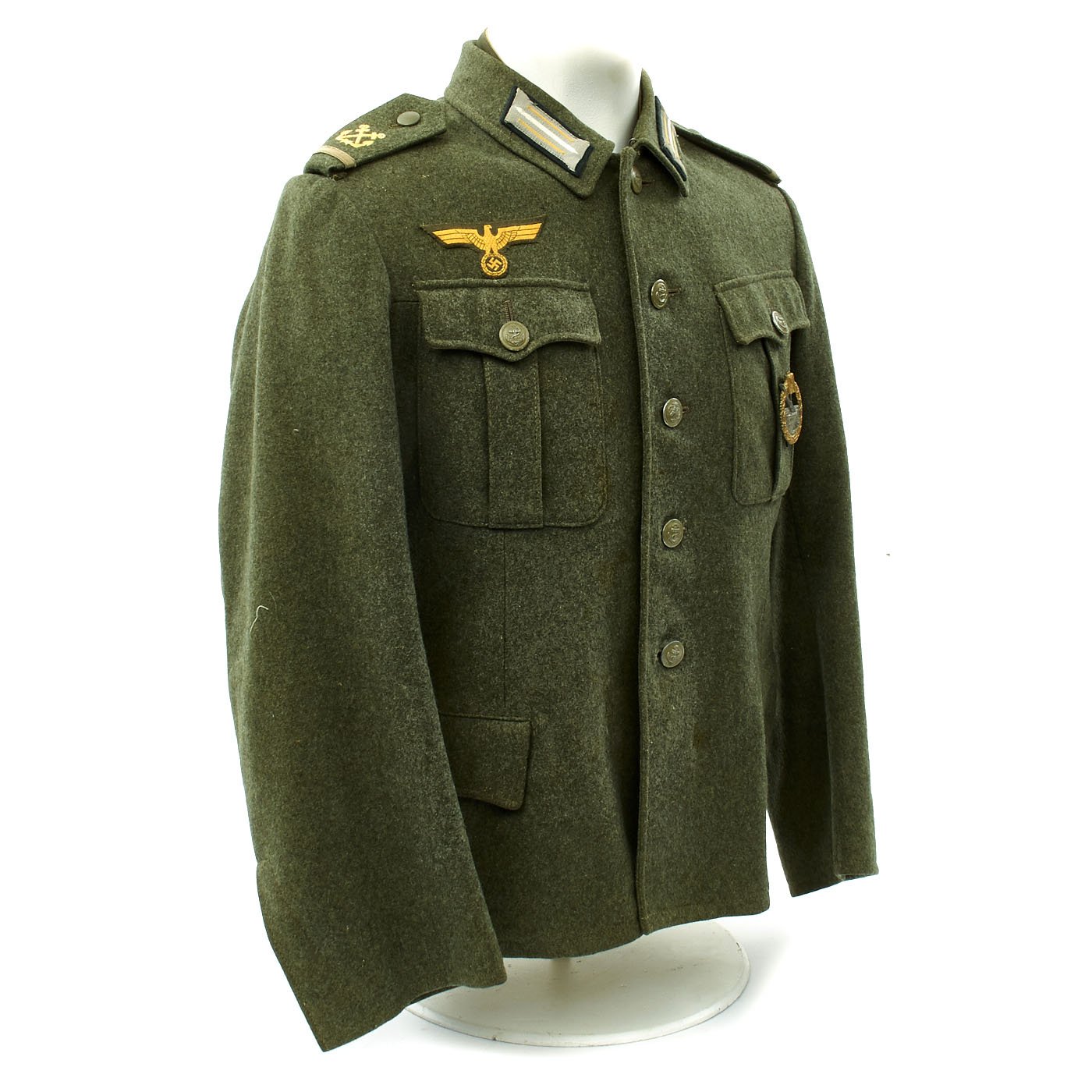 Overall a fantastic condition Coastal Artillery Kriegs Marine Uniform tunic with an original badge that just by itself costs well over $400.