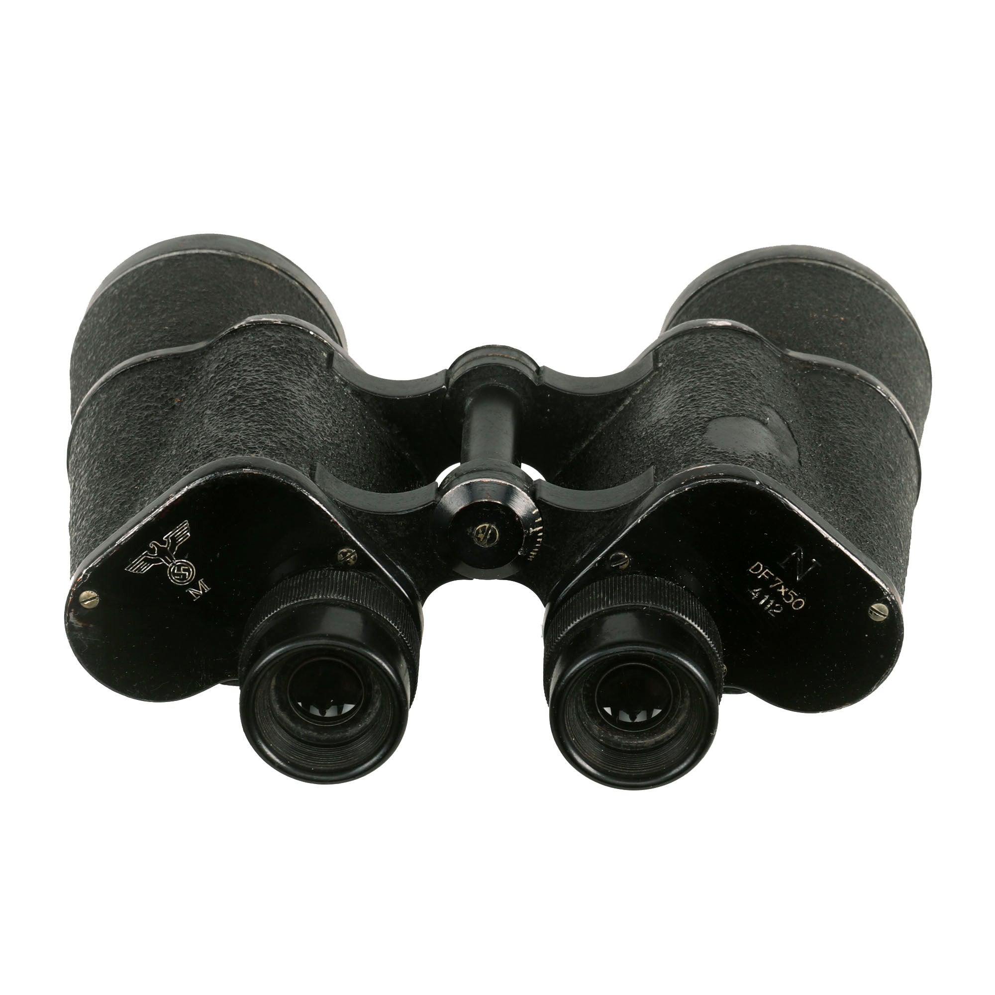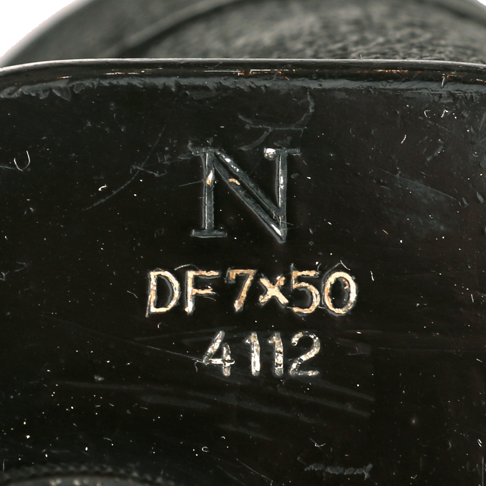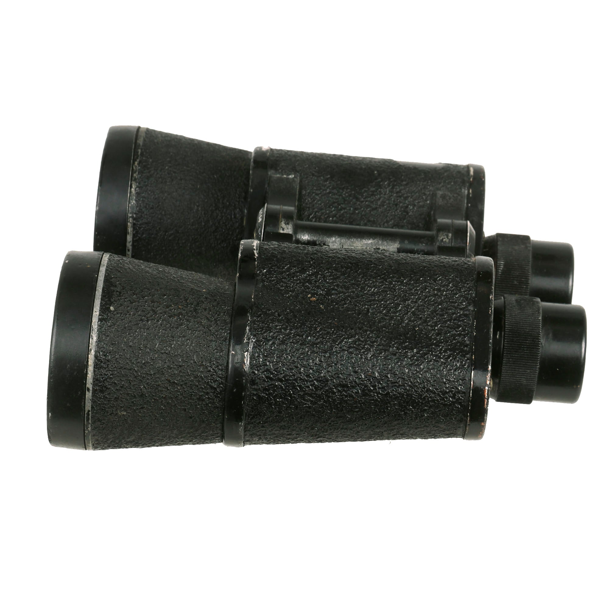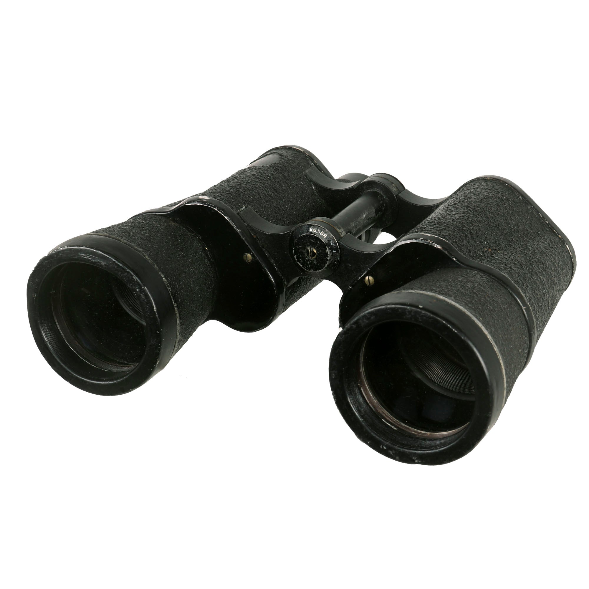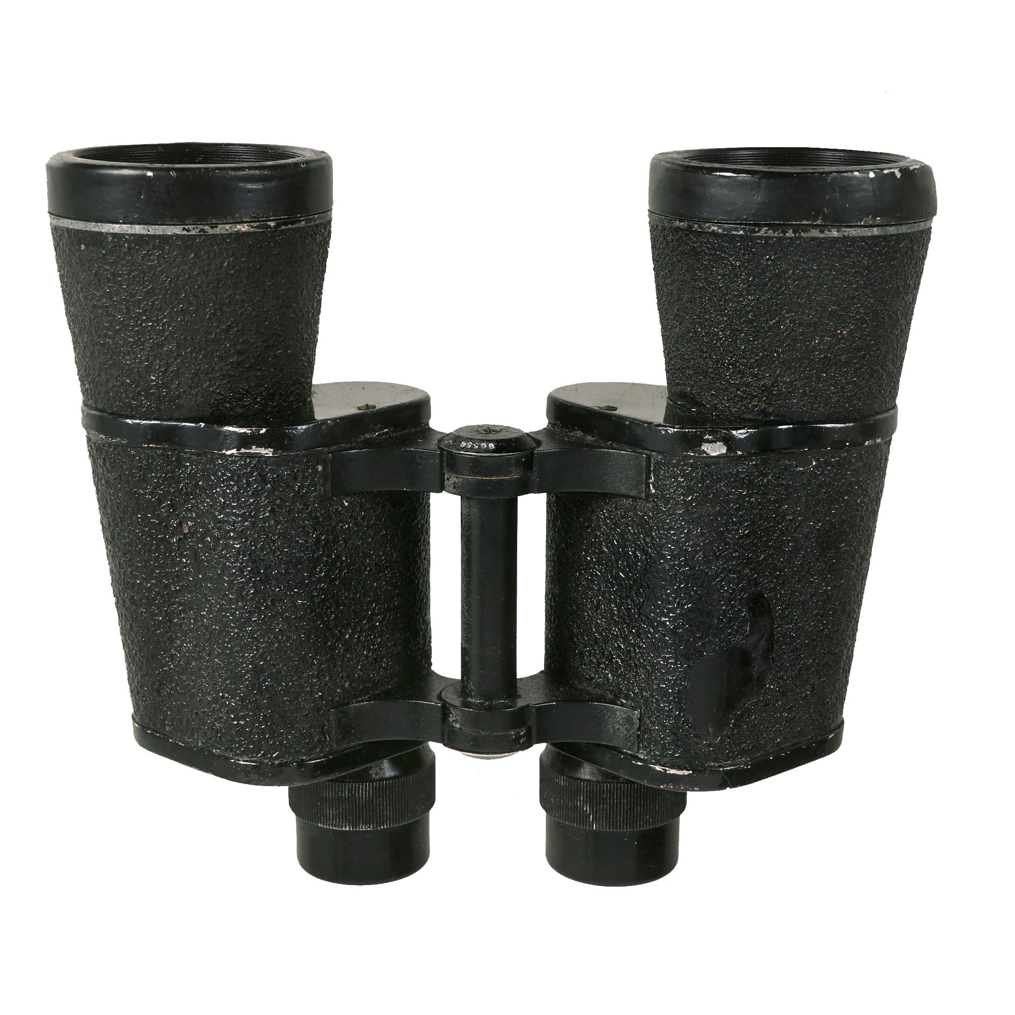 Original Item: Only One Available. This is a very nice set of German WWII binoculars known by the German Kriegsmarine as Doppelfernrohr 7×50 (Double Telescope 7×50), complete with an original case. They are very similar to the Dienstglas 7x50 (service glass 7x50) usually seen, and as far as we can tell they are more or less identical. We have seen Kriegsmarine marked examples using both designations, and we have not been able to find out what the real difference is.