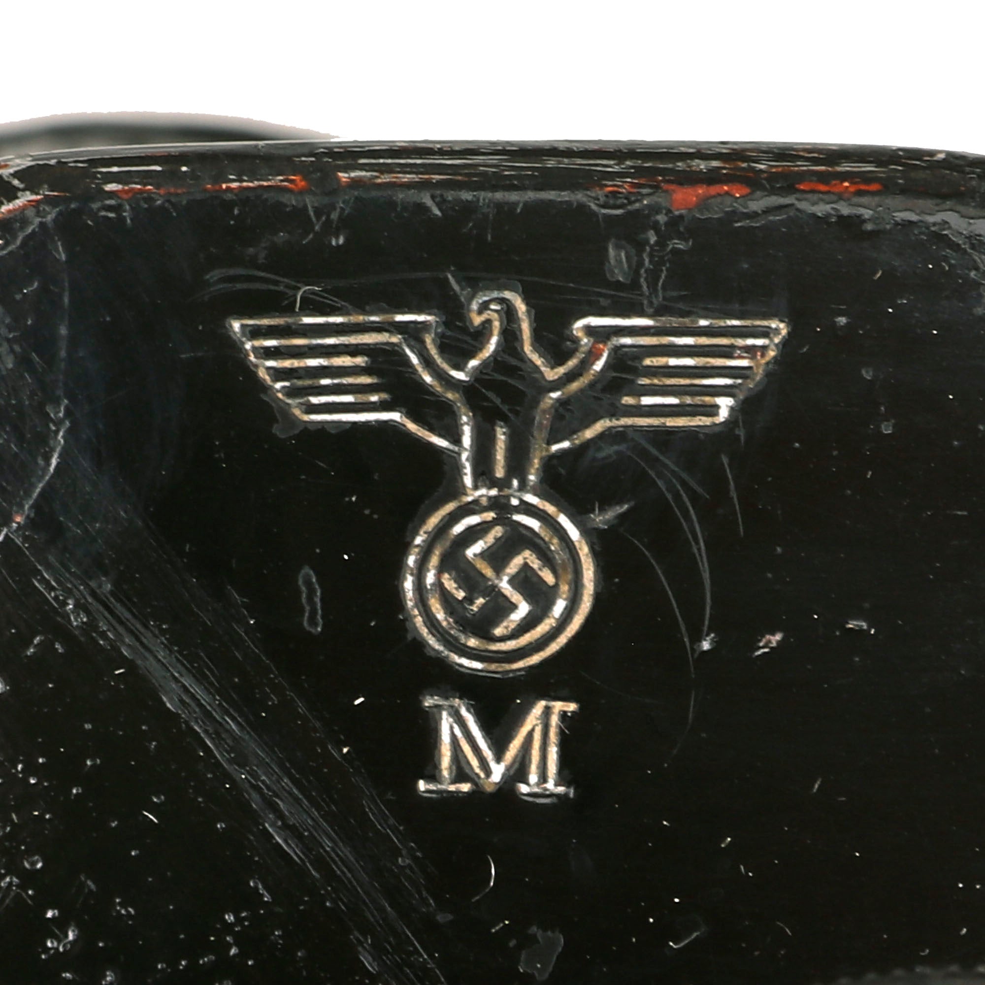 They are also marked with serial number 86556 on the objective end of the hinge. Research shows that the "N" stands for Nordsee (North Sea), and we have seen other examples with this same marking. There is no maker marking or code, which identifies the maker as "Sybs", who was also the only maker for the KM that made these using uncoated optics, which this set has. These were only issued for Kriegsmarine use and have the Marinewaffenamt Eagle / M proof mark on the rear of the left barrel.