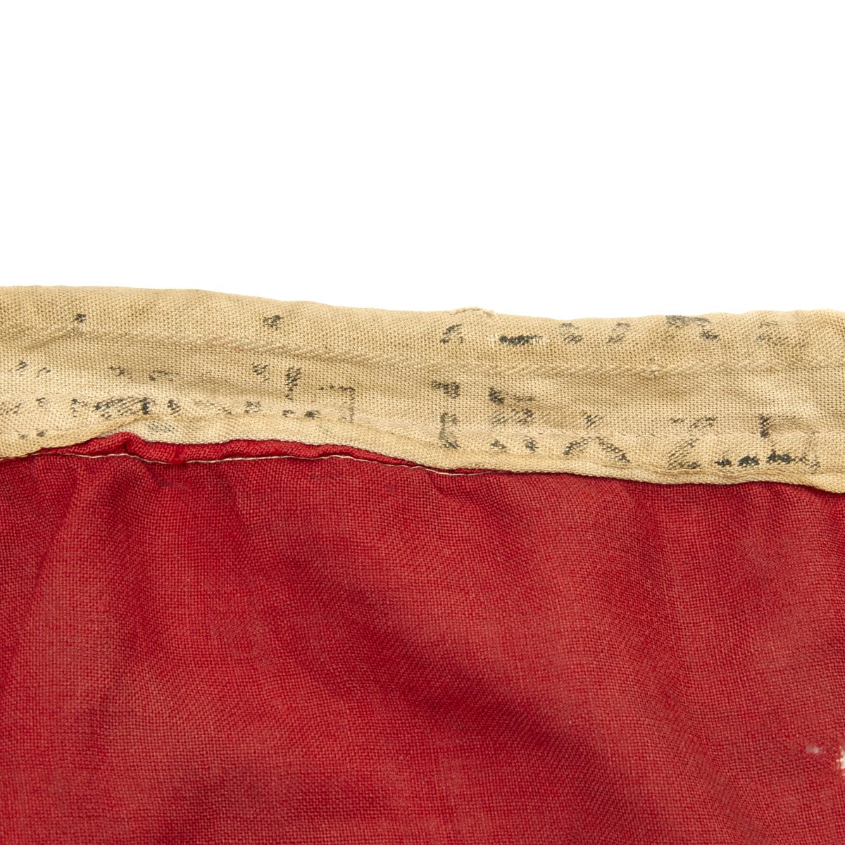 This Naval battle flag is totally original and is in very good condition, with to fly edge which is typical of flag used aboard ships. Stamped in the upper corner with the Reichsadler over M Kriegsmarine emblem. It is also marker marked and stamped with the size 1.5M x 2.5M.