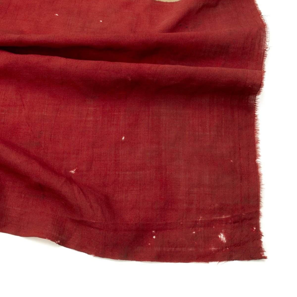 Constructed of wool with a bright red background with a large white central circle displaying a huge swas with the German Naval Cross design also in black to the edges. In the top corner is a black on white Iron cross.
