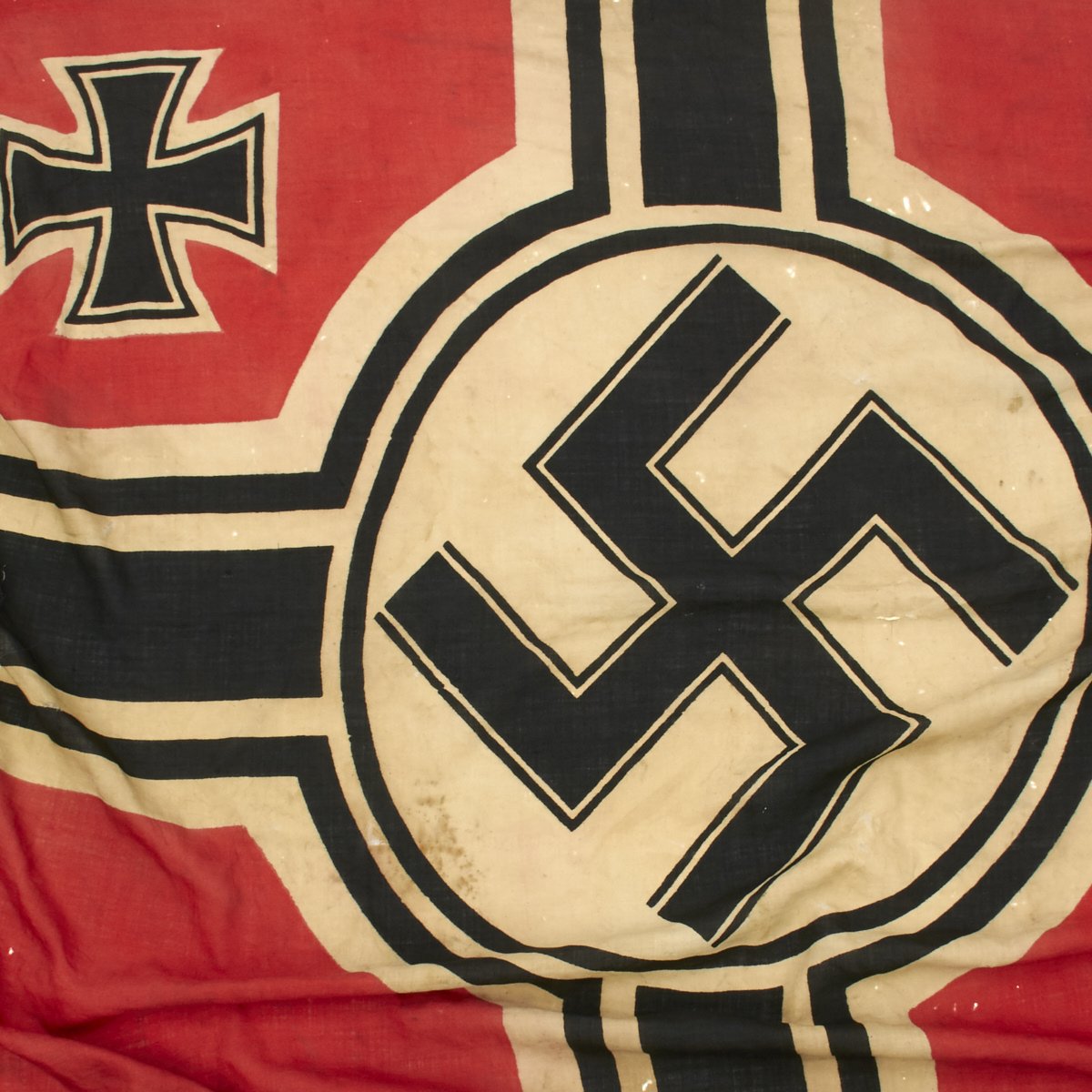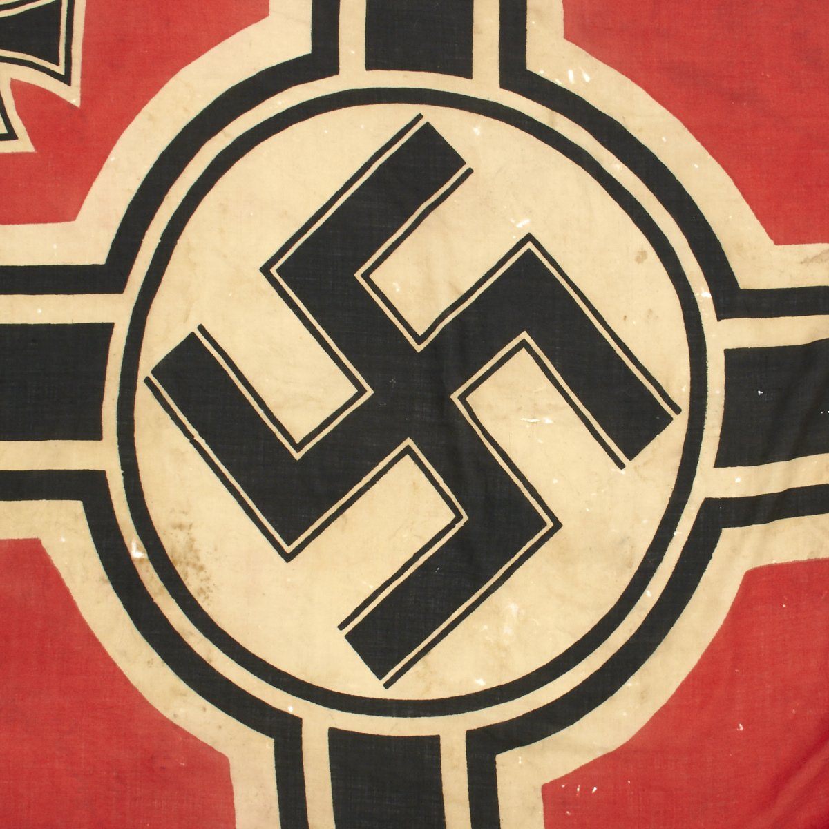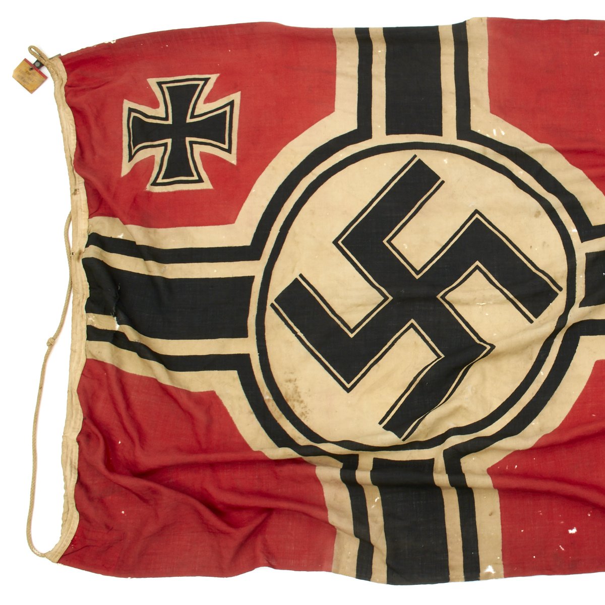 Original Item: One-of-a-kind. This Reichskriegsflagge was captured in on May 5th, 1945 from the German Type 1934A-class destroyer Z10 HANS LODY which was built for NSDAP Germany's Kriegsmarine in the mid-1930s.