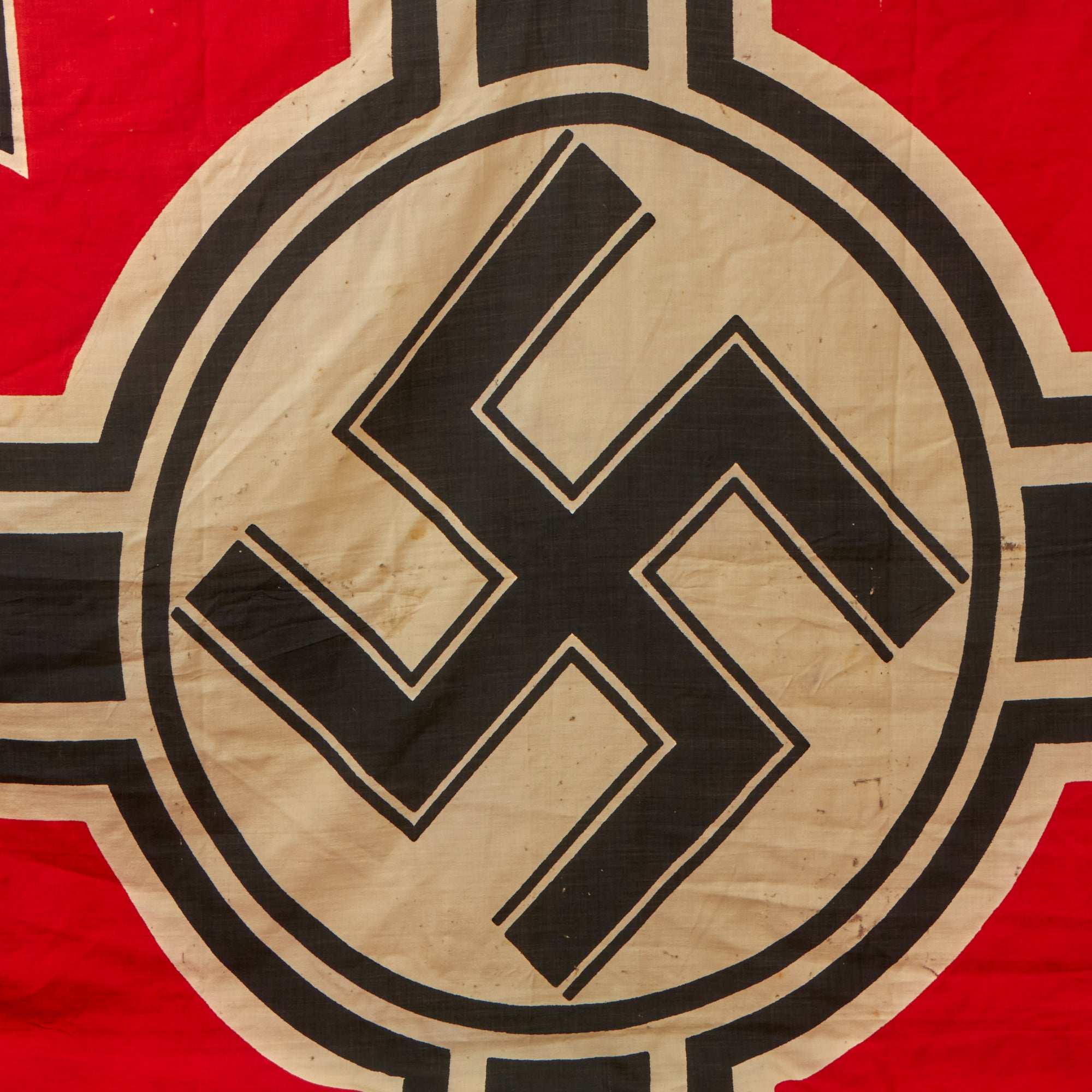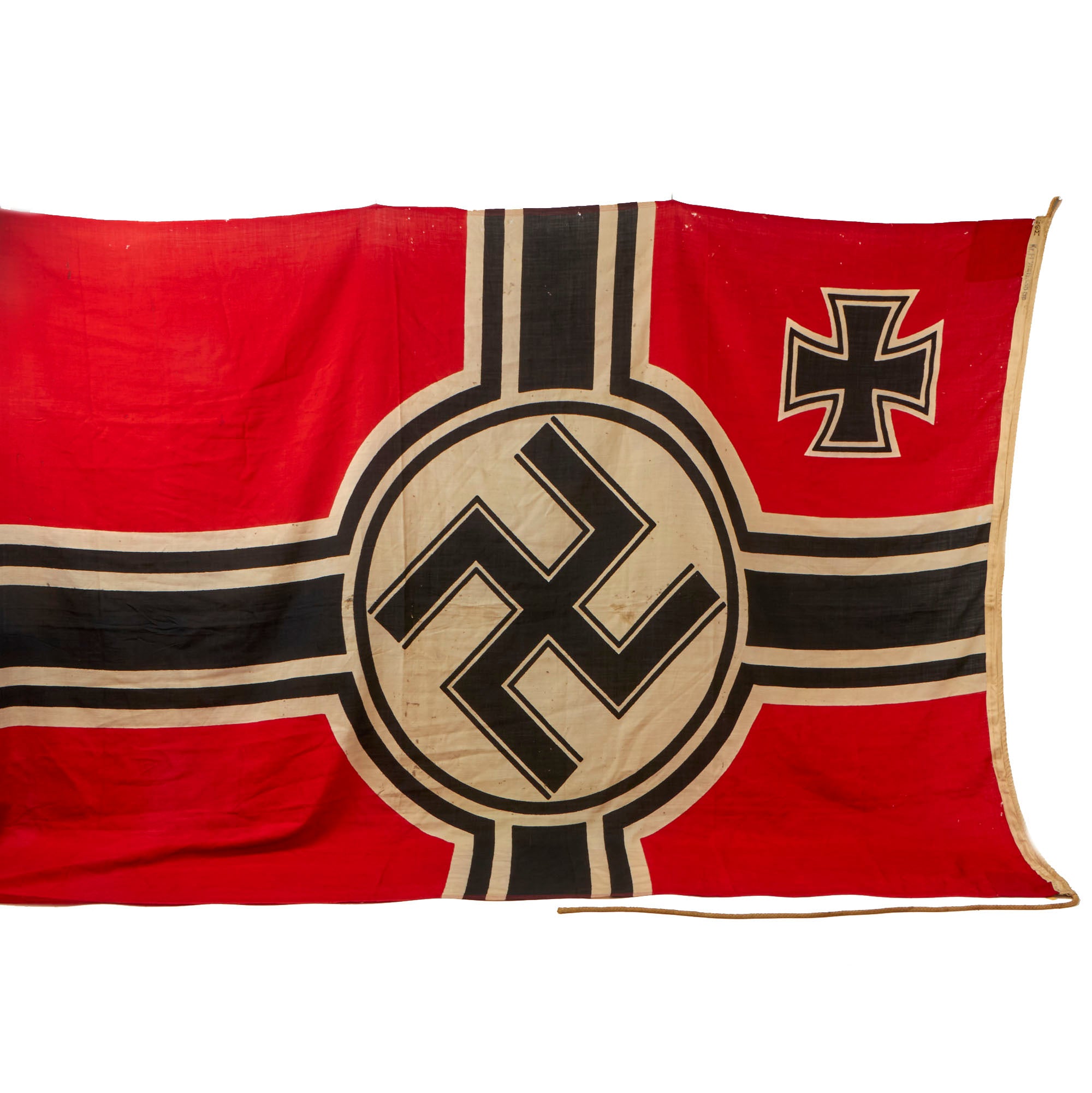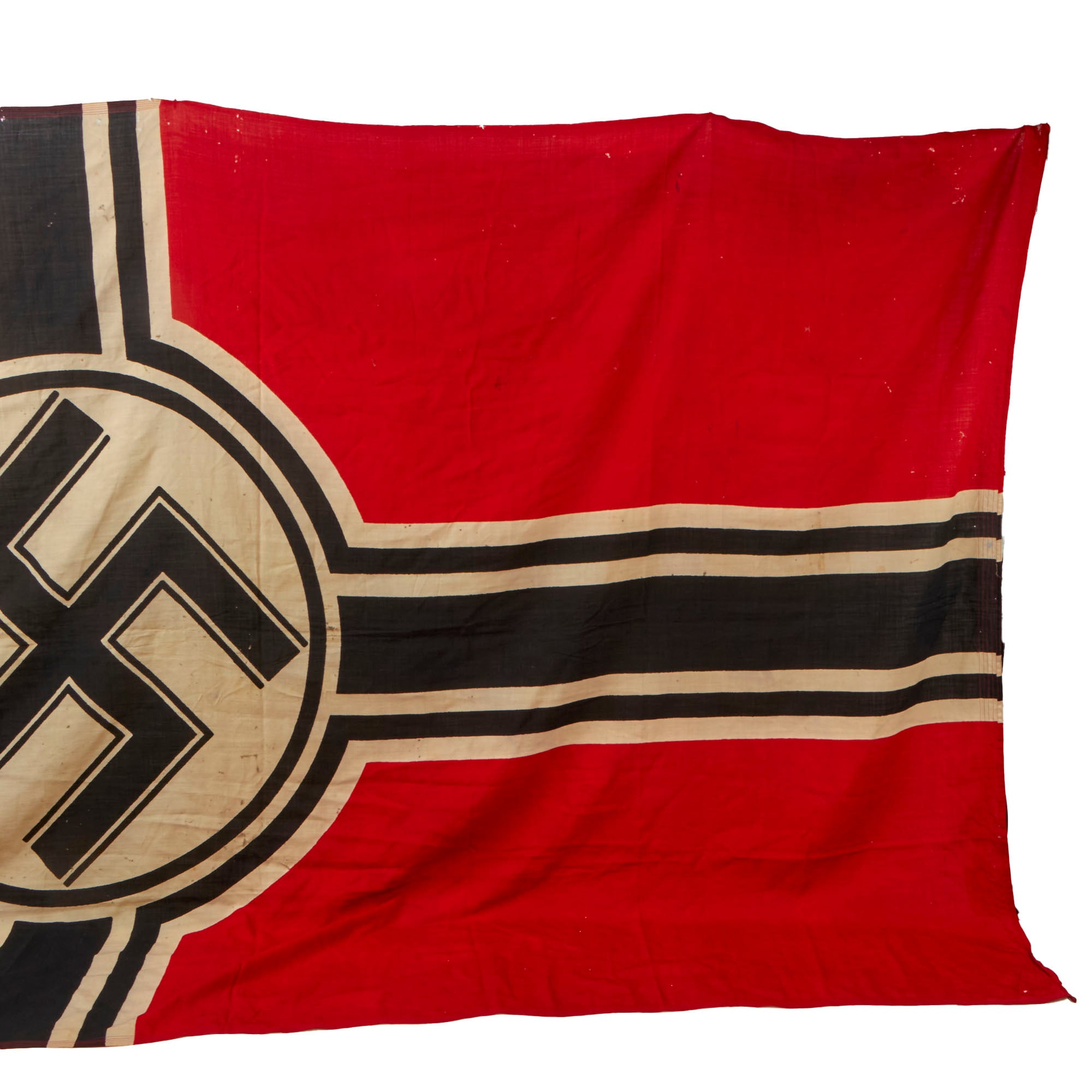 Original Item: Only One Available. The Reichskriegsflagge (Imperial War Flag) was the official name of the war flag and war ensign used by the German armed forces from 1933 to 1945. Recently acquired from a private collector, this is without a doubt the most impressive battle flag design of the German WWII era, in a nice medium large size. It measures 78.7" x 131.9", or 200cm x 335cm. This larger size indicates it would have been used on a sizable ship.