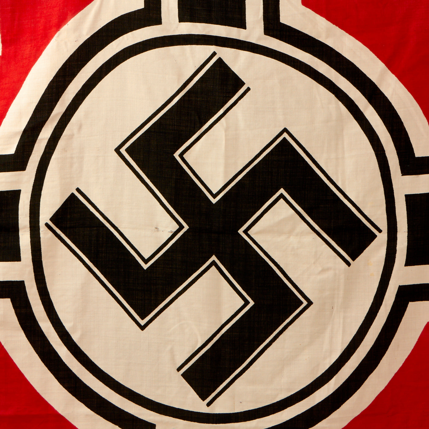 The proportions of the flag are 3:5. Fusing elements of the NSDAP German Flag (swas and red background) with that of the old Imperial Reich War Flag (four arms emanating from off-center circle and Iron Cross in the canton), these flags were uniformly produced as a printed design on bunting.