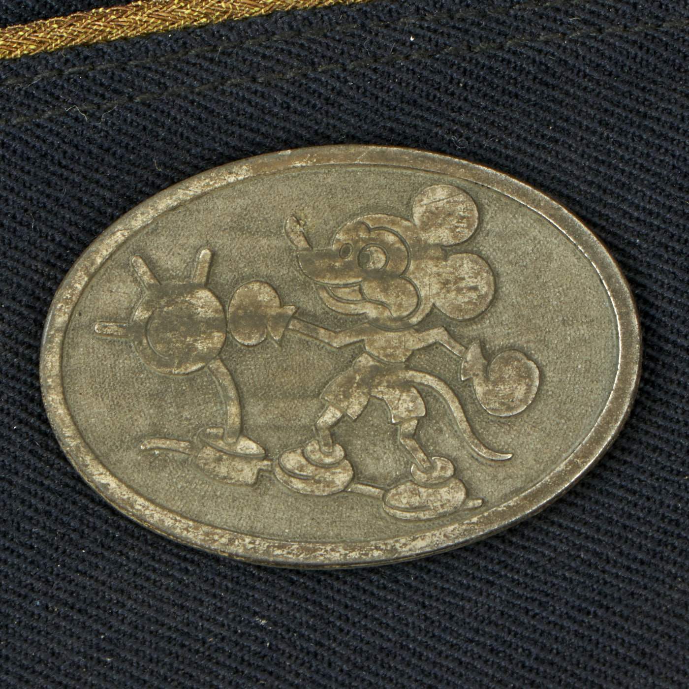 Attached to the left side of the cap is a wonderful 32. Minensuchflottille (32nd Minesweeper Flotilla) badge, which features an image of Mickey Mouse wearing boxing gloves, and punching a mine like a punching bag. These badges are extremely rare, and this is the first time we have seen this particular badge. For more information on the 32nd Minesweeper Flotilla, please see this website (in German): Flotilla 31-46.