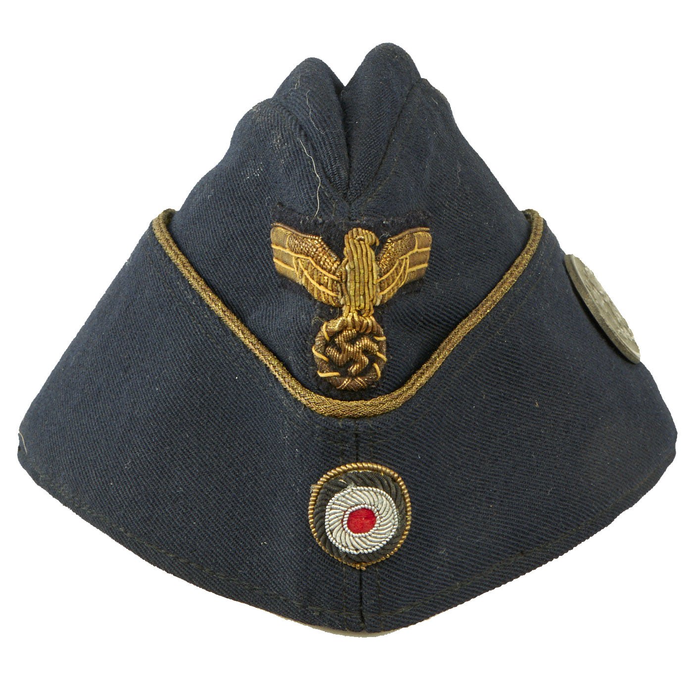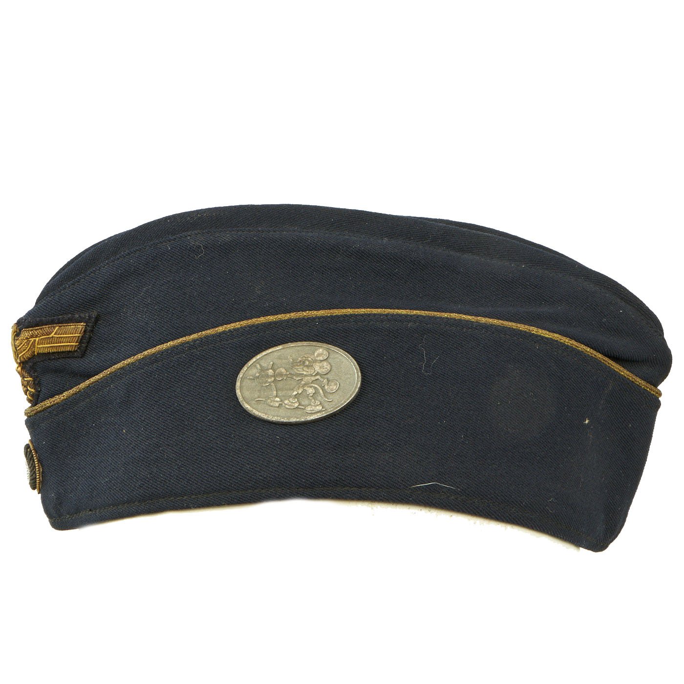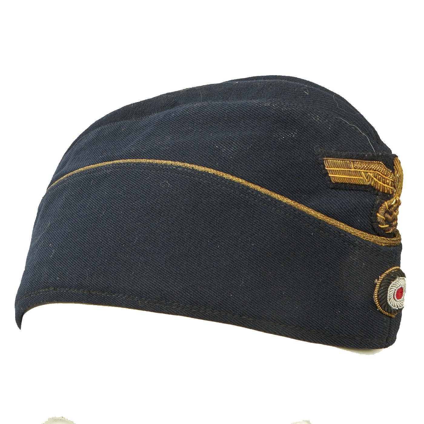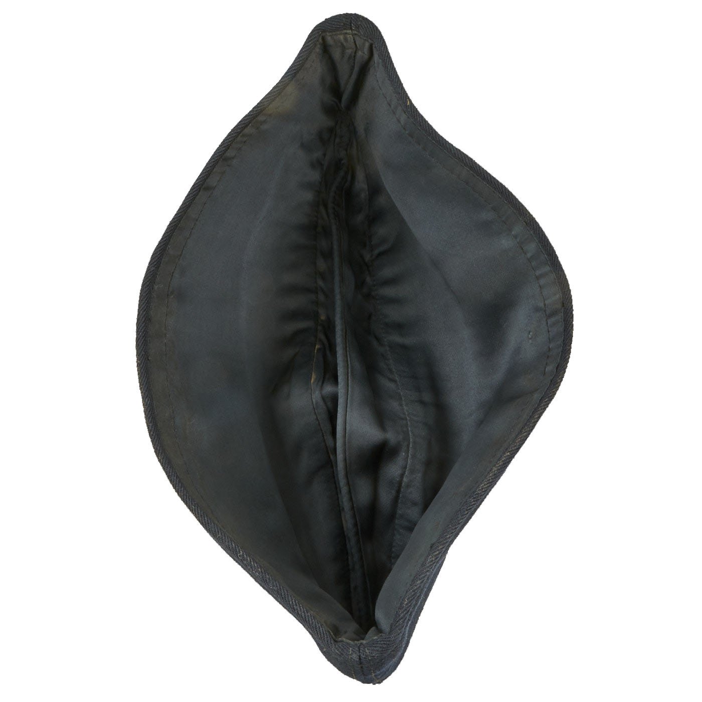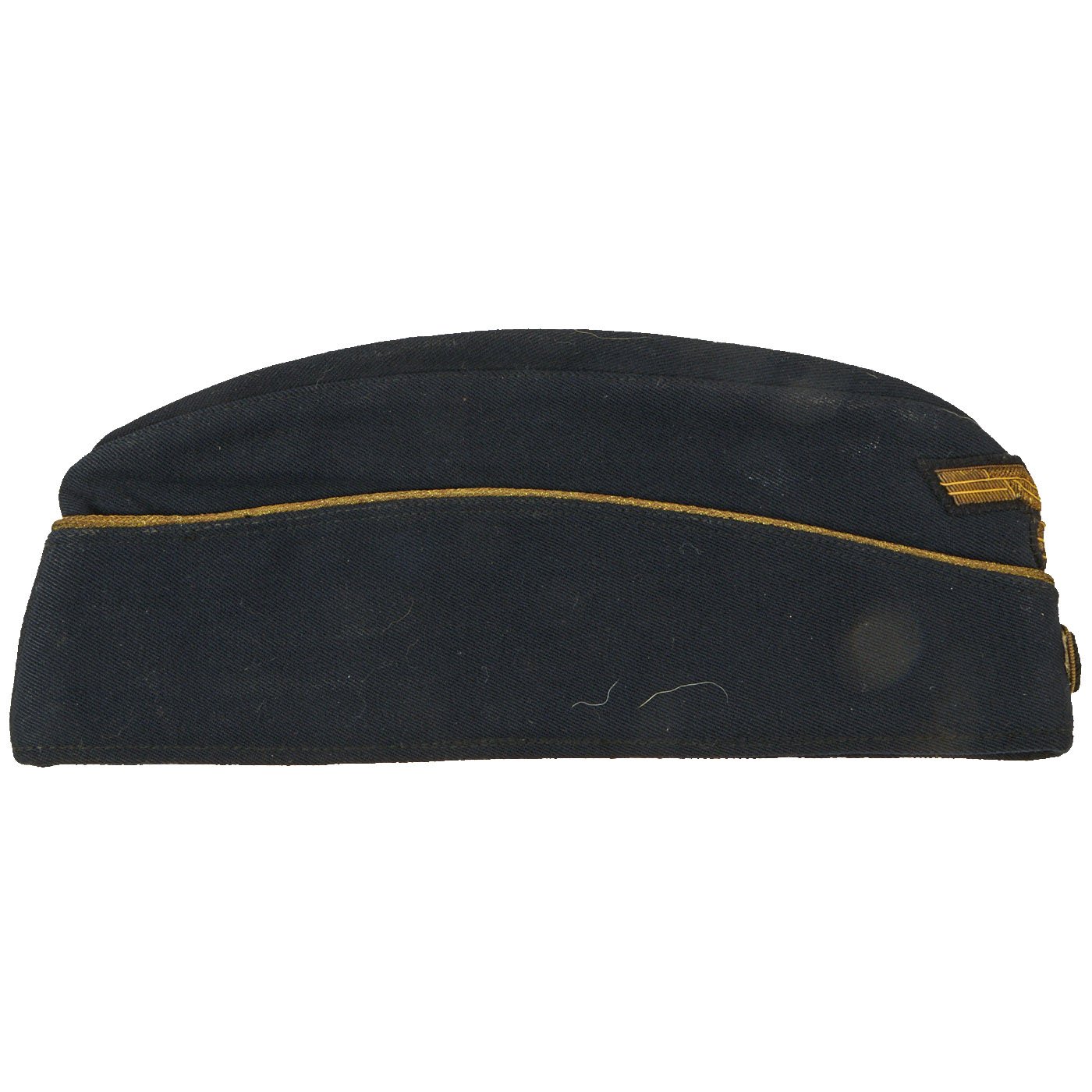 Original Item: Only One Available. This is a very nice example of a German WWII Kriegsmarine Navy M38 Overseas cap (Schiffchen), as worn by Officers. The overseas cap, nicknamed in German military slang as Schiffchen, or literally "little ship" as it resembled an up-turned row-boat, was standard issue for the Junior Grade Navy officers for most occasions.