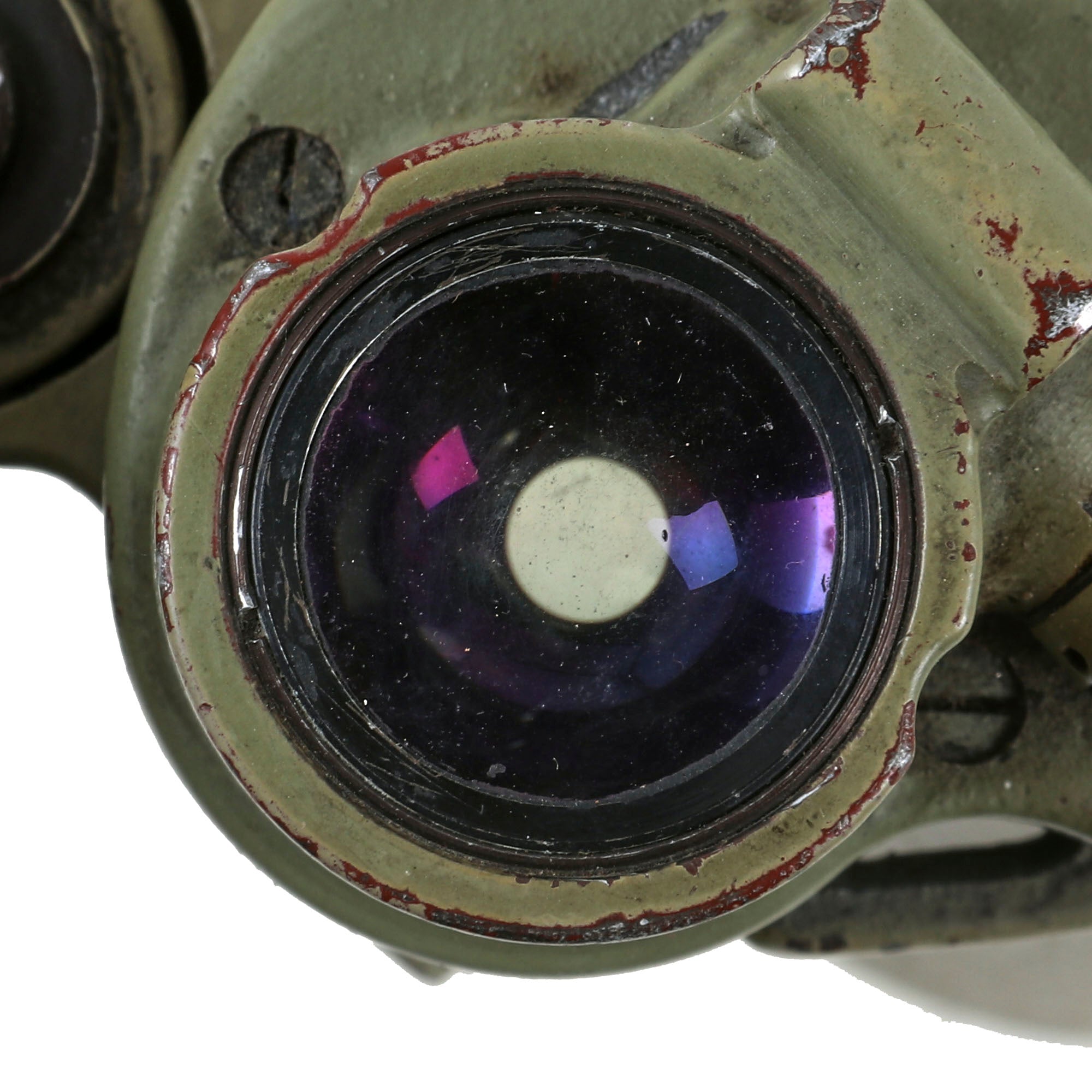 The binoculars do show signs of use and wear, especially present on the paint, but the optics are still clear and the binos present as being completely functional. The leather neckstrap is gone.