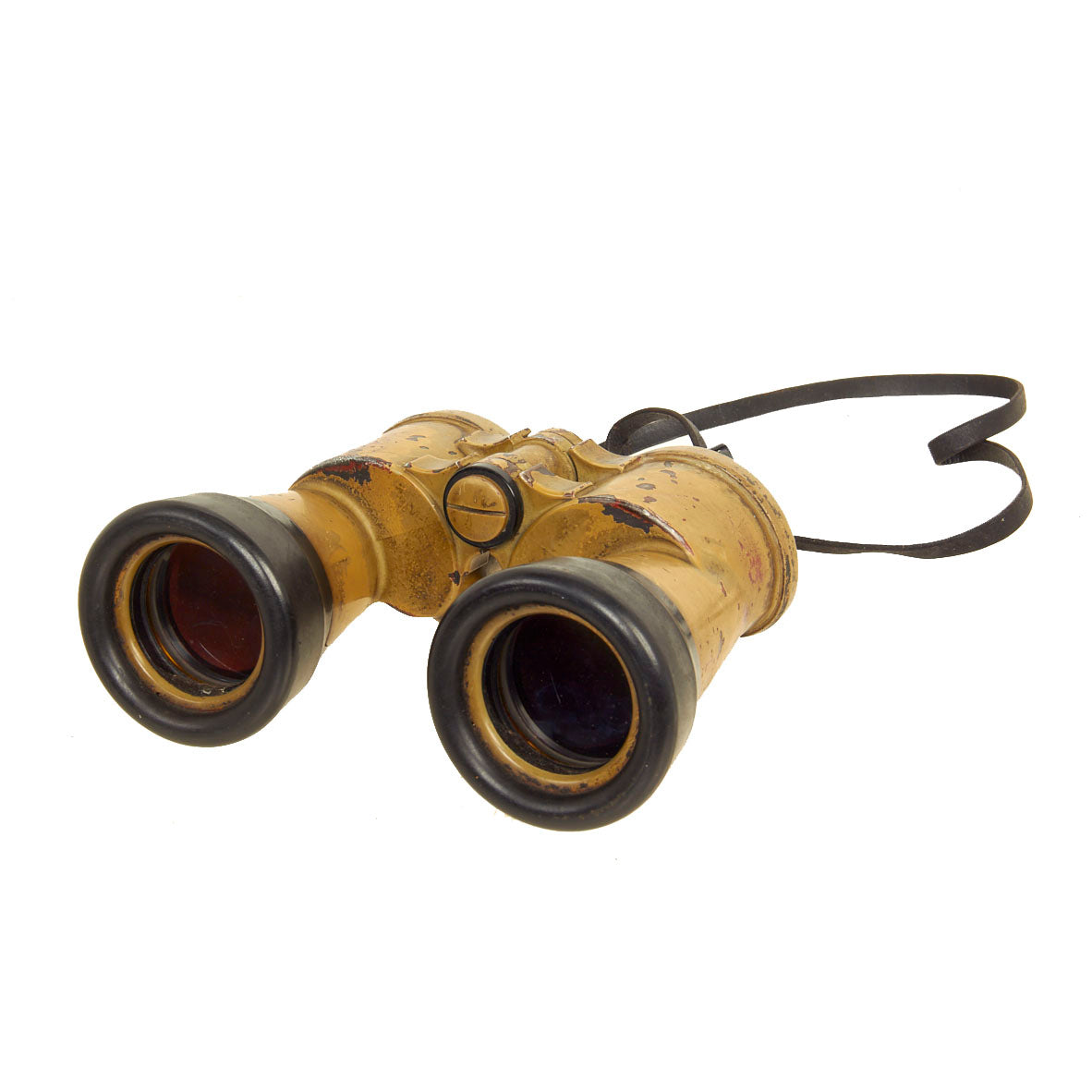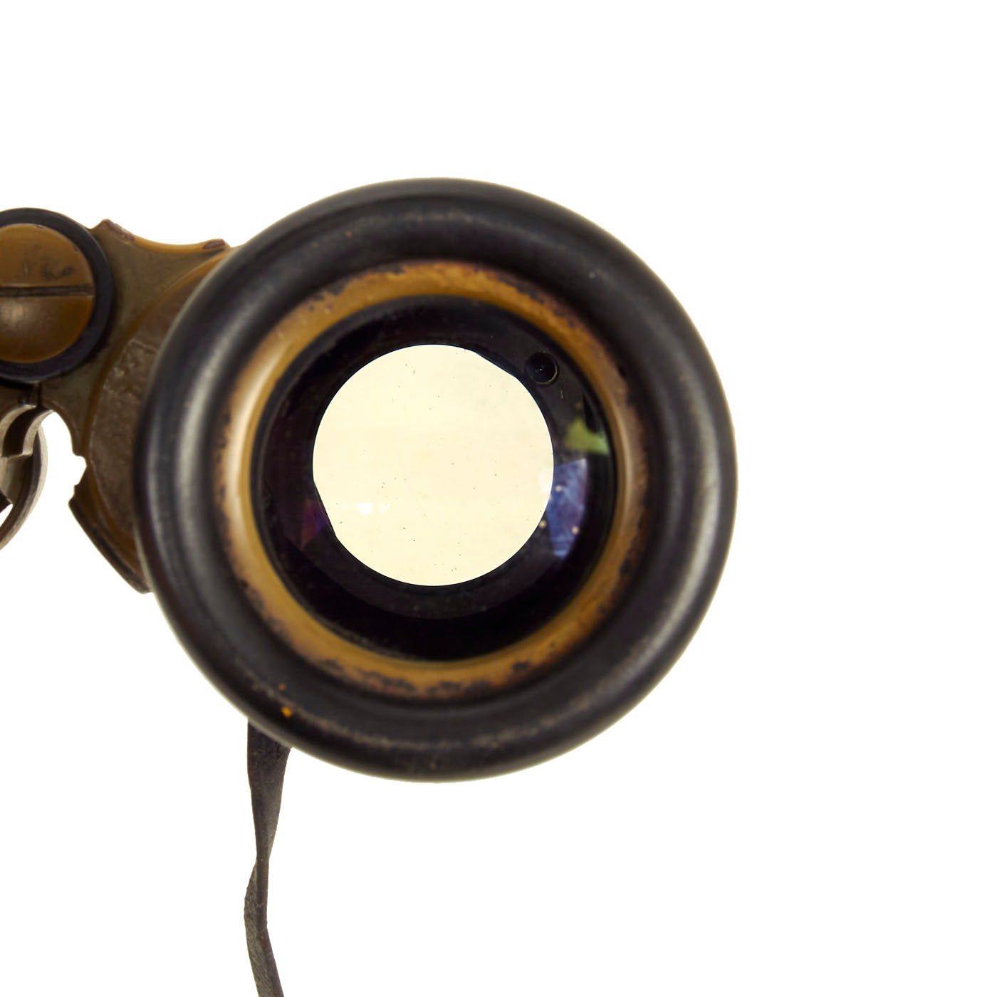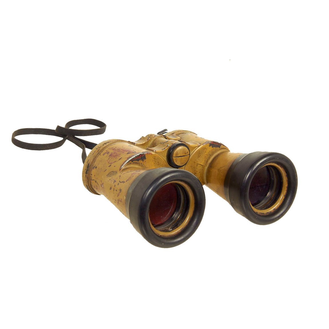 Original Item: Only One Available. This is a very good pair of extremely rare German WWII Kriegsmarine U-boat 7x50 binoculars, made by Carl Zeiss of Jena, a specialist lens maker, and one of the finest makers of the time. They are equipped with rubber fittings around the objective lenses though it does appear that these may have had more rubber pieces but were removed. Rubber fitted optics made them virtually impervious to moisture, possibly even if immersed in water for a short time, definitely a plus on a U-boat! As they normally have the rubber fittings, the eyepieces do not have bakelite cups, as they are part of the rubber molding, though they are not present in this example.